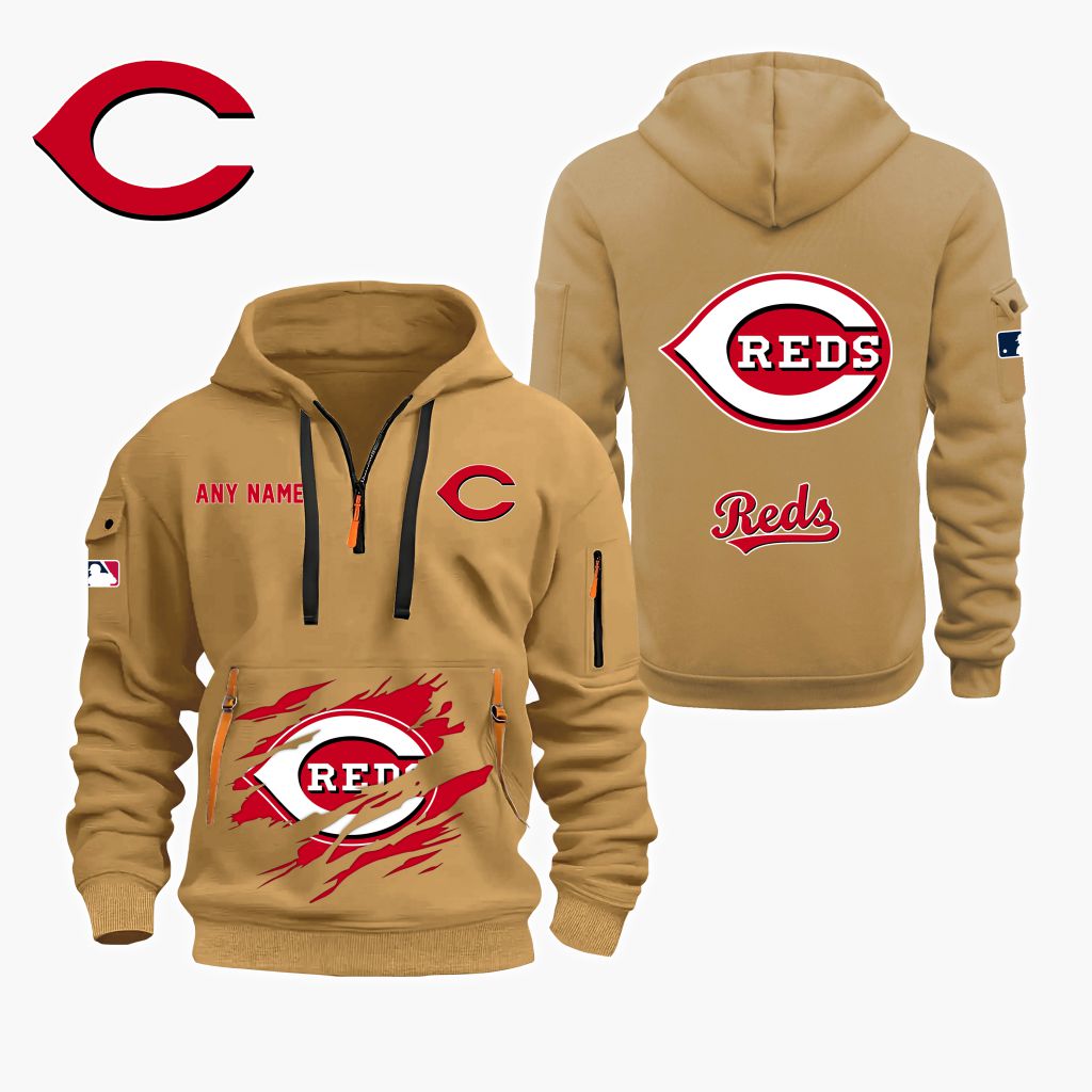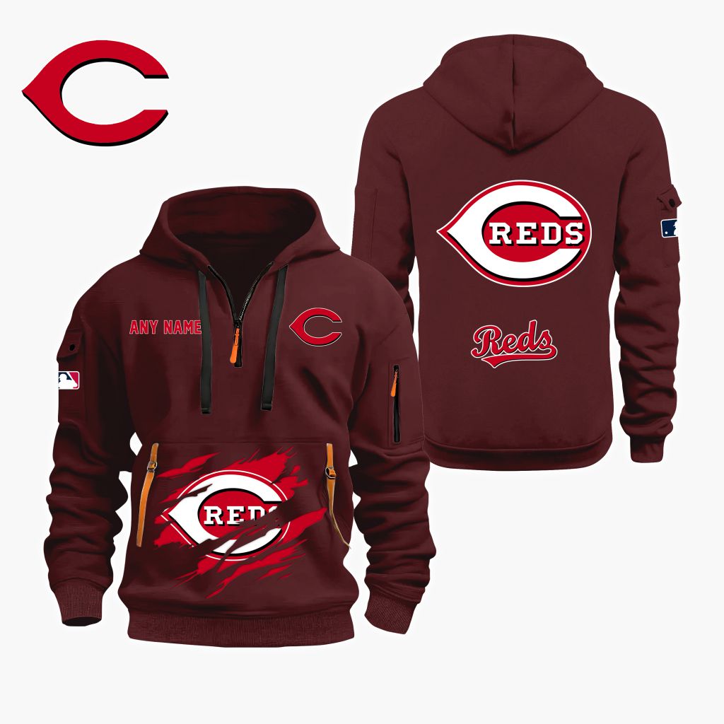 MLB Cincinnati Reds Personalized Name Quarter Zip Hoodie ST2501