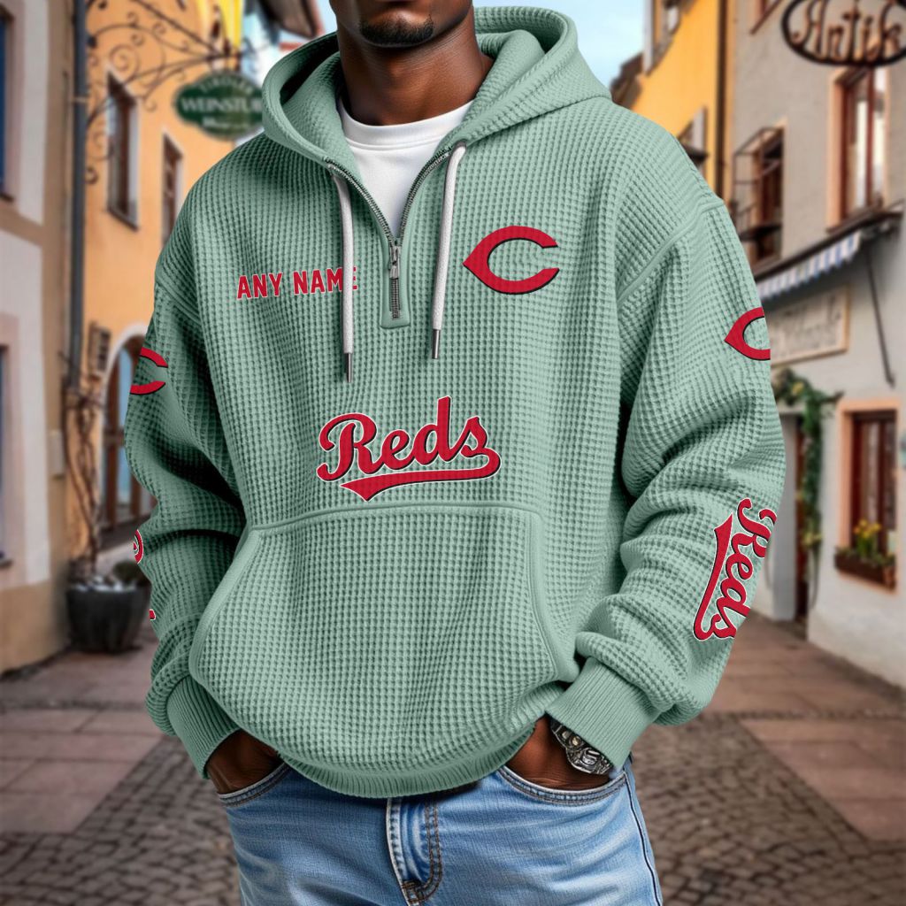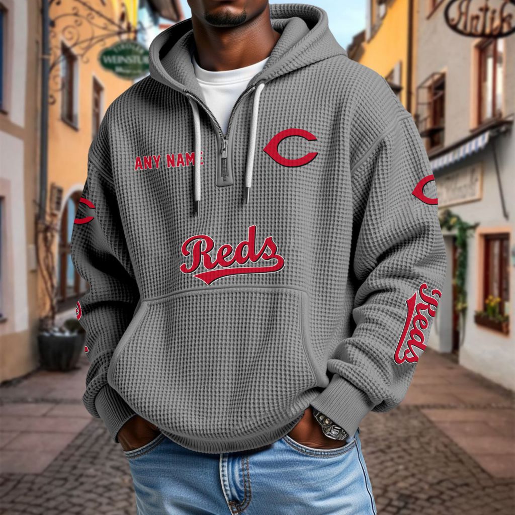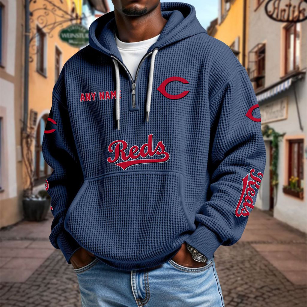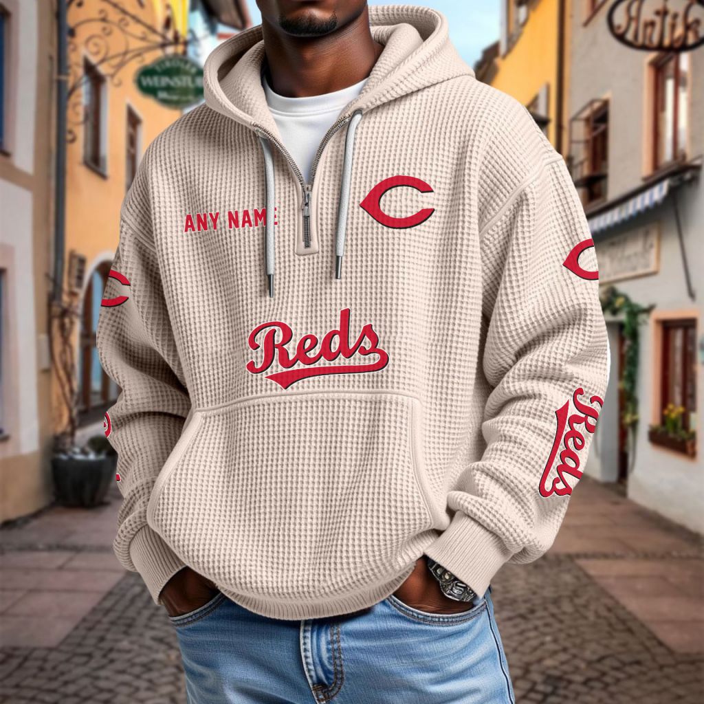 MLB Cincinnati Reds Personalized Name Waffle Quarter Zip Hoodie Design ST2501