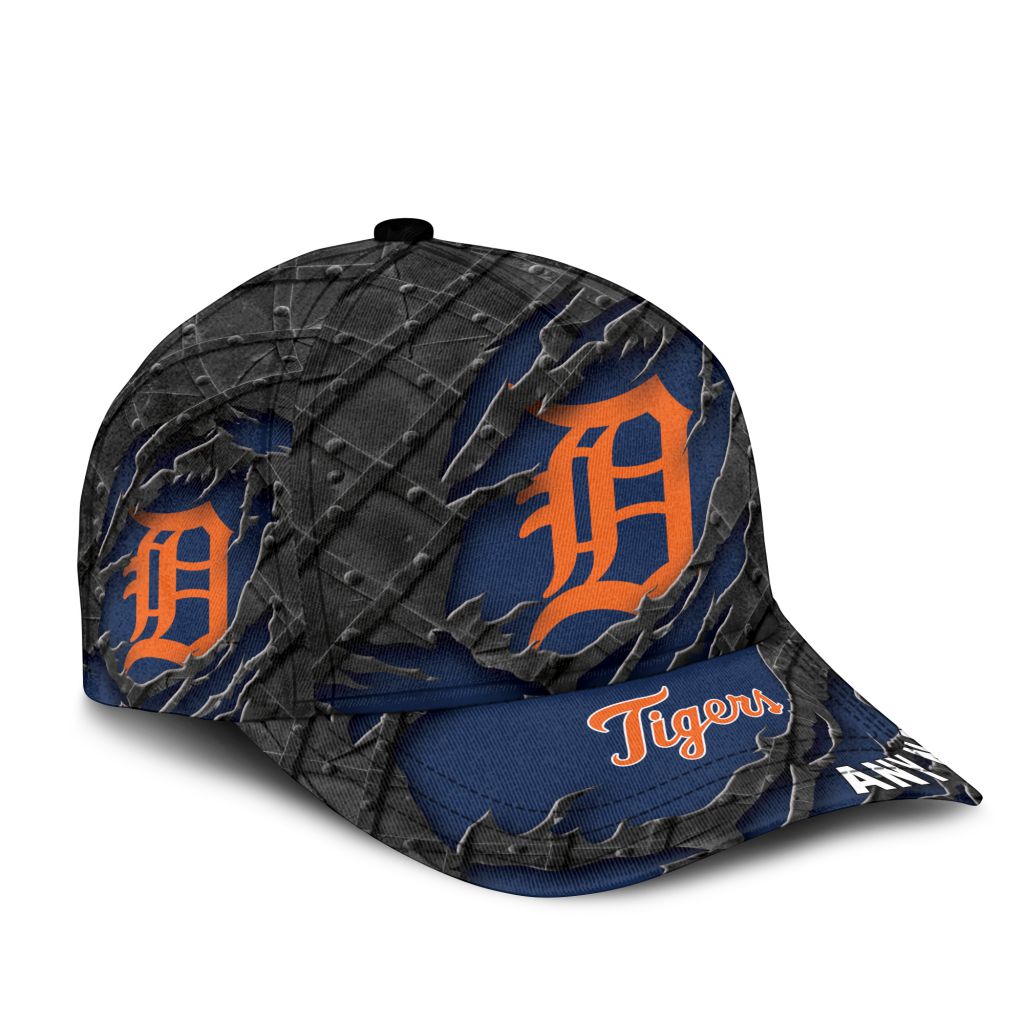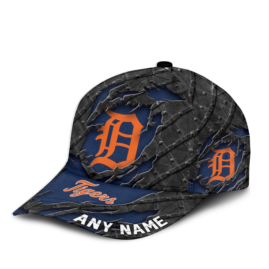 MLB Detroit Tigers Personalized Name Black Metal Design Classic Cap ST2501