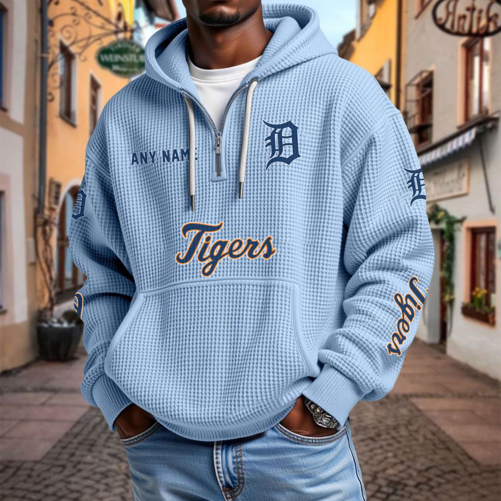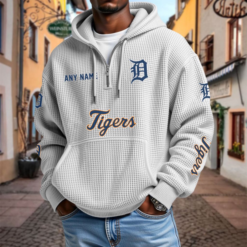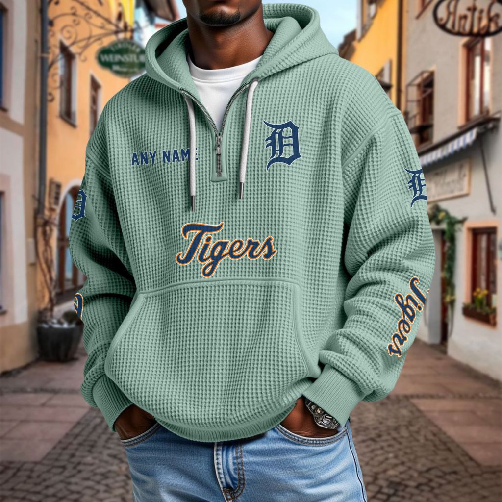 MLB Detroit Tigers Personalized Name Waffle Quarter Zip Hoodie Design ST2501