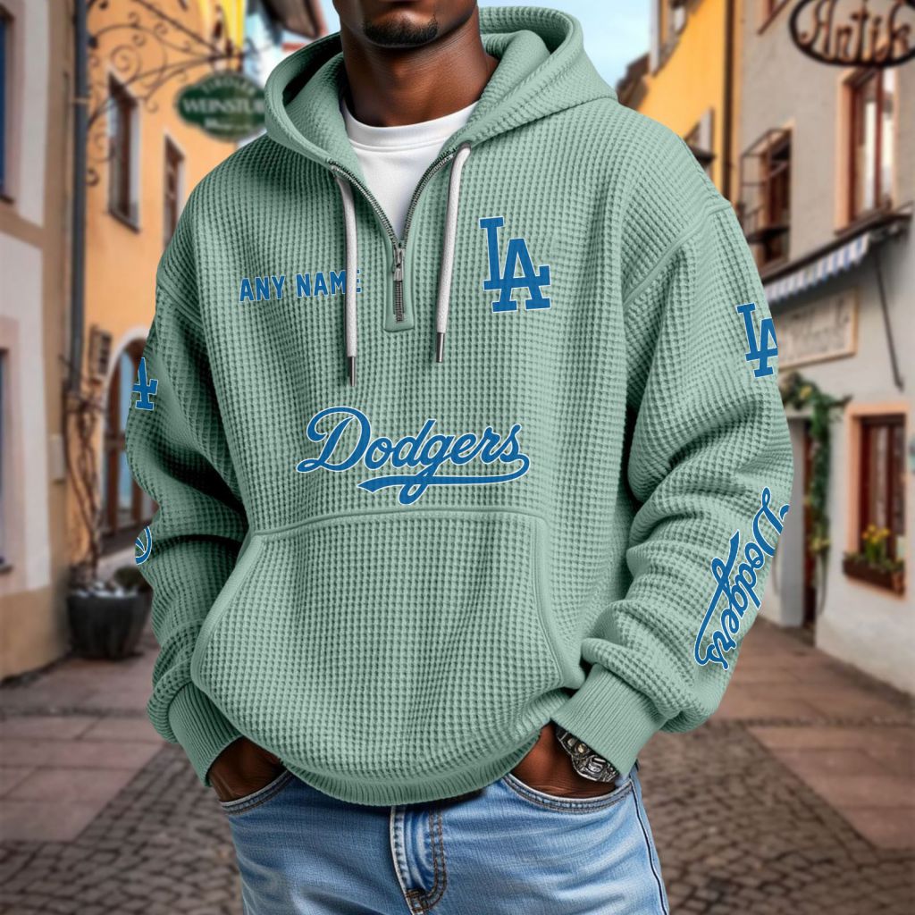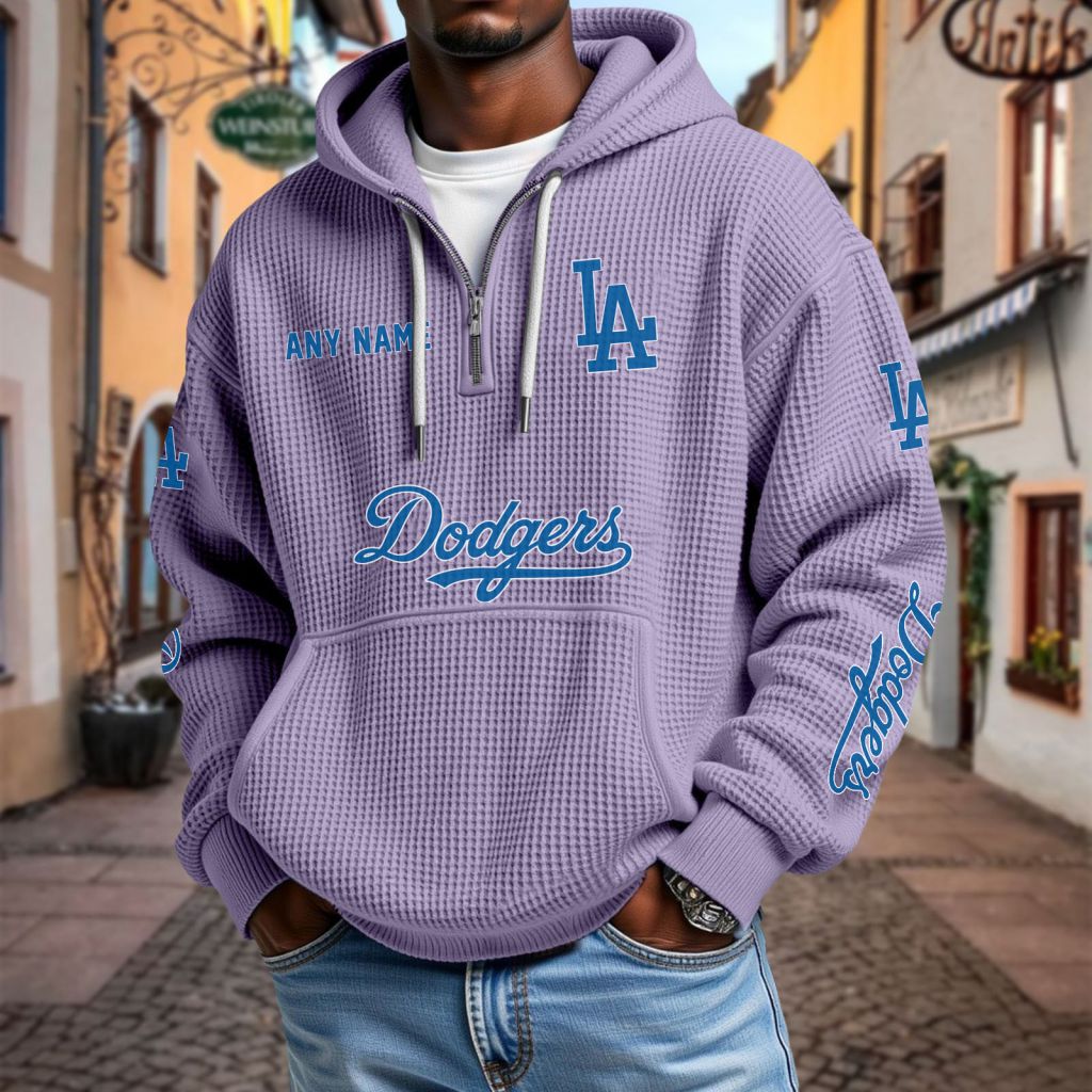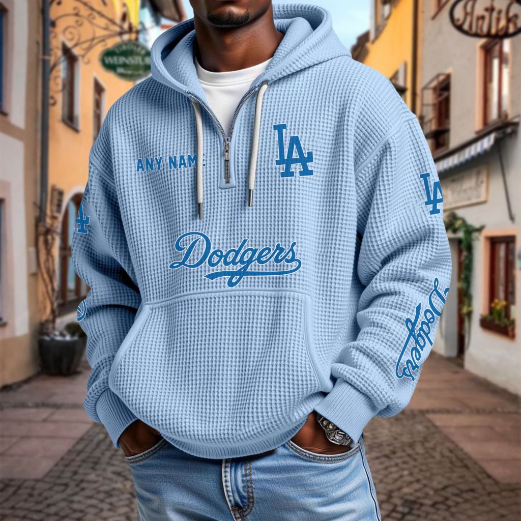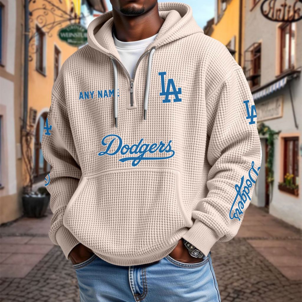 MLB Los Angeles Dodgers Personalized Name Waffle Quarter Zip Hoodie Design ST2501