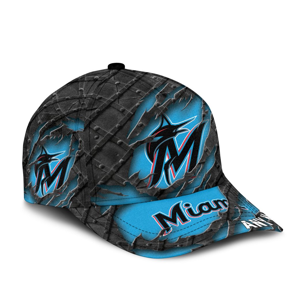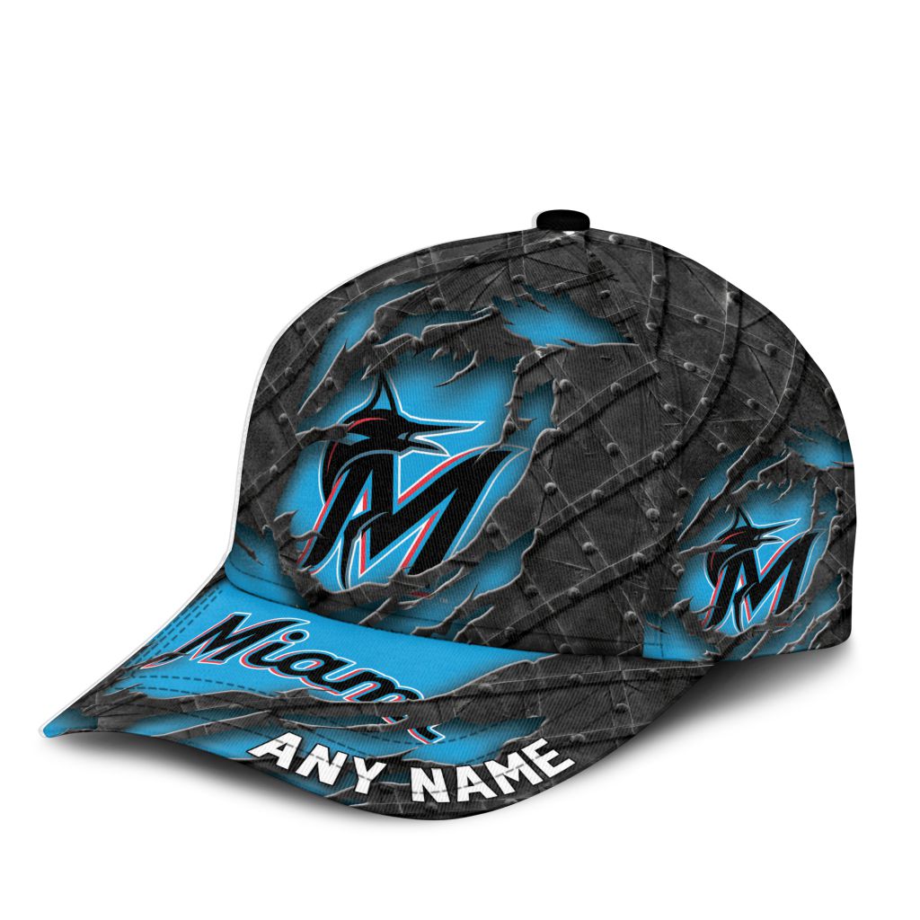 MLB Miami Marlins Personalized Name Black Metal Design Classic Cap ST2501