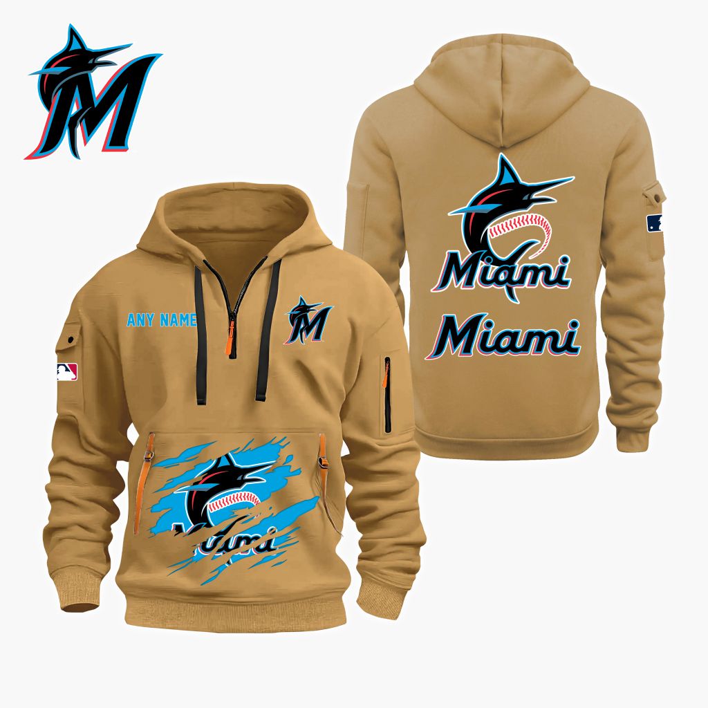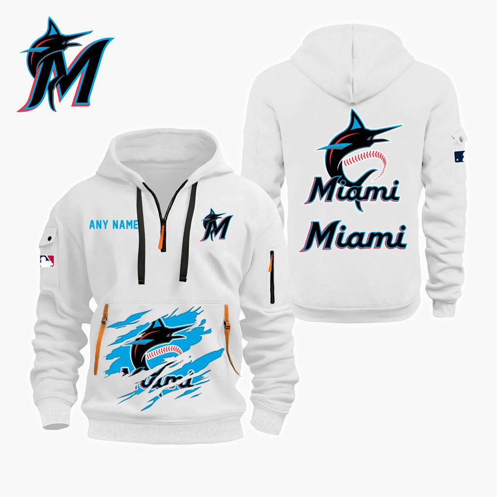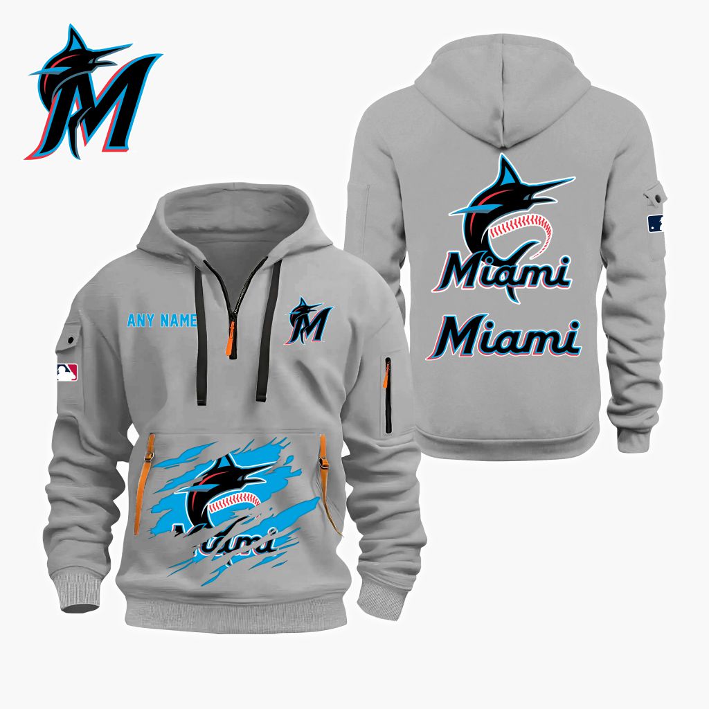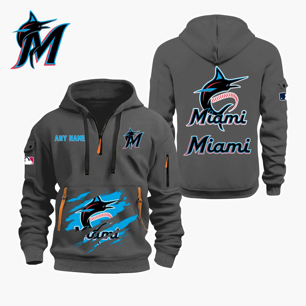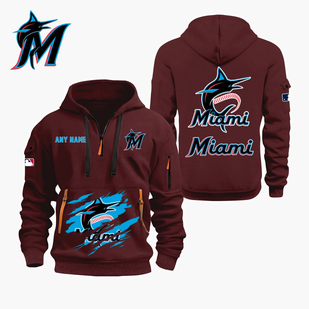 MLB Miami Marlins Personalized Name Quarter Zip Hoodie ST2501