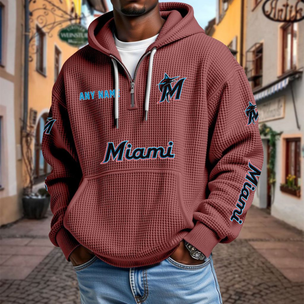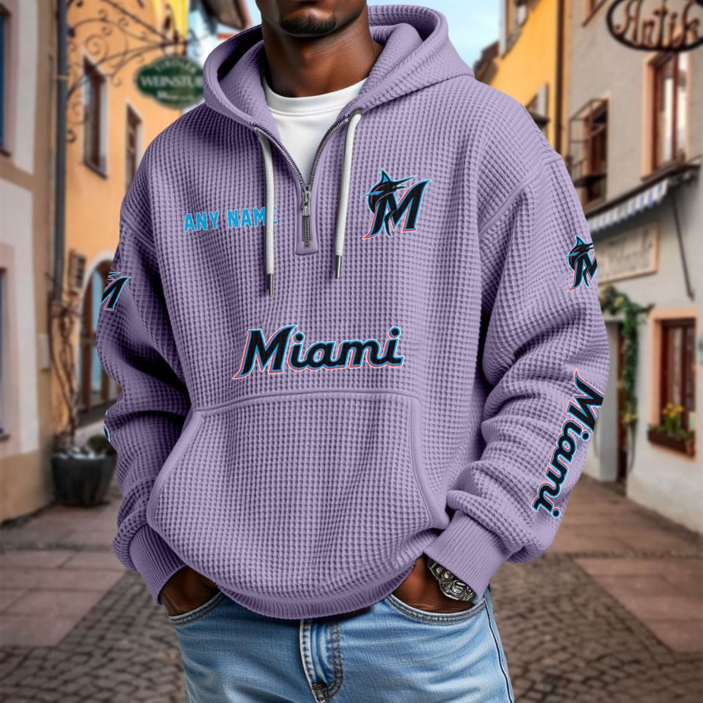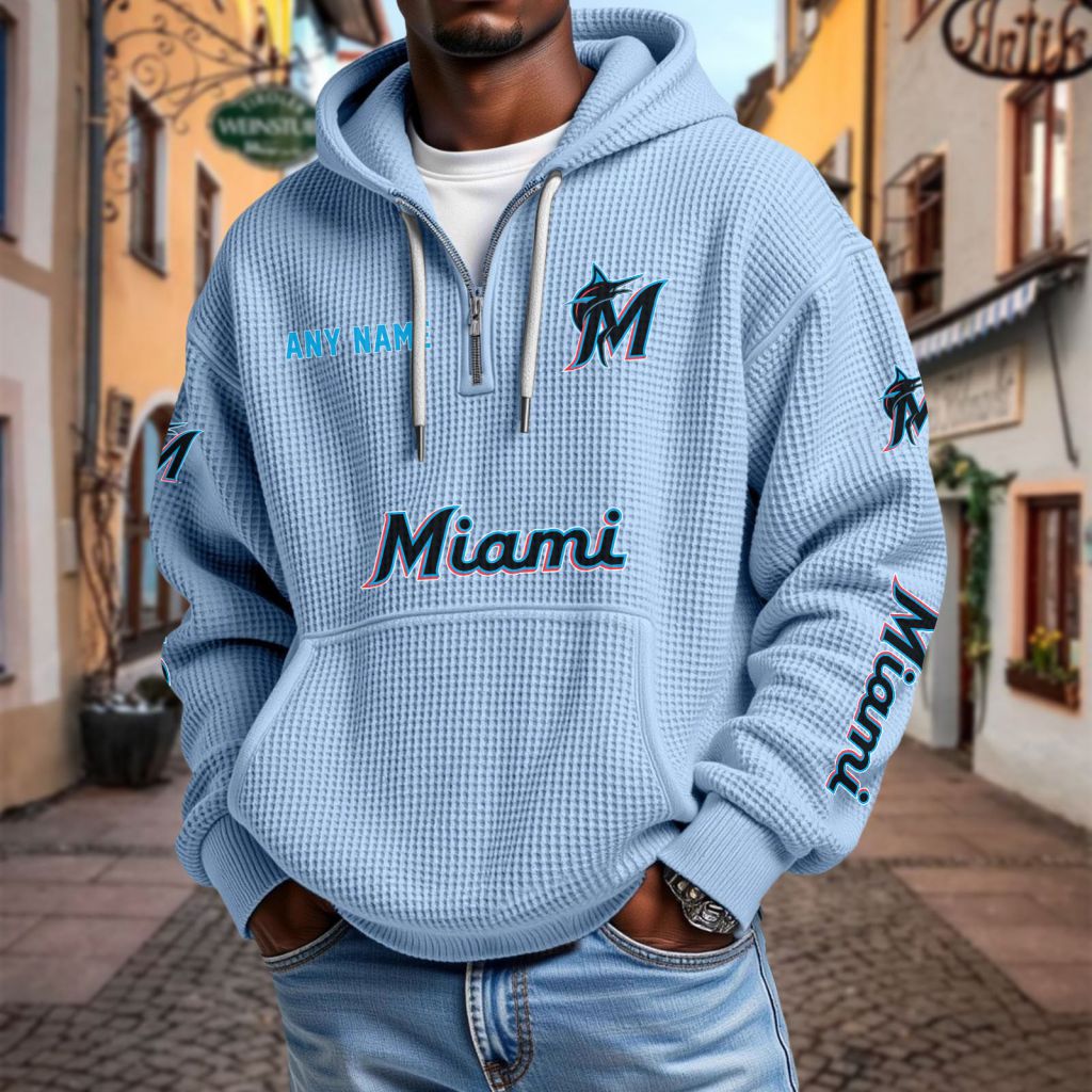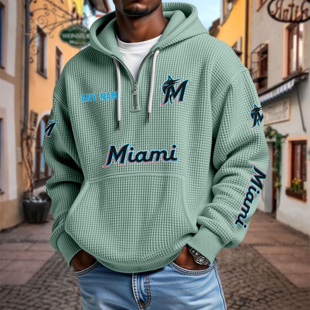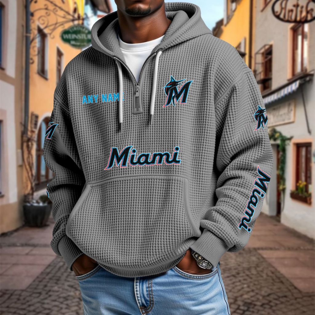 MLB Miami Marlins Personalized Name Waffle Quarter Zip Hoodie Design ST2501