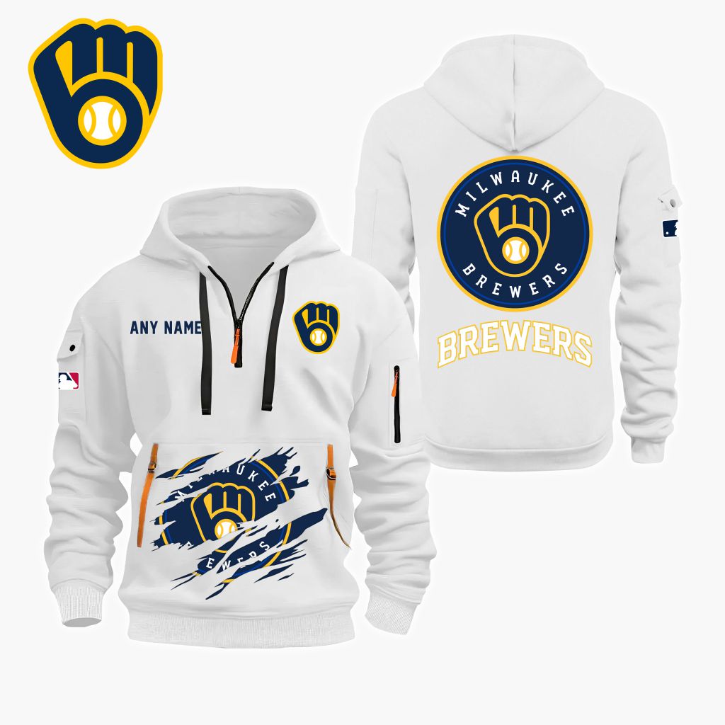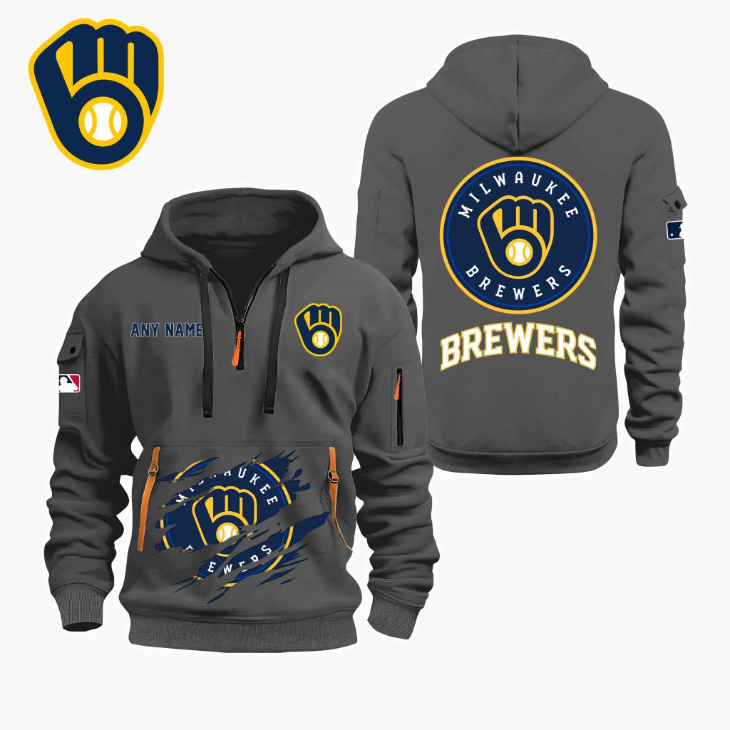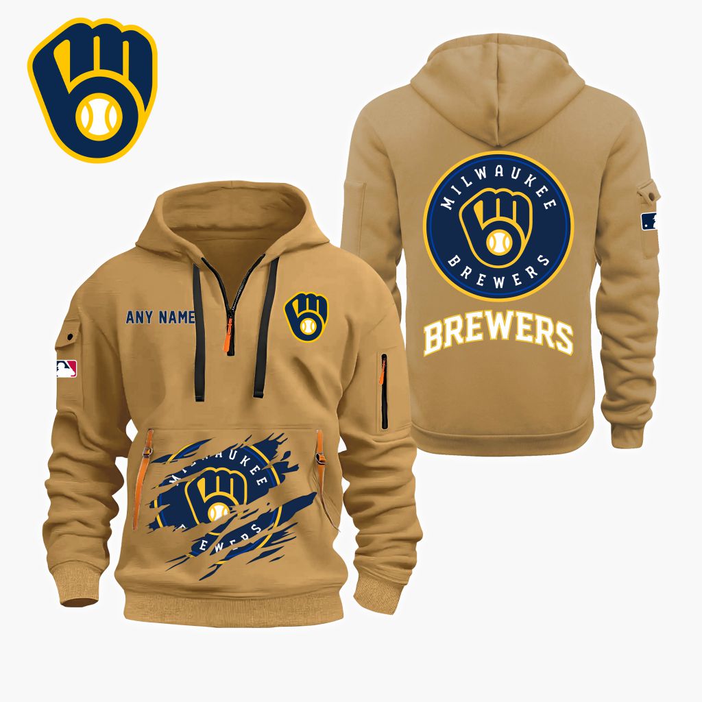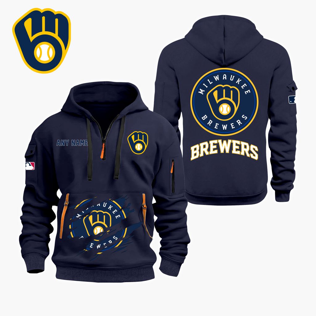 MLB Milwaukee Brewers Personalized Name Quarter Zip Hoodie ST2501