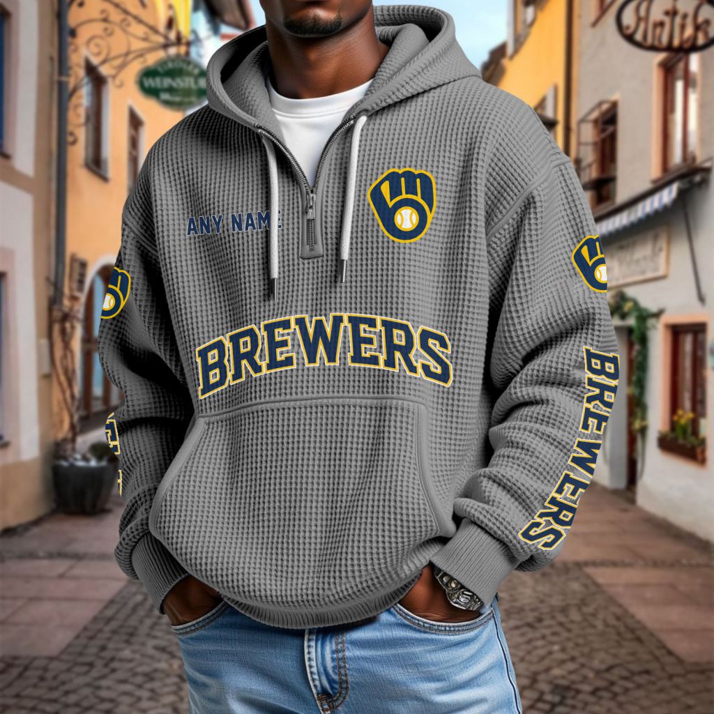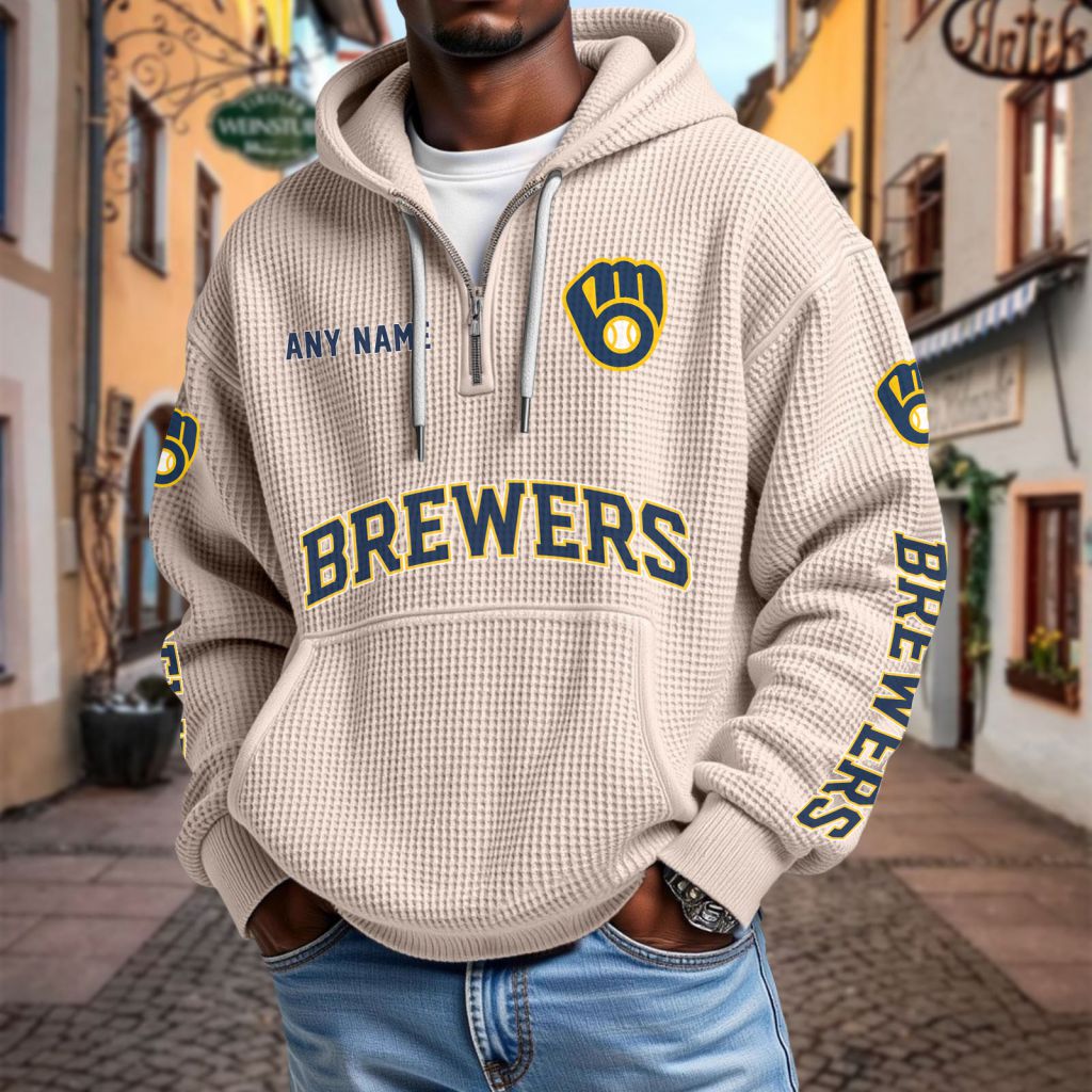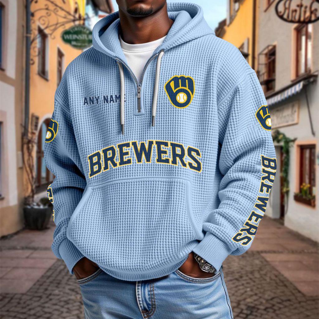 MLB Milwaukee Brewers Personalized Name Waffle Quarter Zip Hoodie Design ST2501