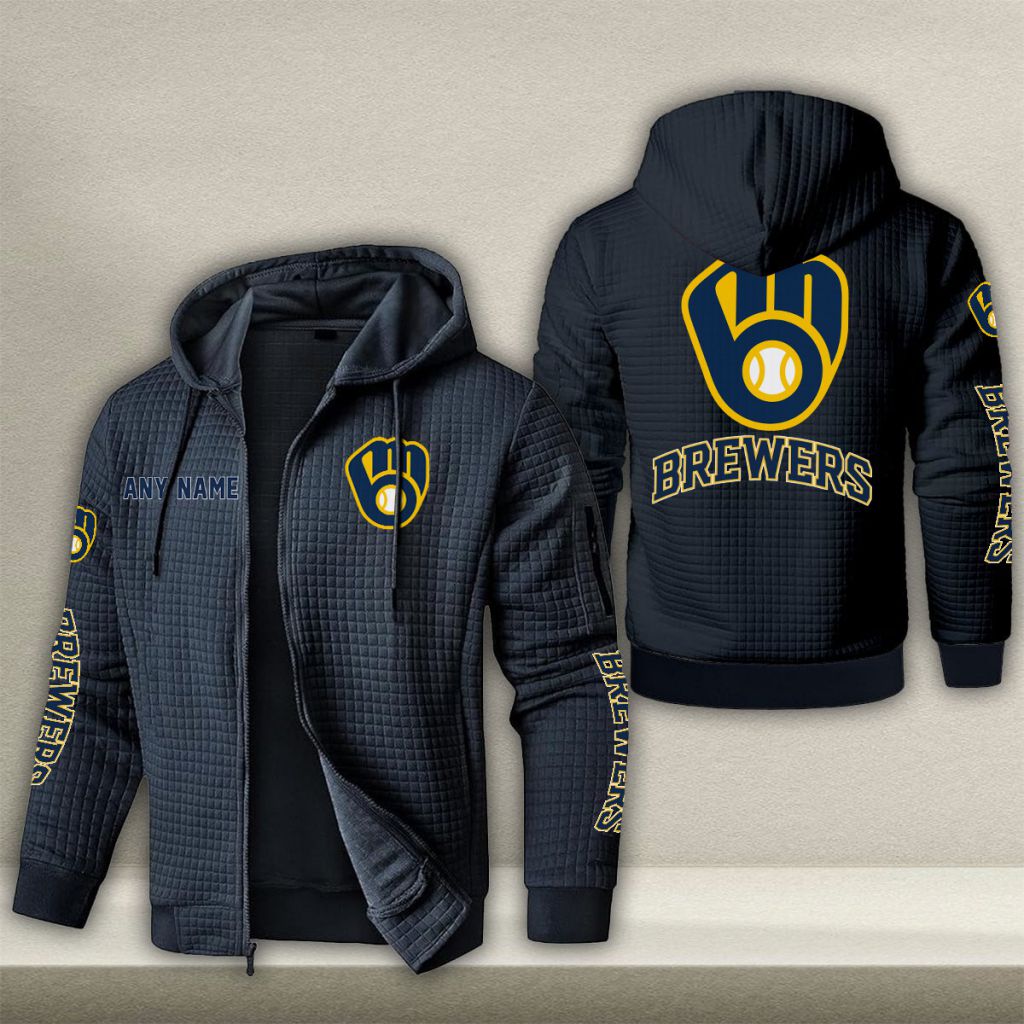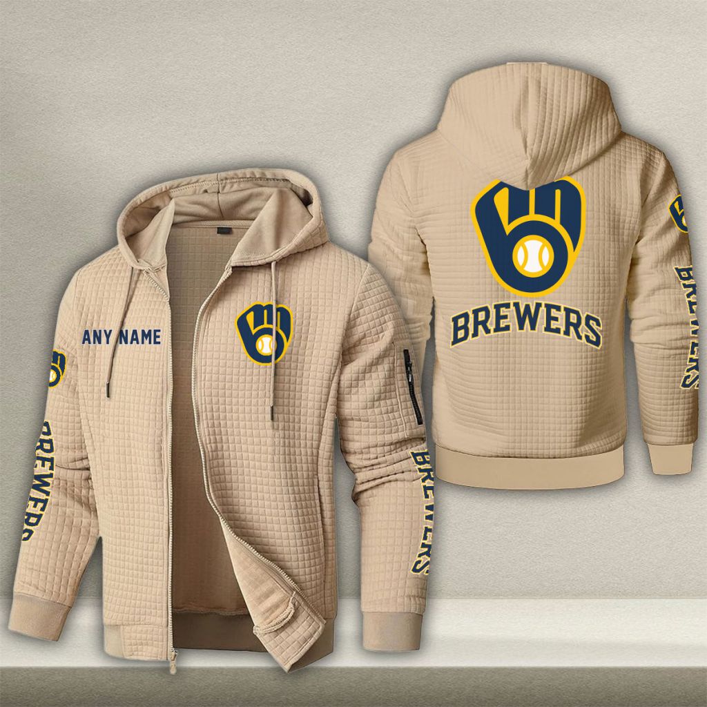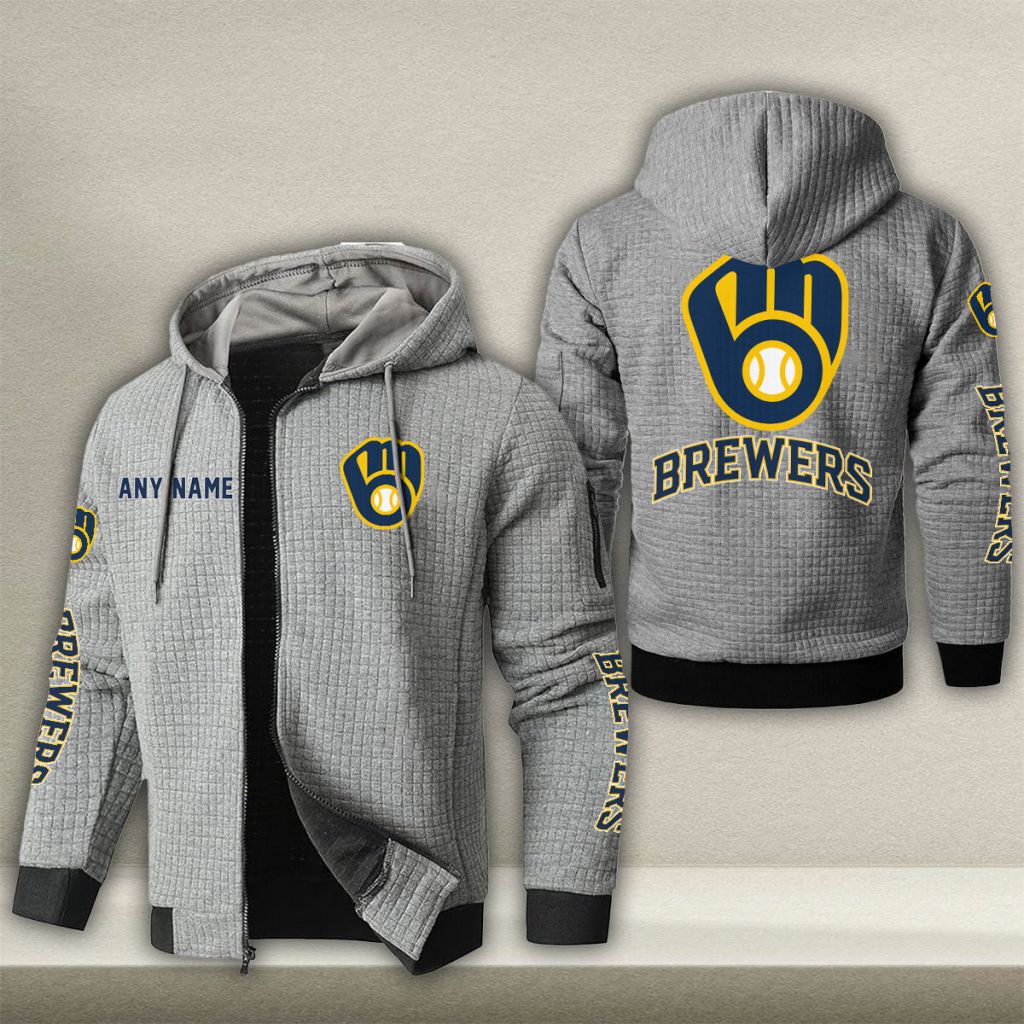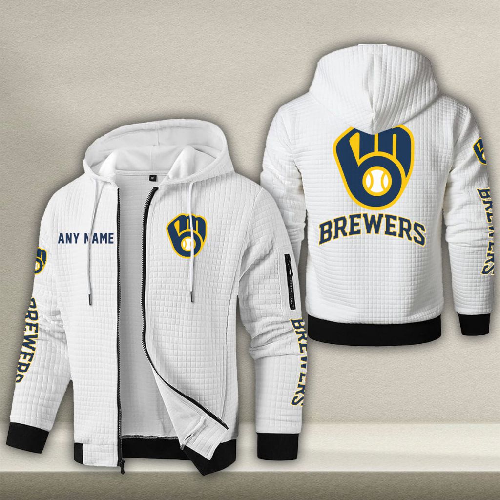 MLB Milwaukee Brewers Personalized Name Waffle Zip Hoodie Design ST2502