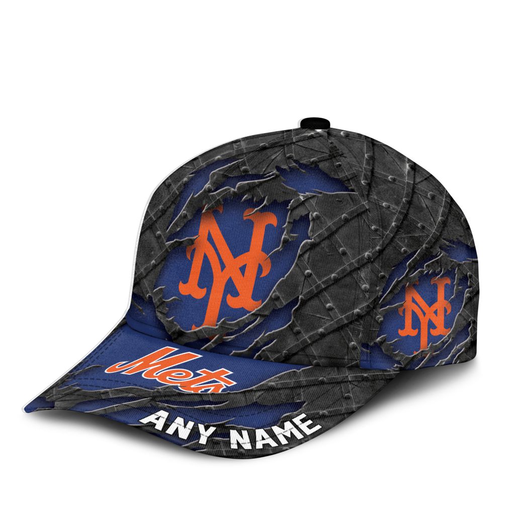 MLB New York Mets Personalized Name Black Metal Design Classic Cap ST2501