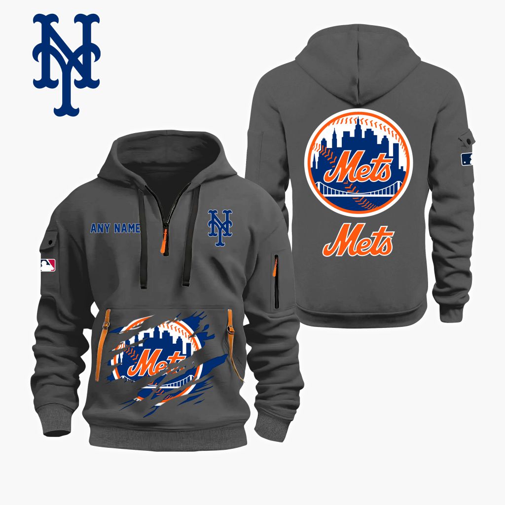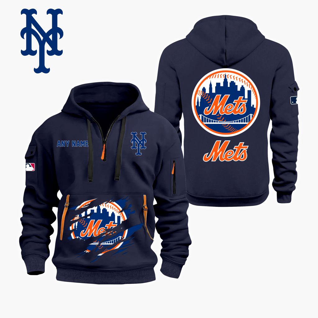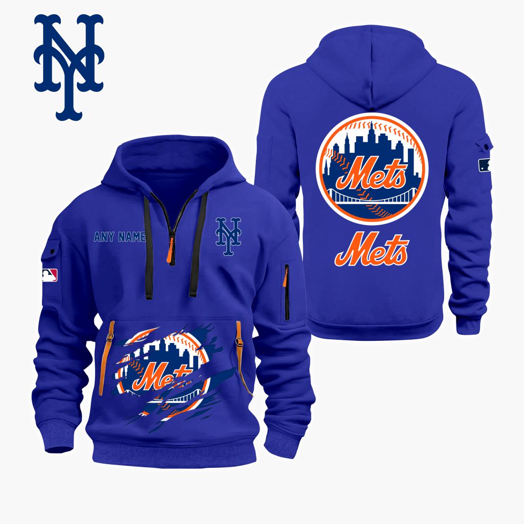 MLB New York Mets Personalized Name Quarter Zip Hoodie ST2501