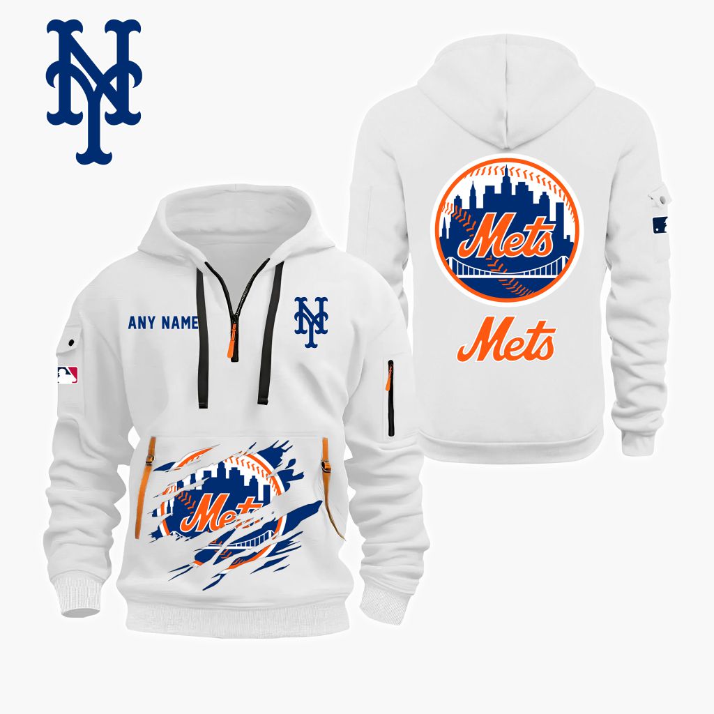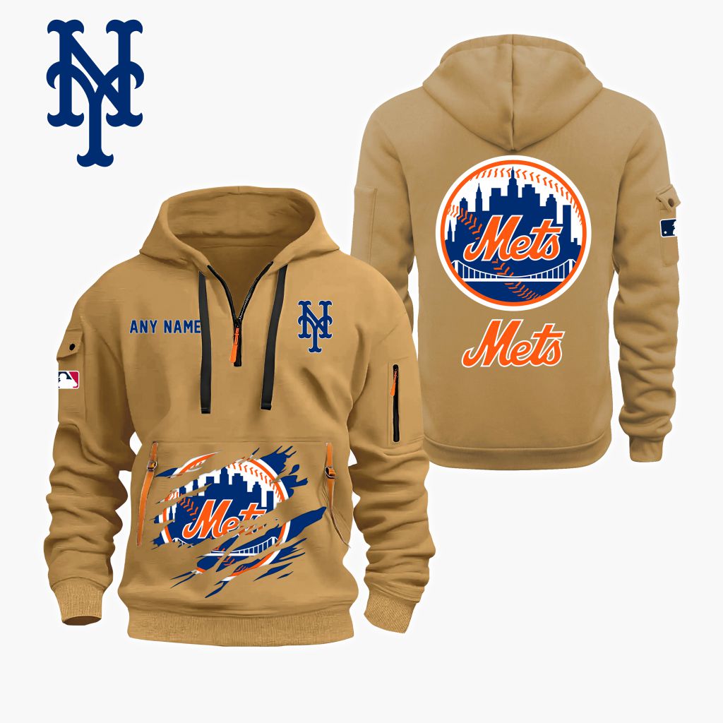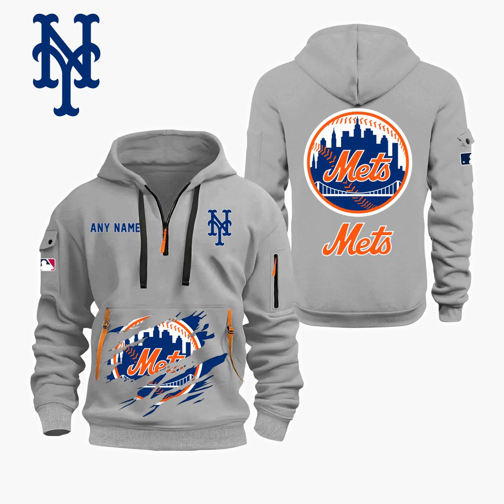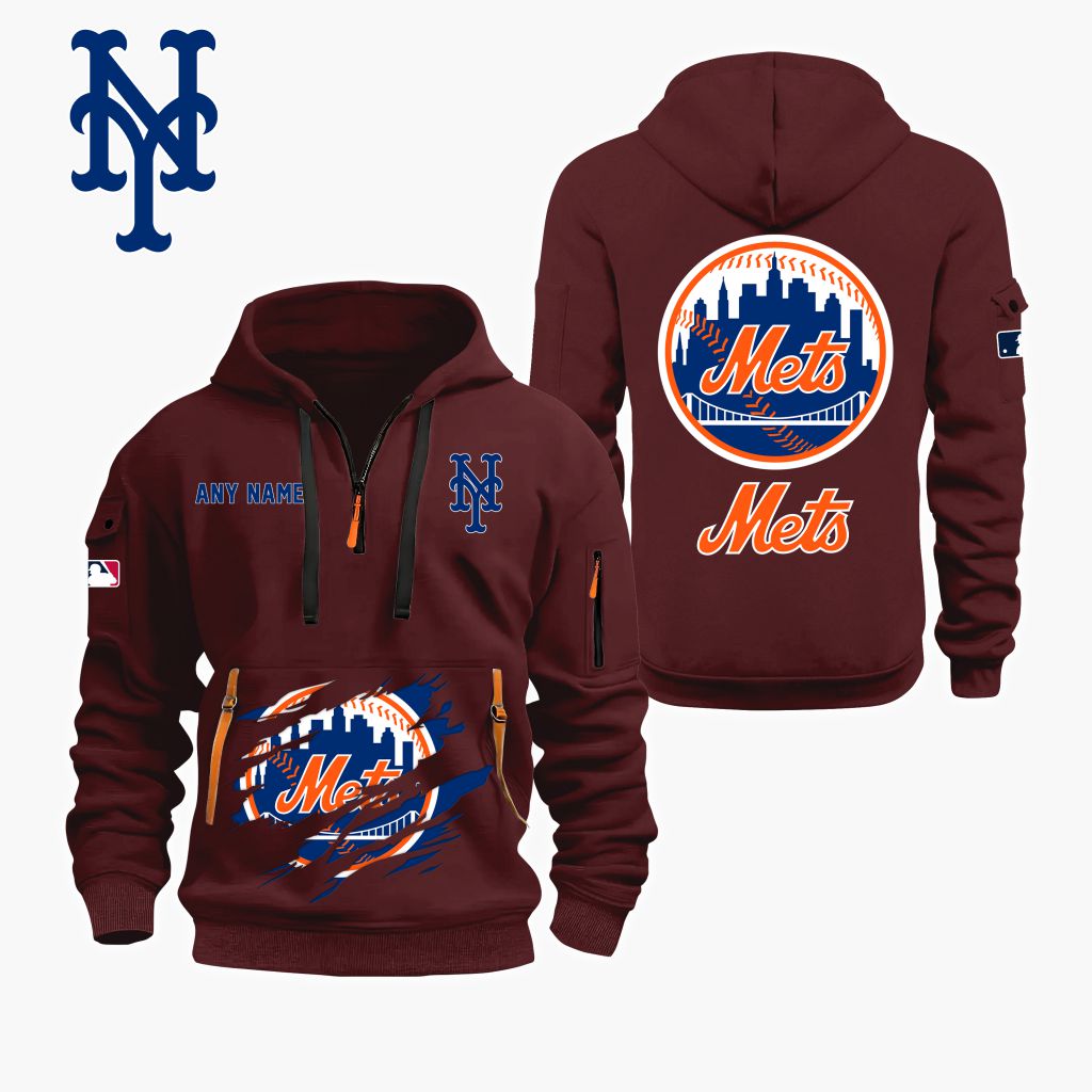 MLB New York Mets Personalized Name Quarter Zip Hoodie ST2501