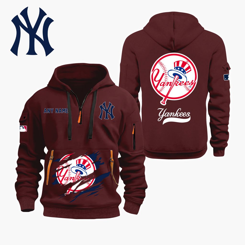 MLB New York Yankees Personalized Name Quarter Zip Hoodie ST2501