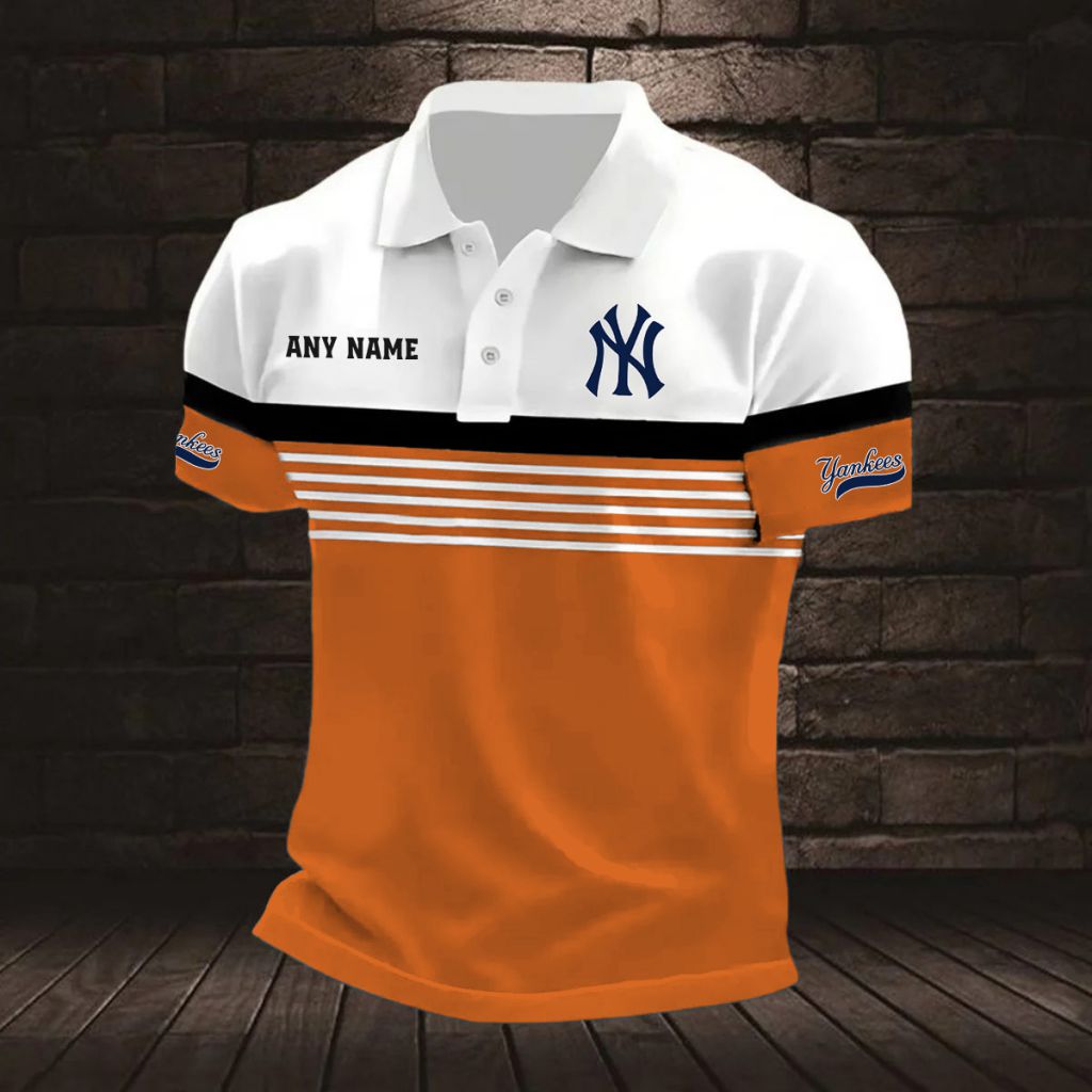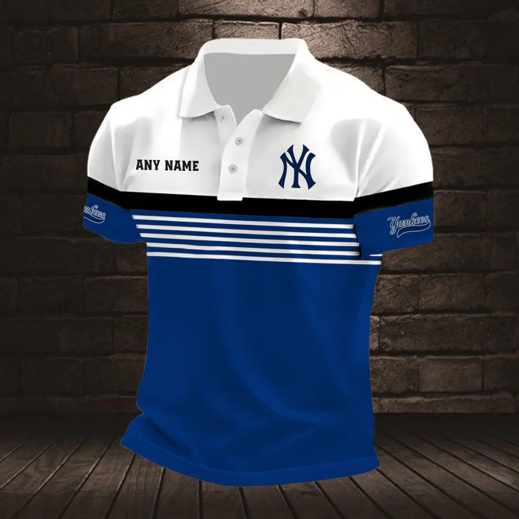 MLB New York Yankees Personalized Name Stripped Multi Color Polo Design ST2501