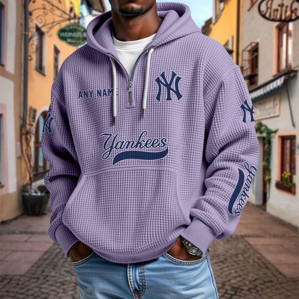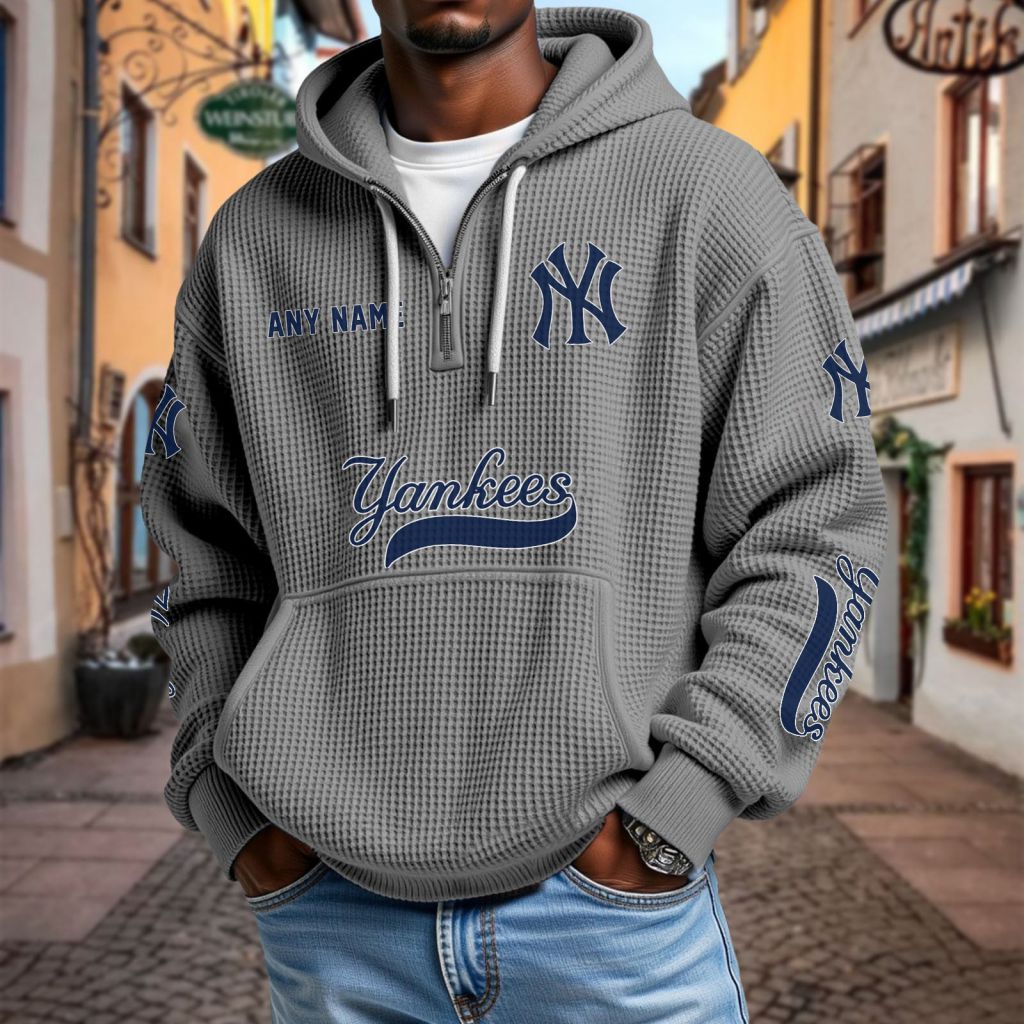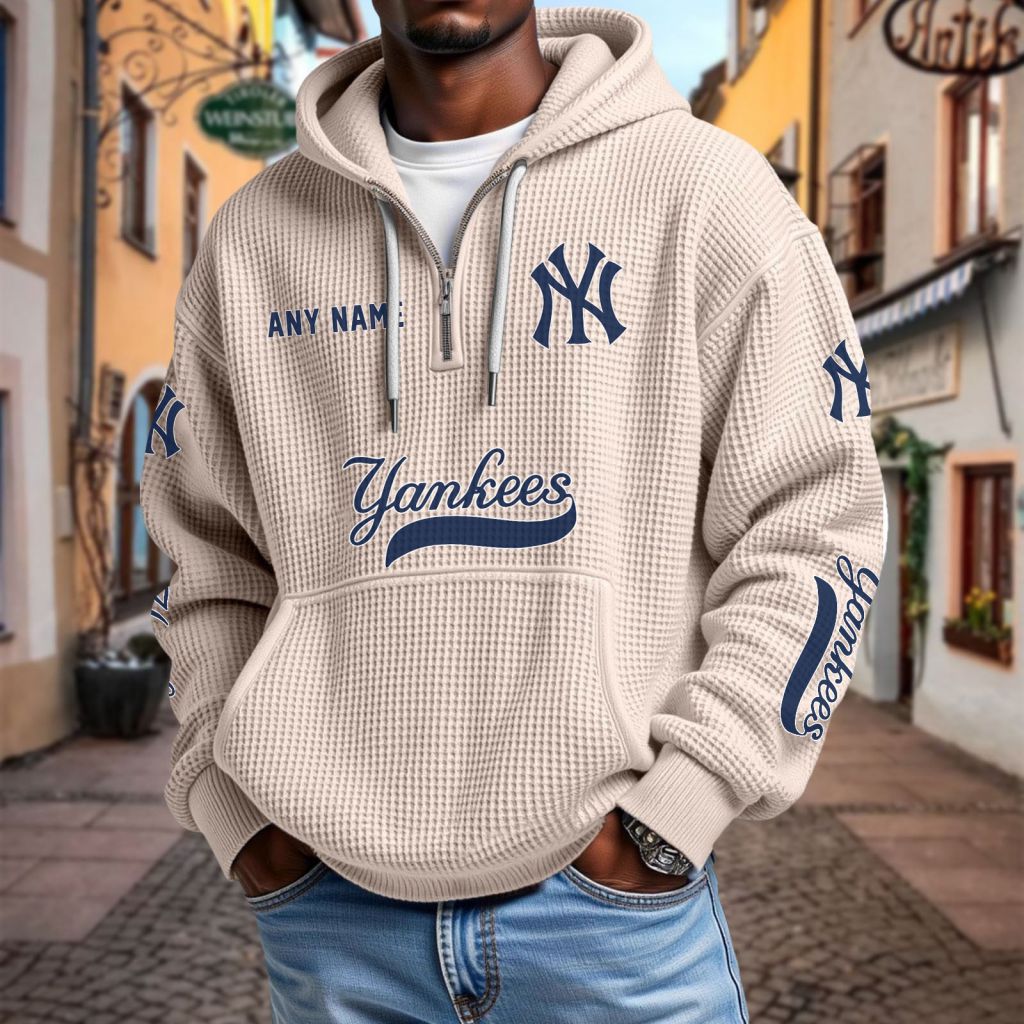 MLB New York Yankees Personalized Name Waffle Quarter Zip Hoodie Design ST2501