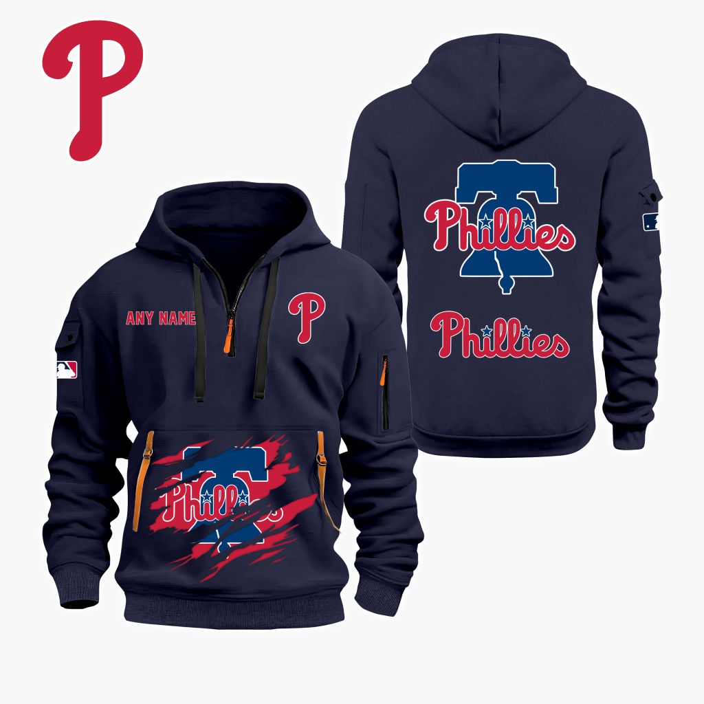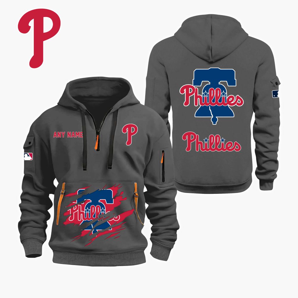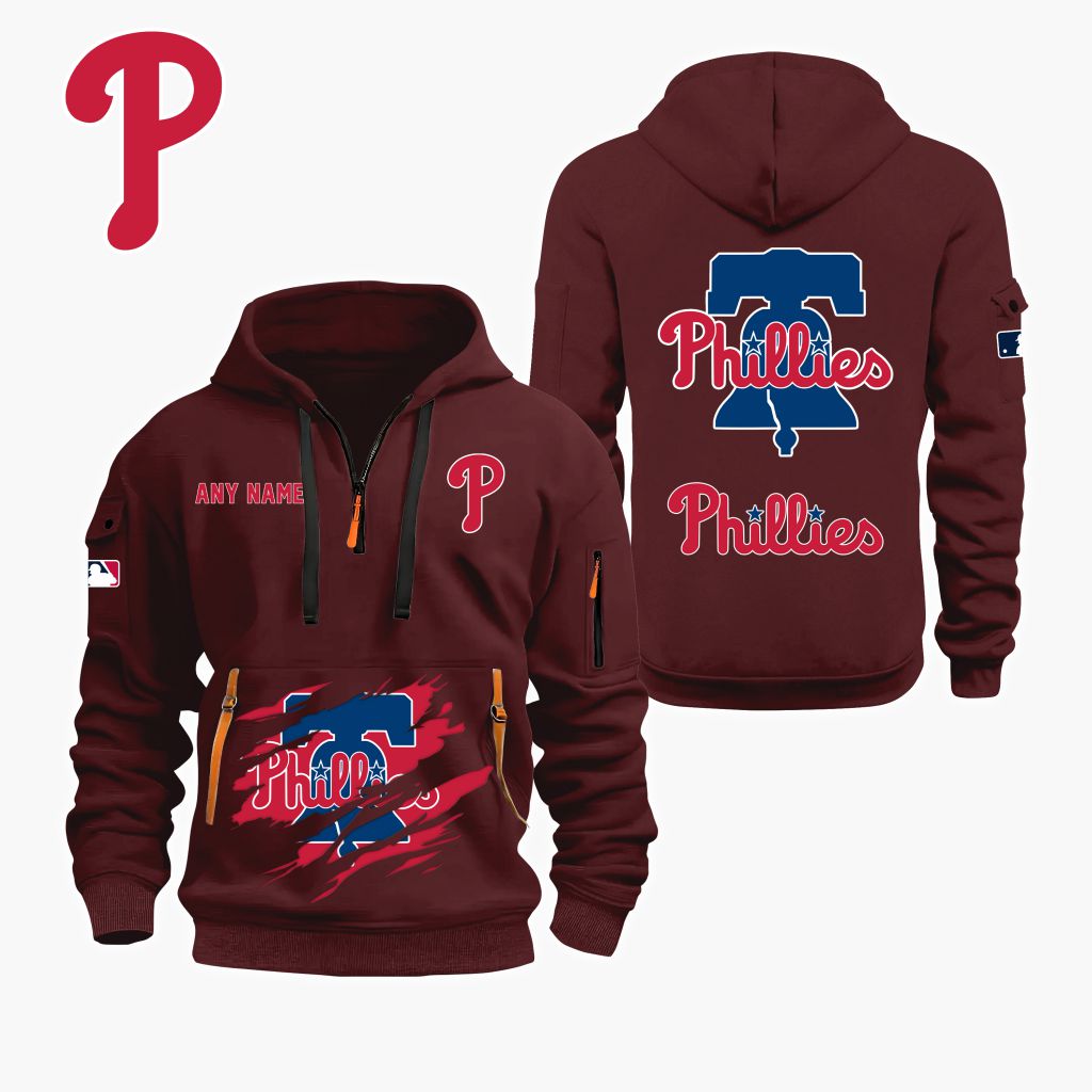 MLB Philadelphia Phillies Personalized Name Quarter Zip Hoodie ST2501