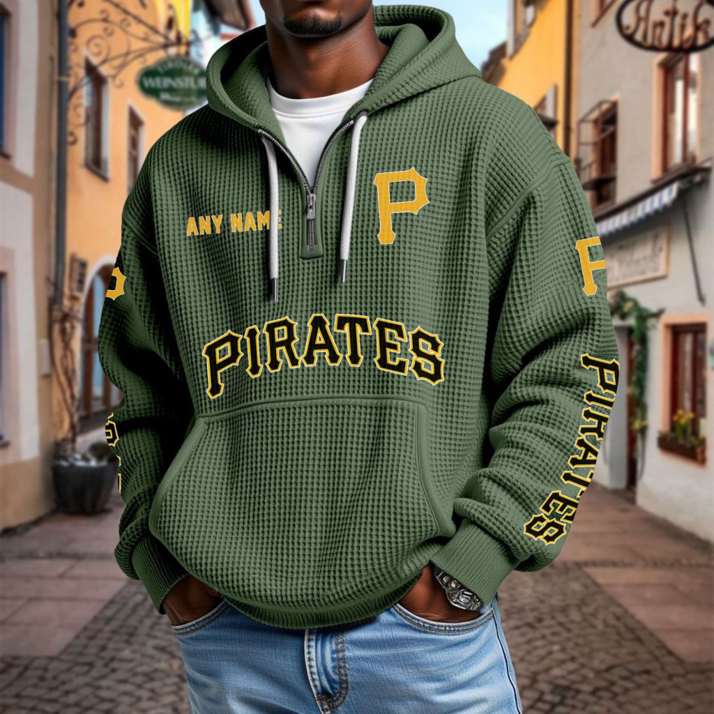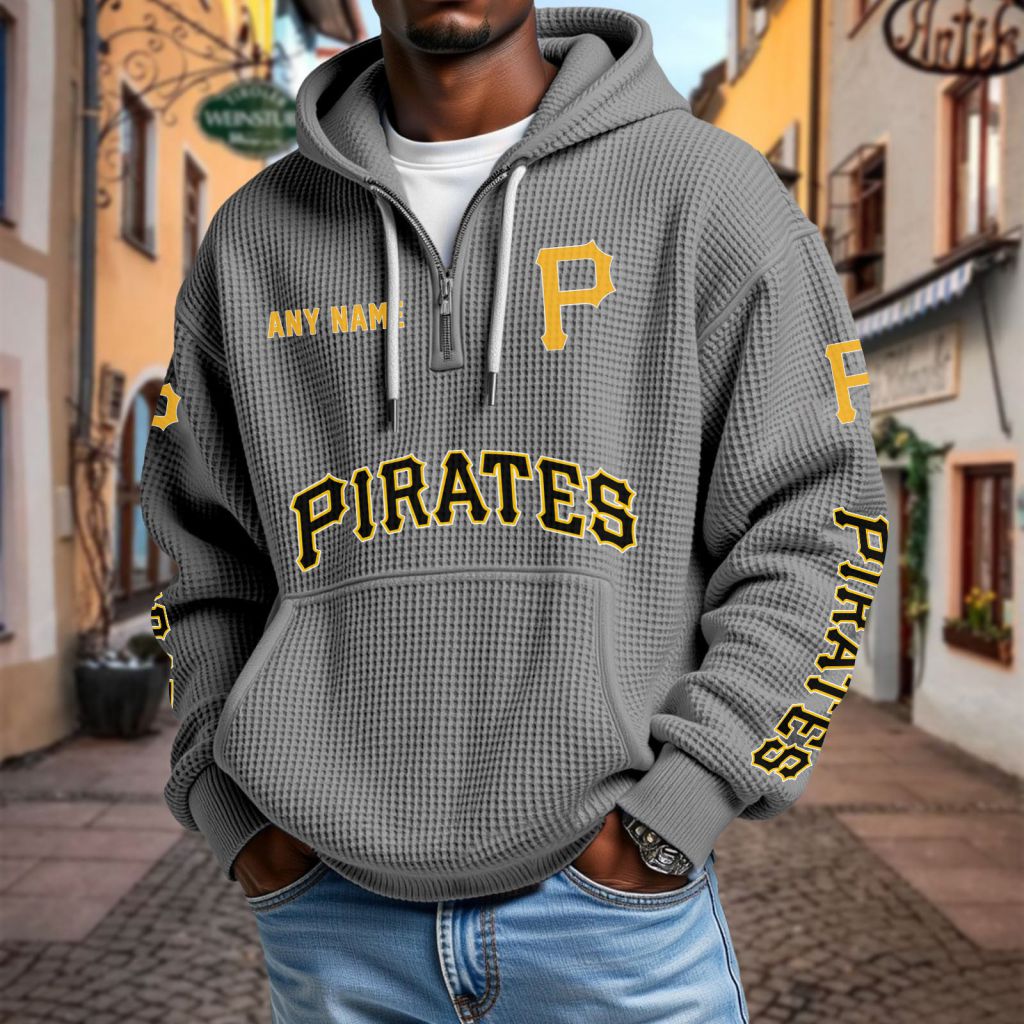 MLB Pittsburgh Pirates Personalized Name Waffle Quarter Zip Hoodie Design ST2501