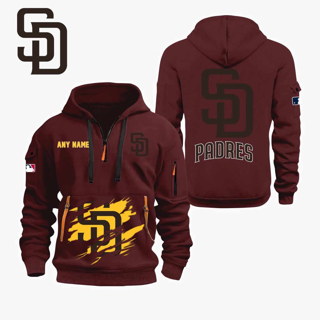 MLB San Diego Padres Personalized Name Quarter Zip Hoodie ST2501