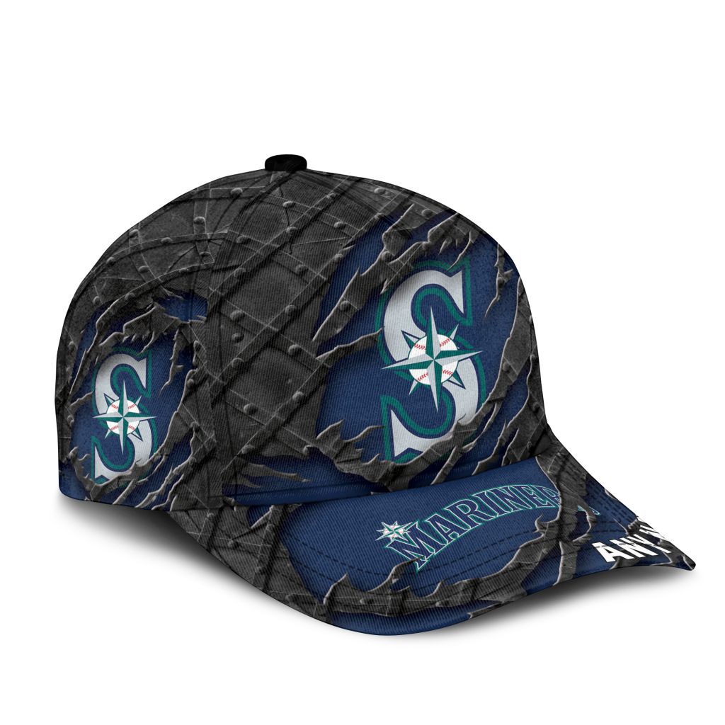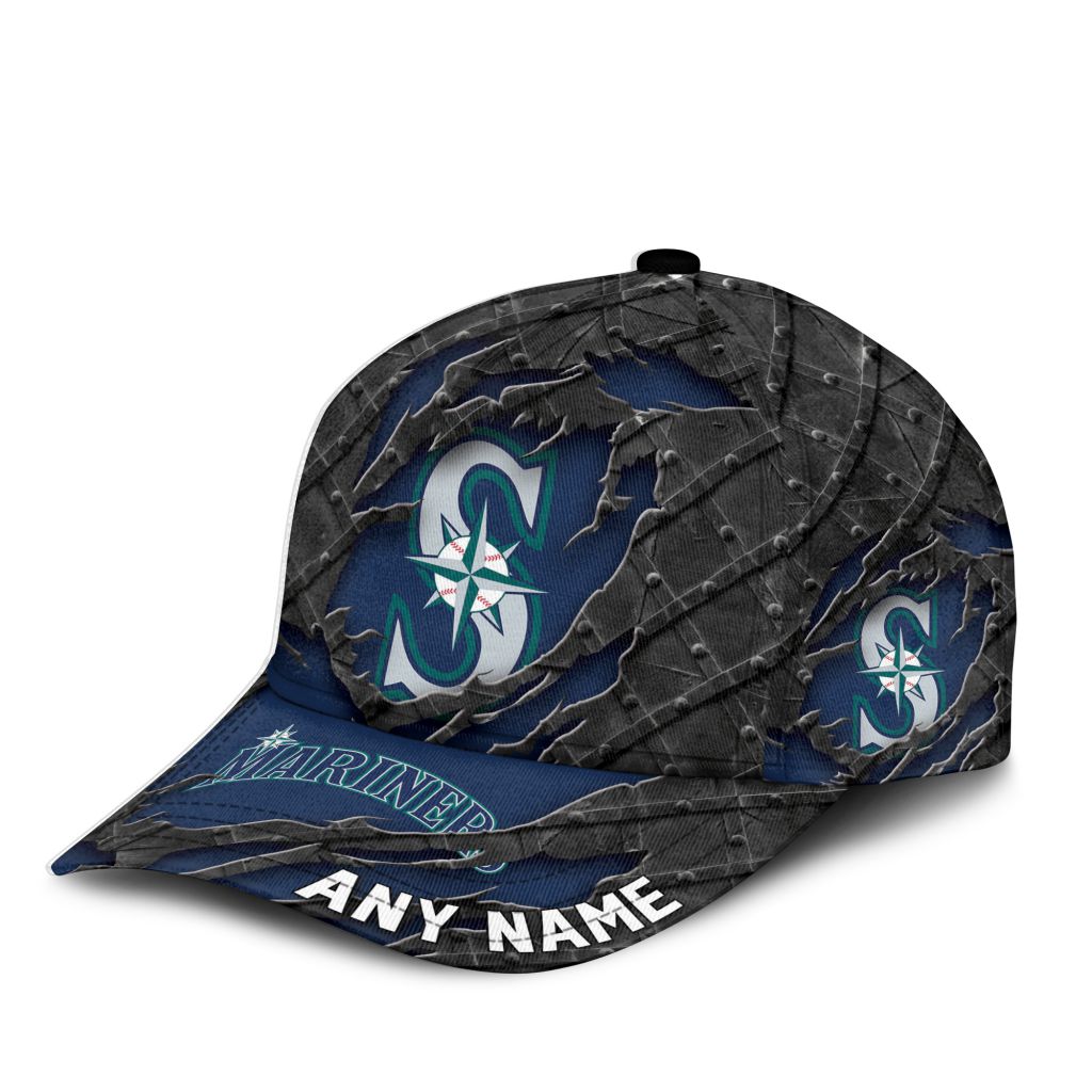 MLB Seattle Mariners Personalized Name Black Metal Design Classic Cap ST2501