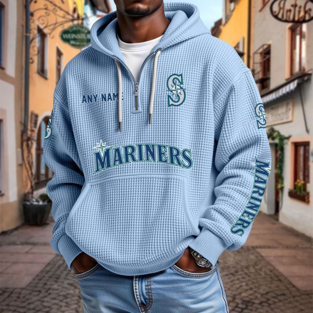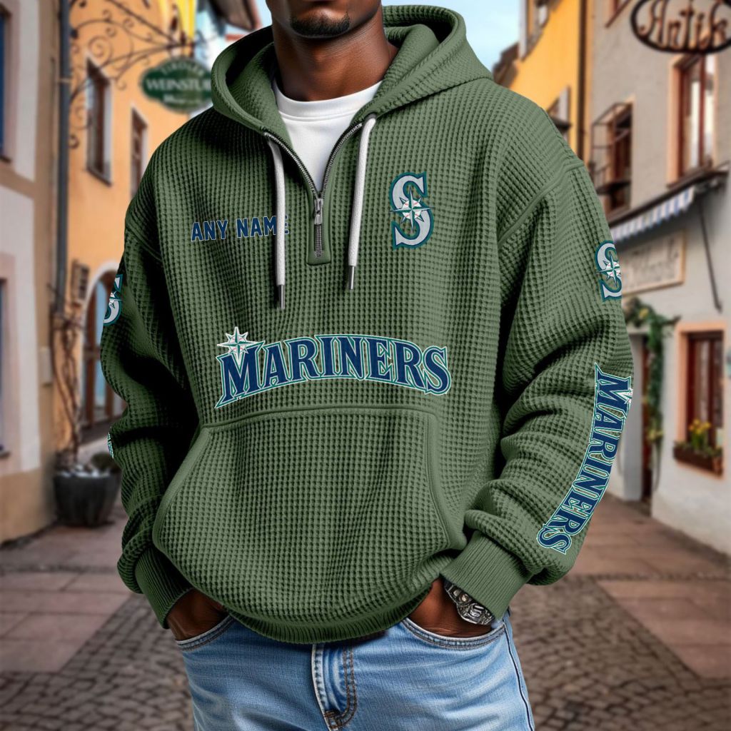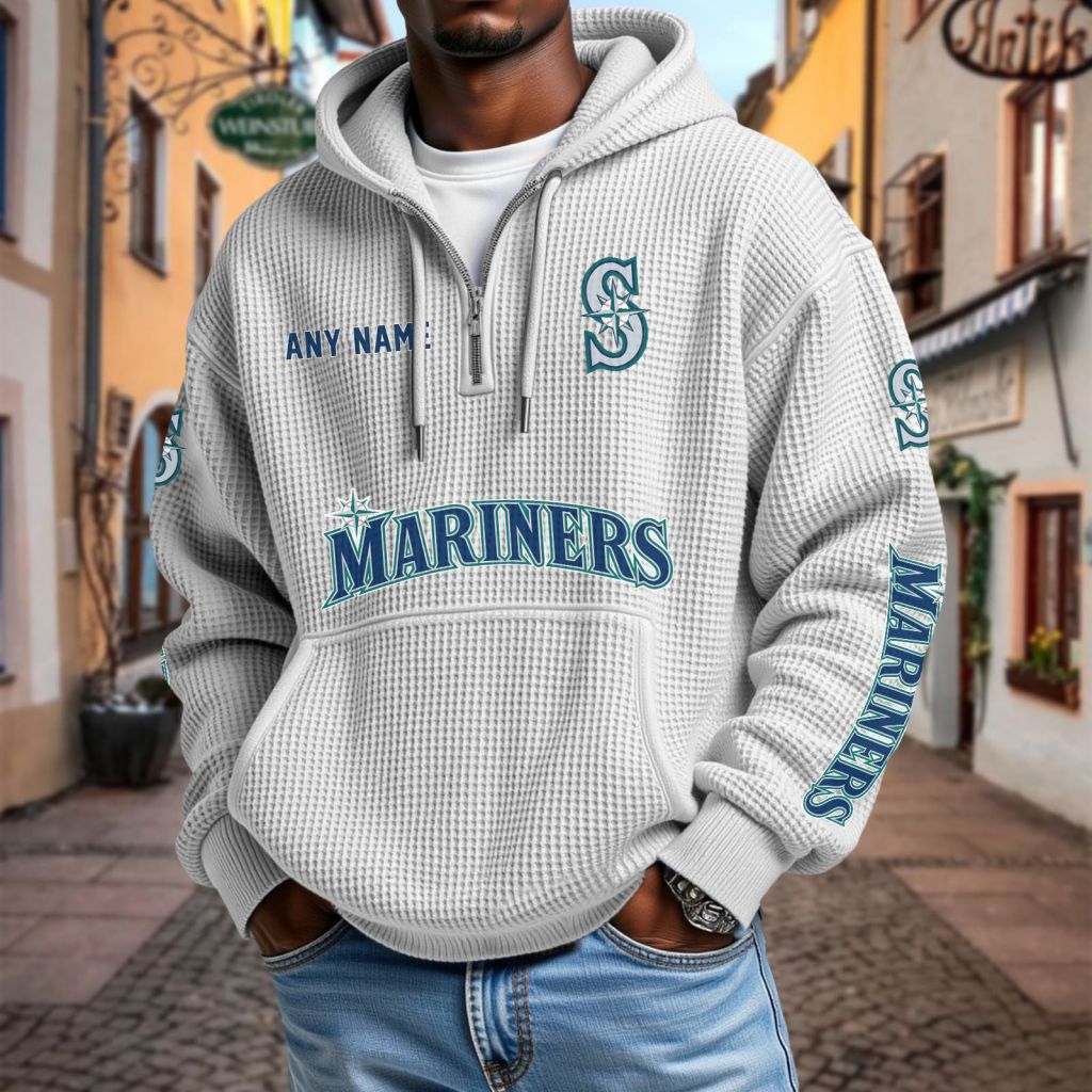 MLB Seattle Mariners Personalized Name Waffle Quarter Zip Hoodie Design ST2501