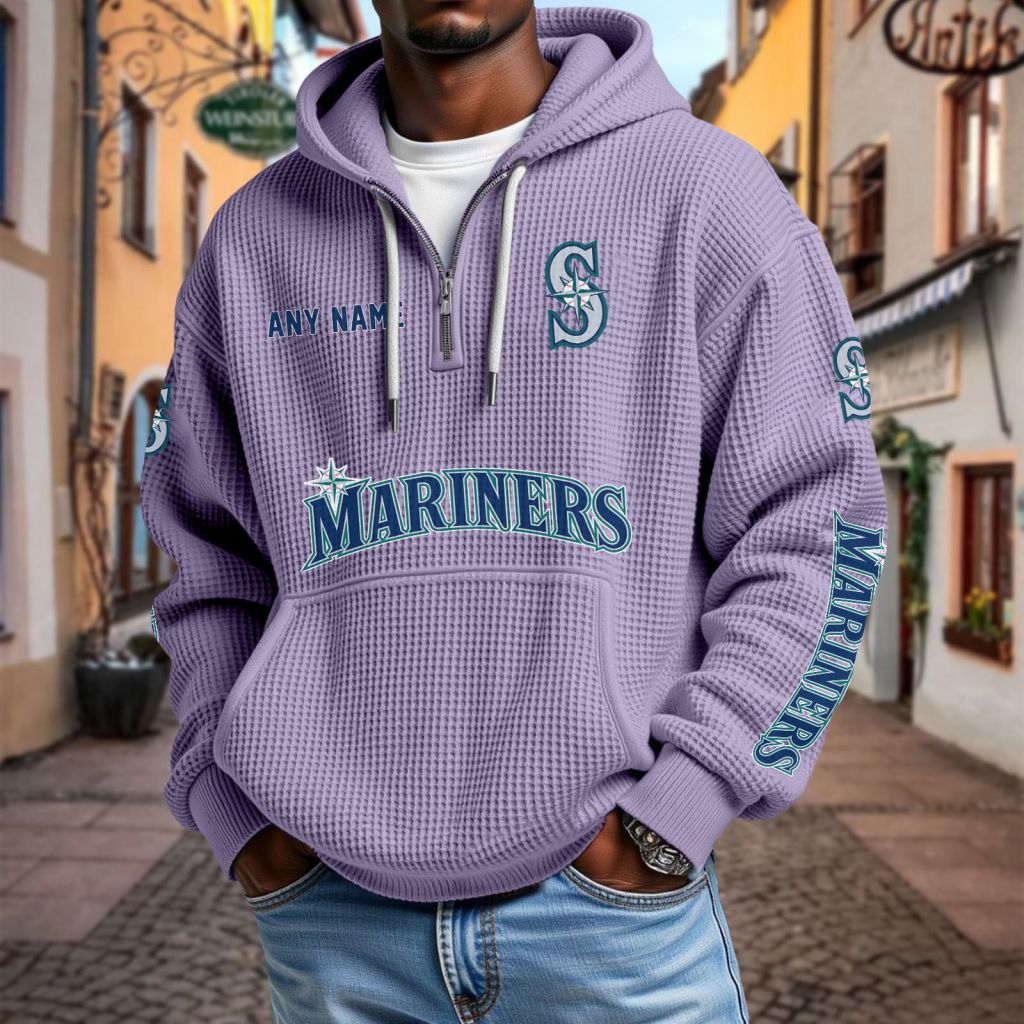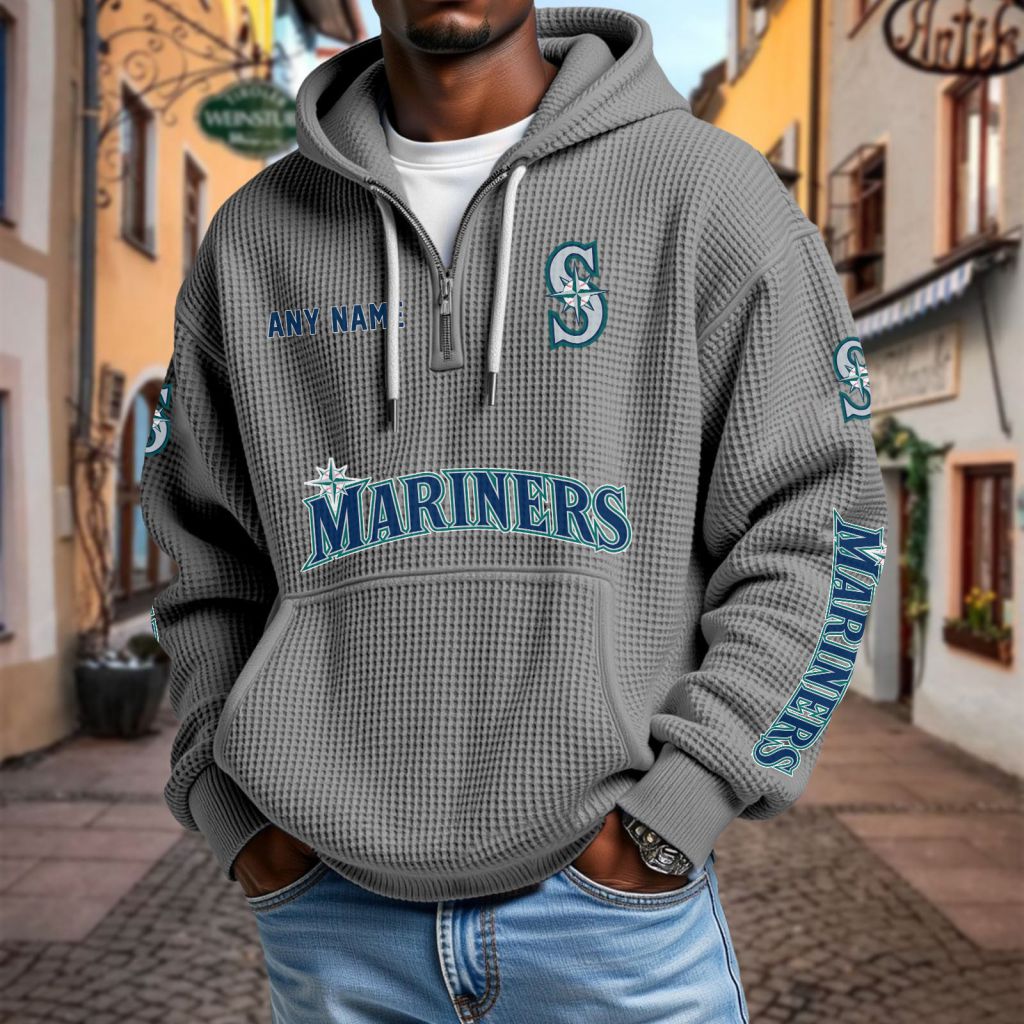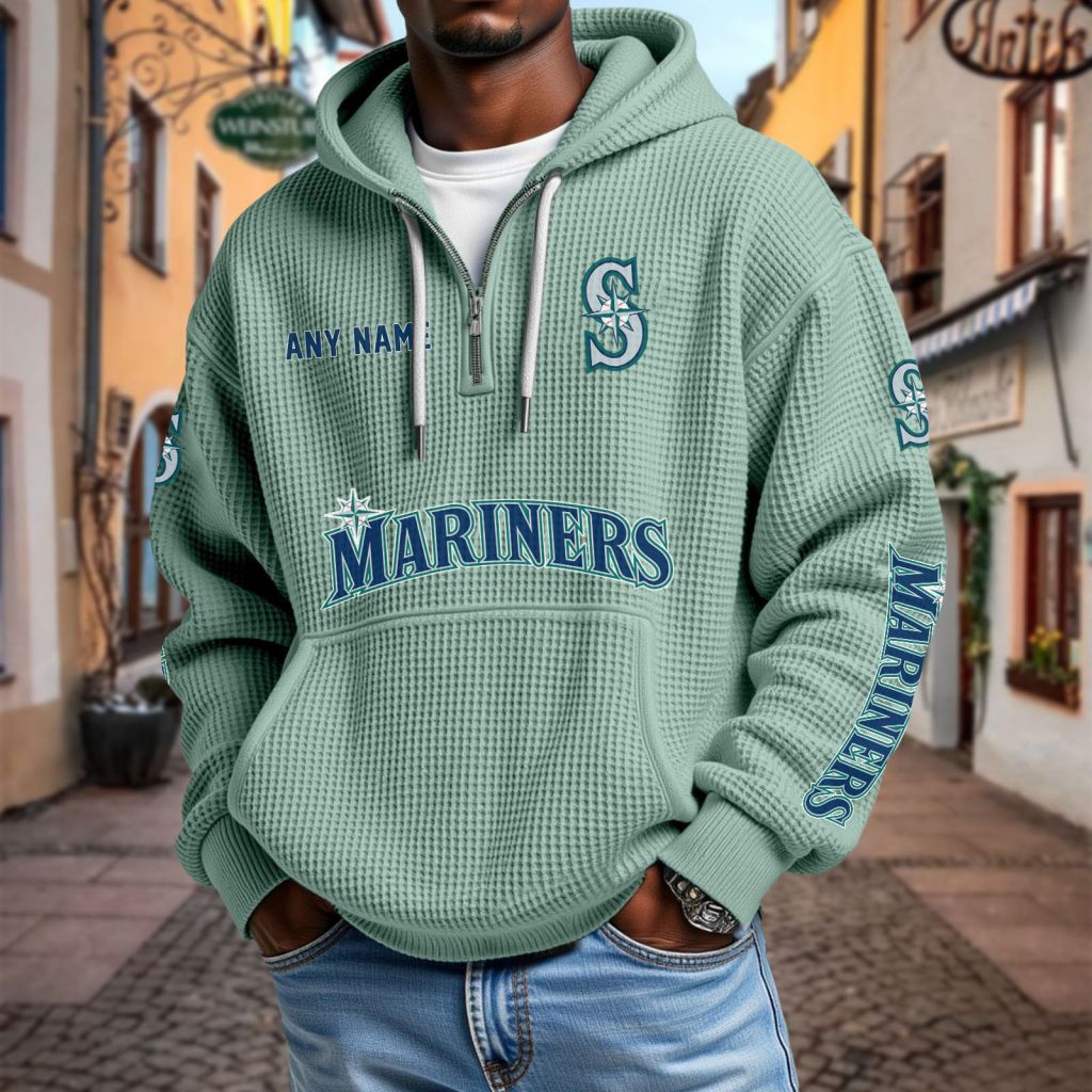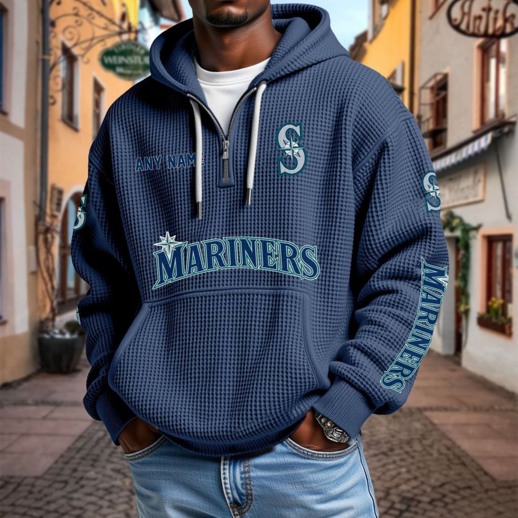 MLB Seattle Mariners Personalized Name Waffle Quarter Zip Hoodie Design ST2501