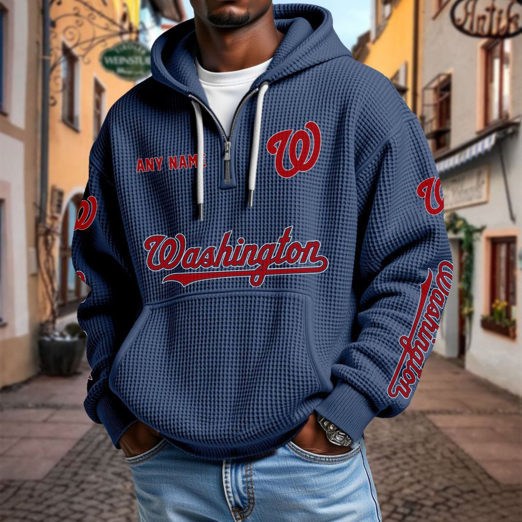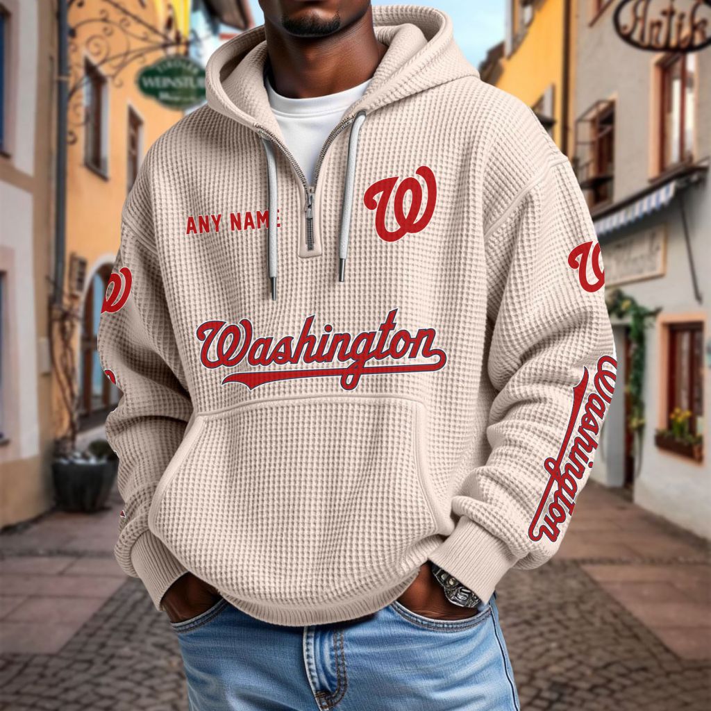 MLB Washington Nationals Personalized Name Waffle Quarter Zip Hoodie Design ST2501
