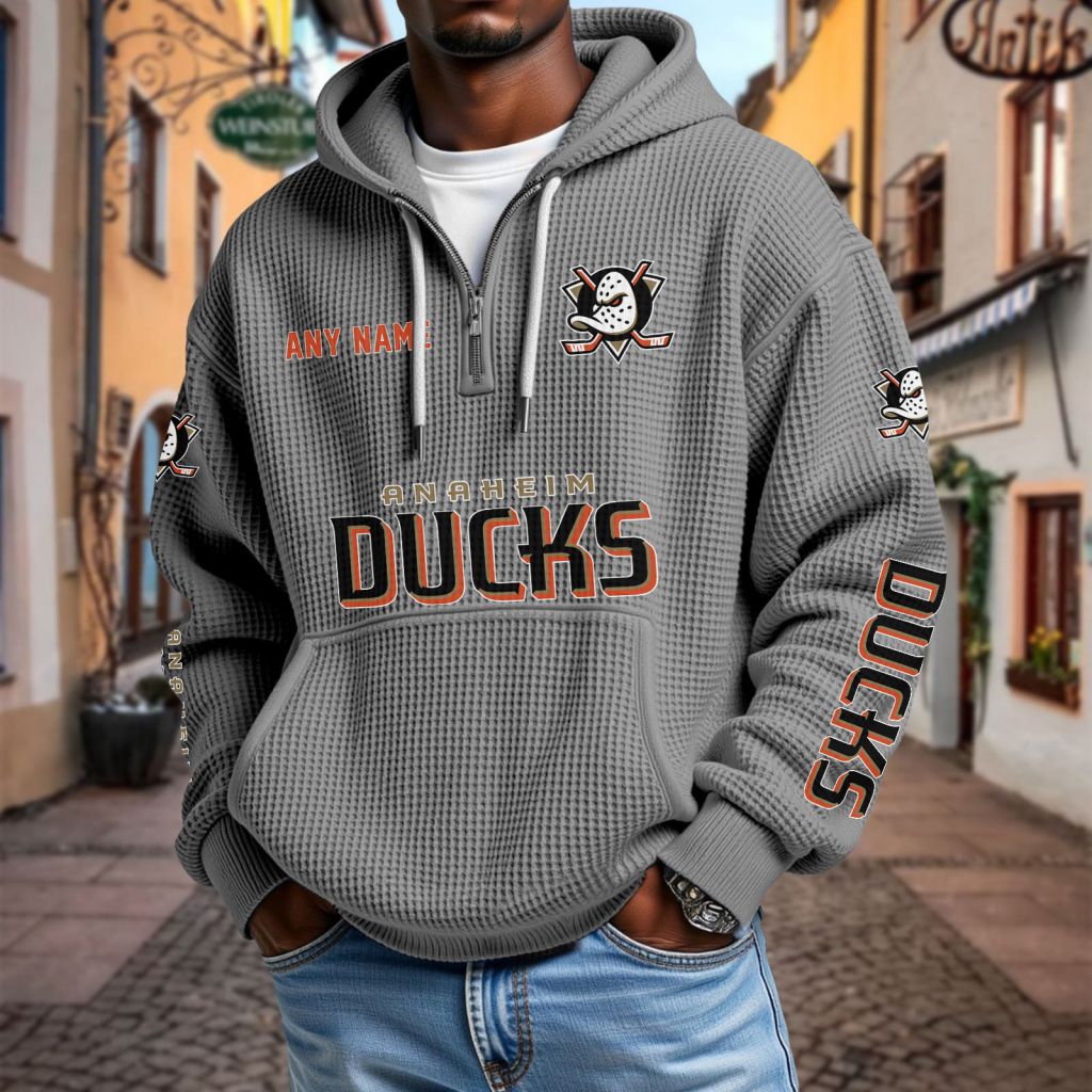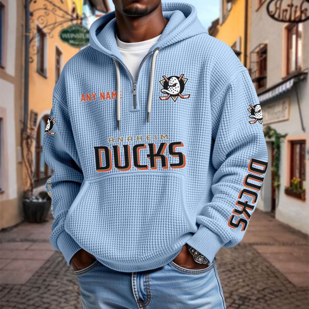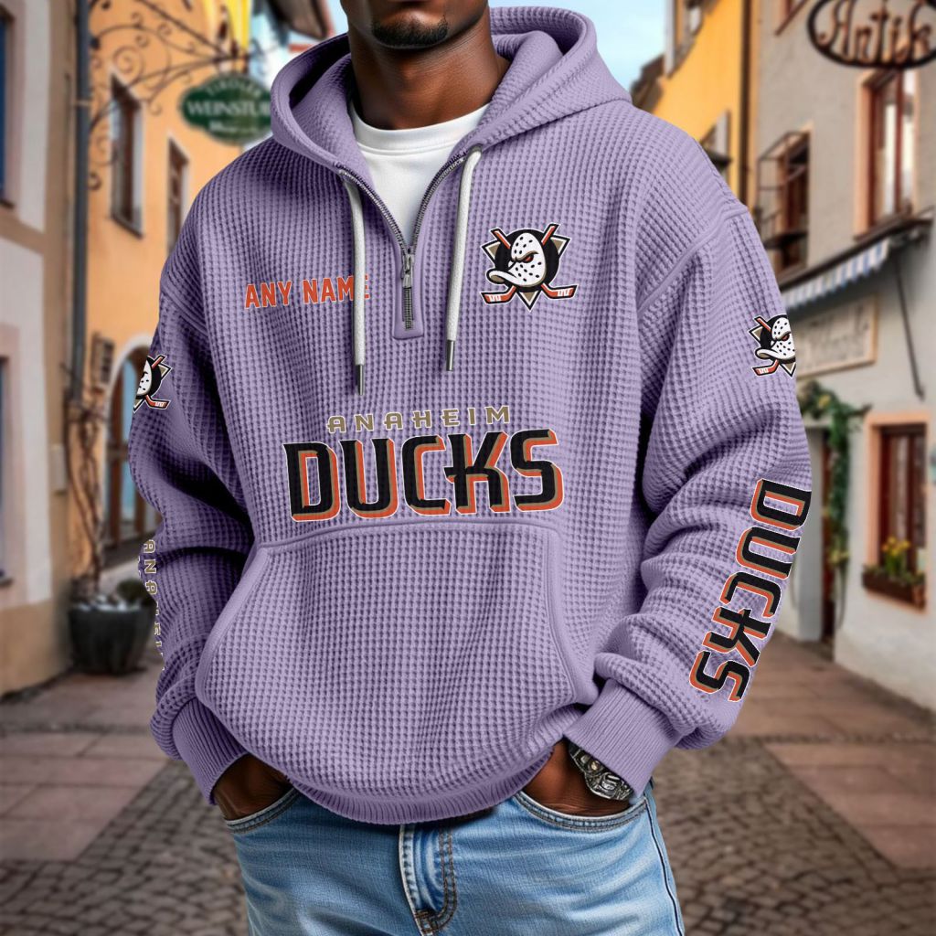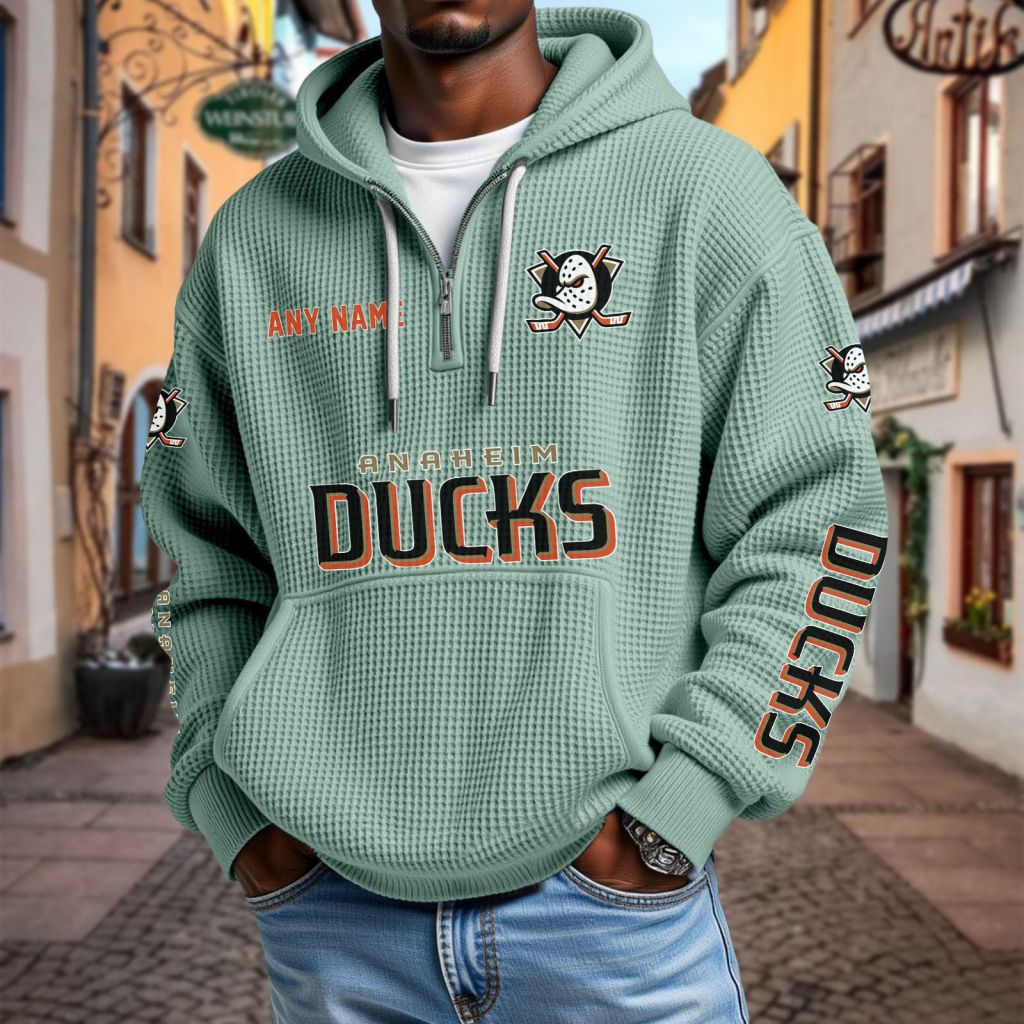 NHL Anaheim Ducks Personalized Name Waffle Quarter Zip Hoodie Design ST2501