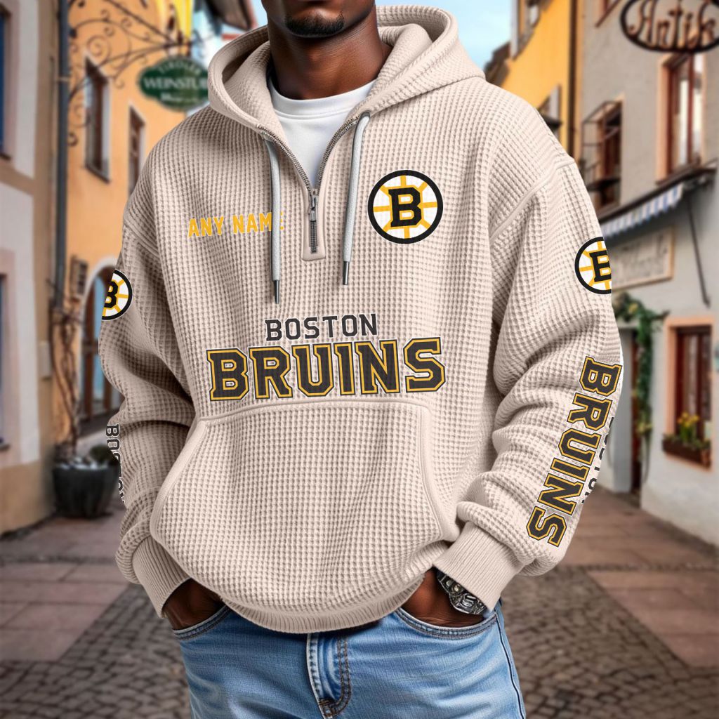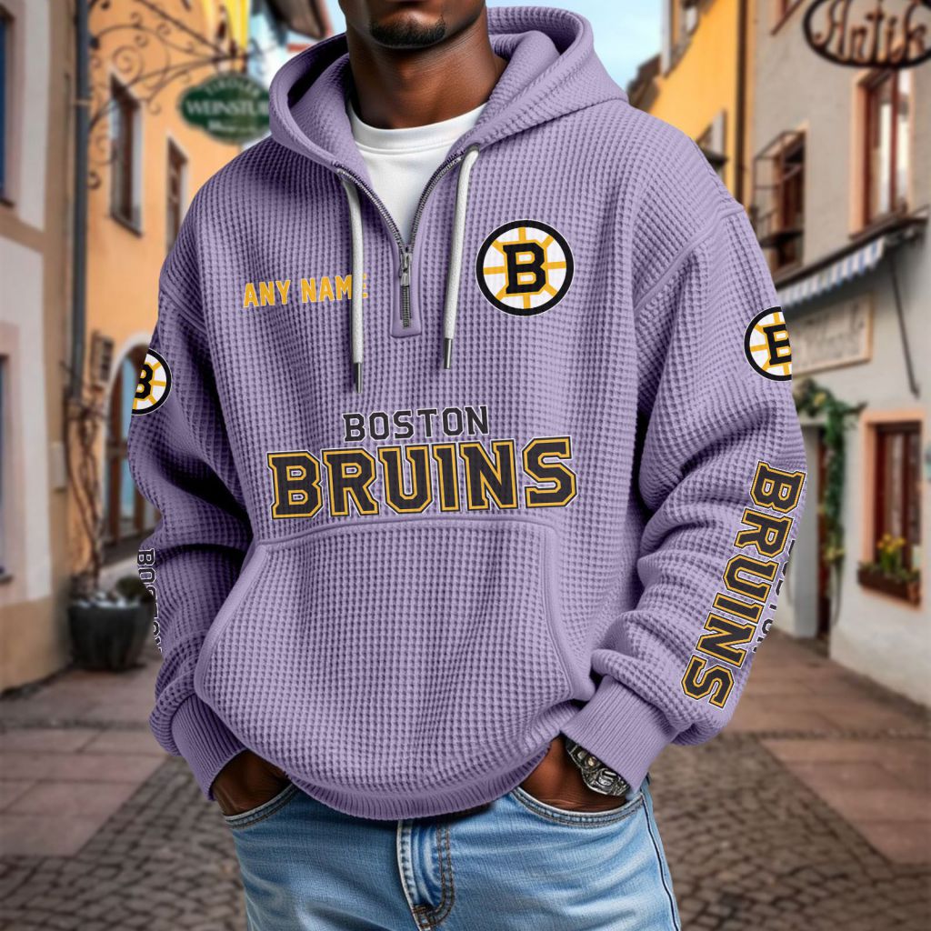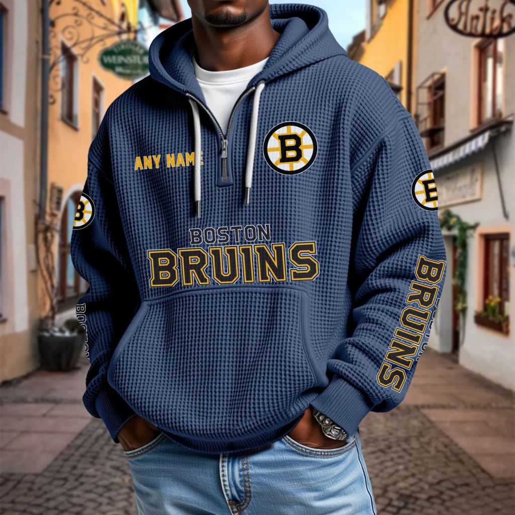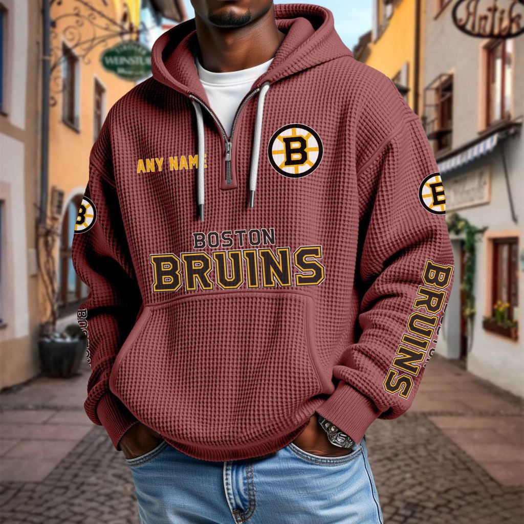 NHL Boston Bruins Personalized Name Waffle Quarter Zip Hoodie Design ST2501