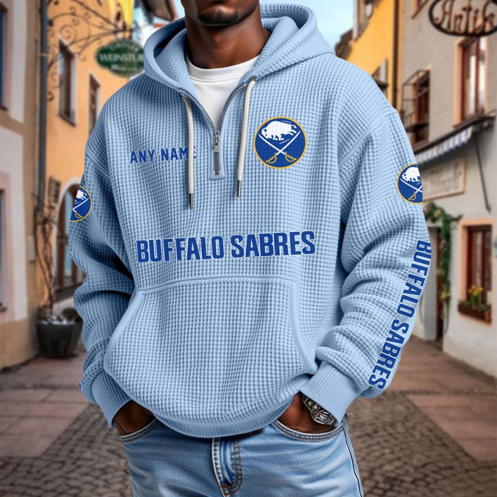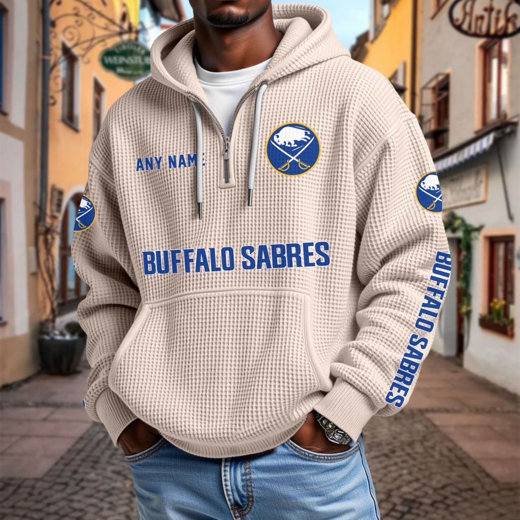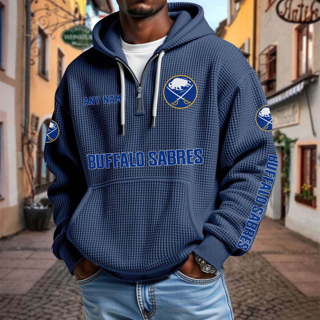NHL Buffalo Sabres Personalized Name Waffle Quarter Zip Hoodie Design ST2501