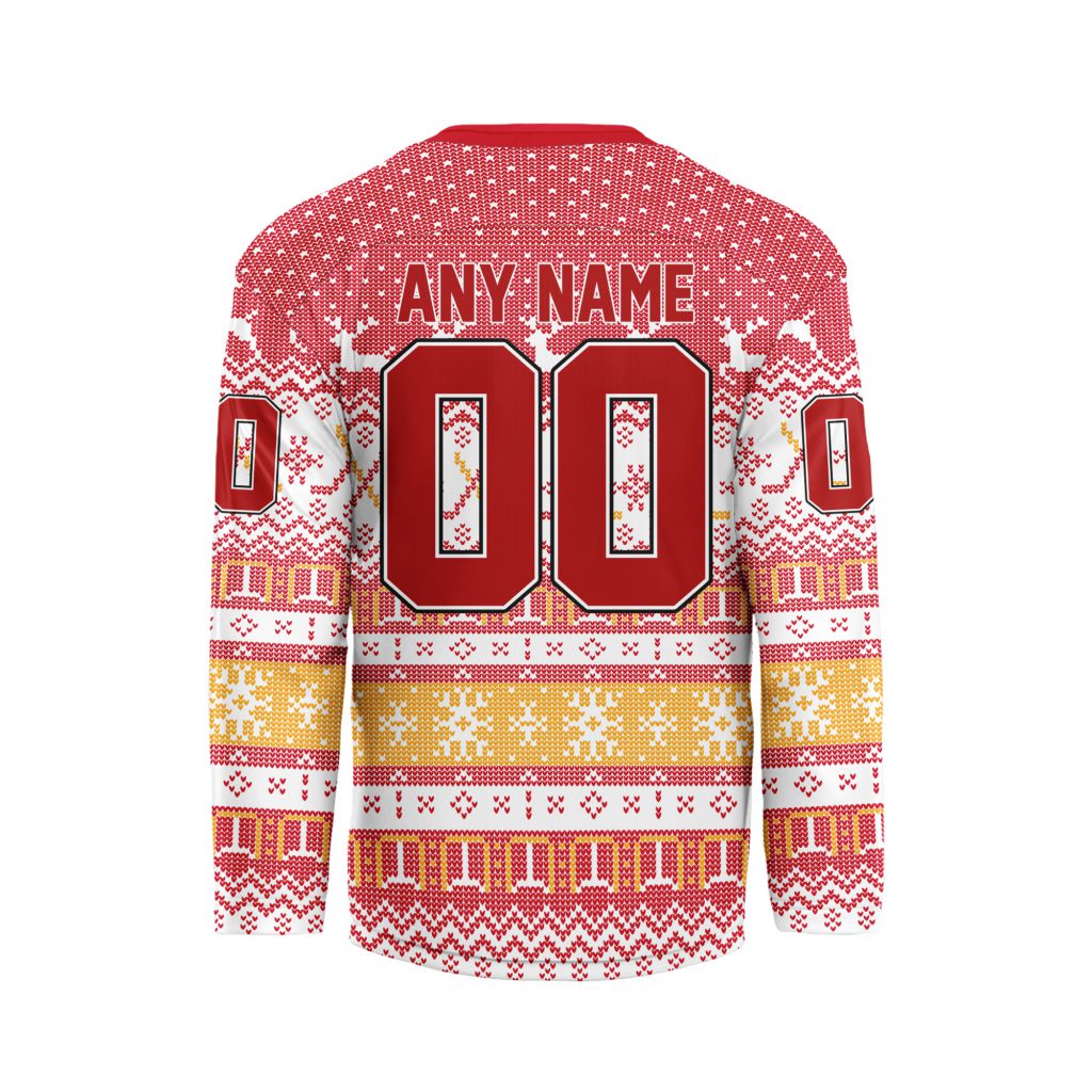 NHL Calgary Flames Personalized Christmas V-shaped Hockey Jersey Design ST2503
