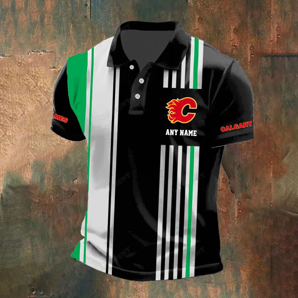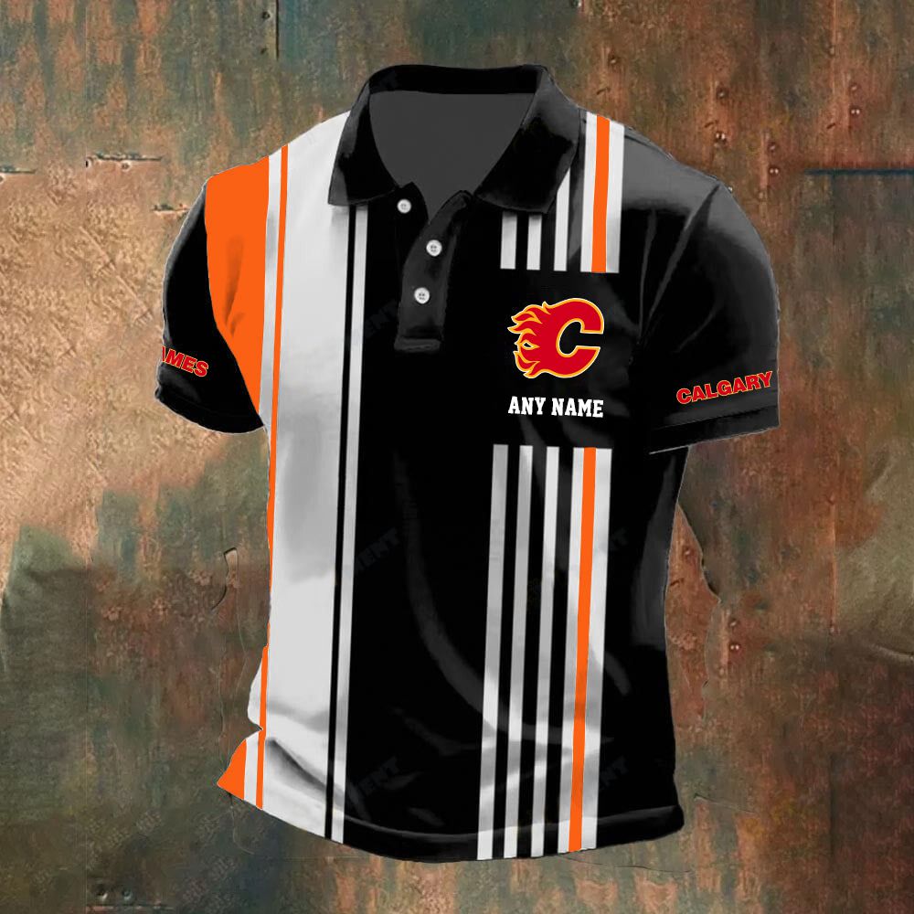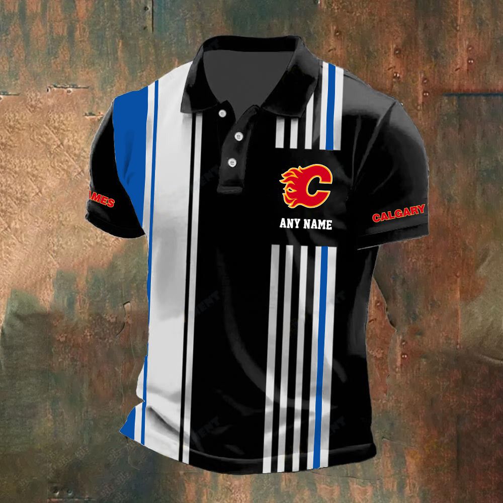 NHL Calgary Flames Personalized Name Stripped Polo Design ST2502