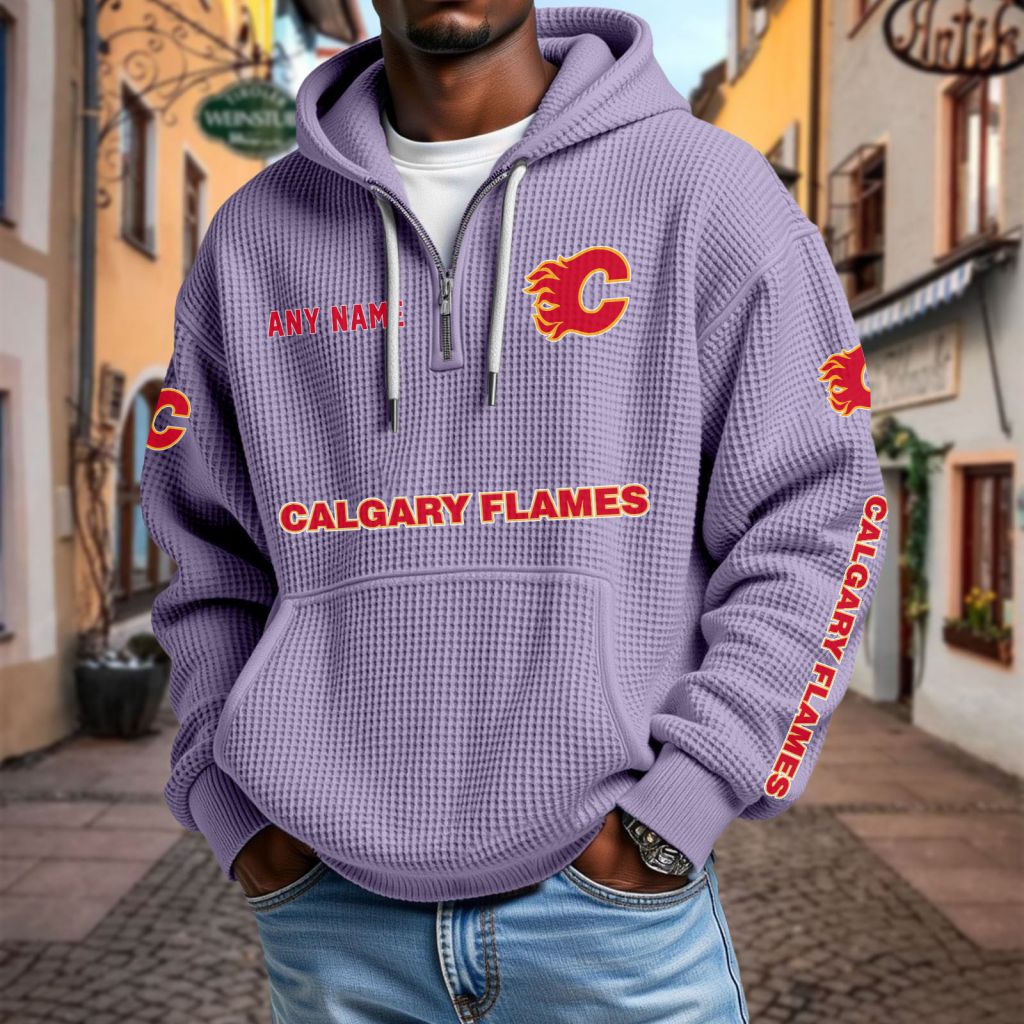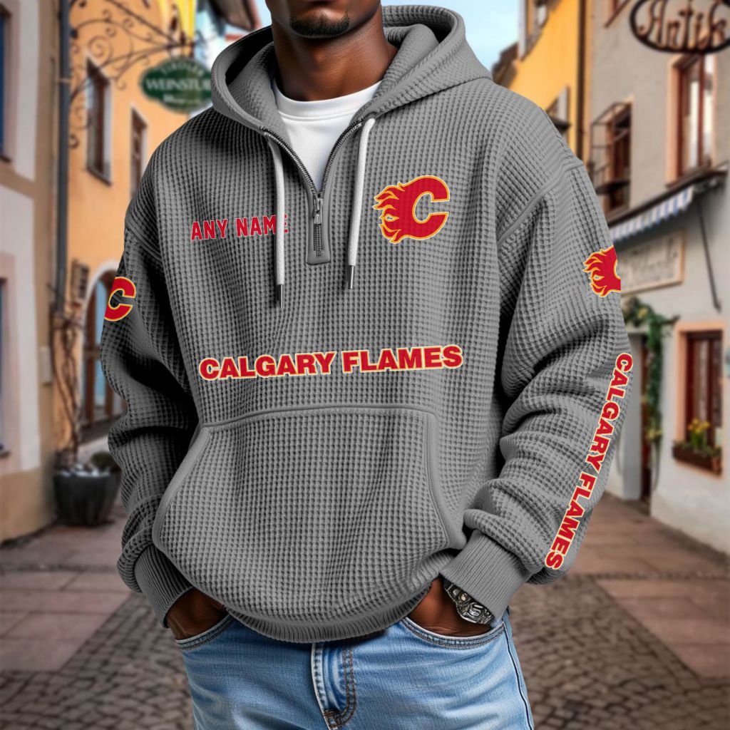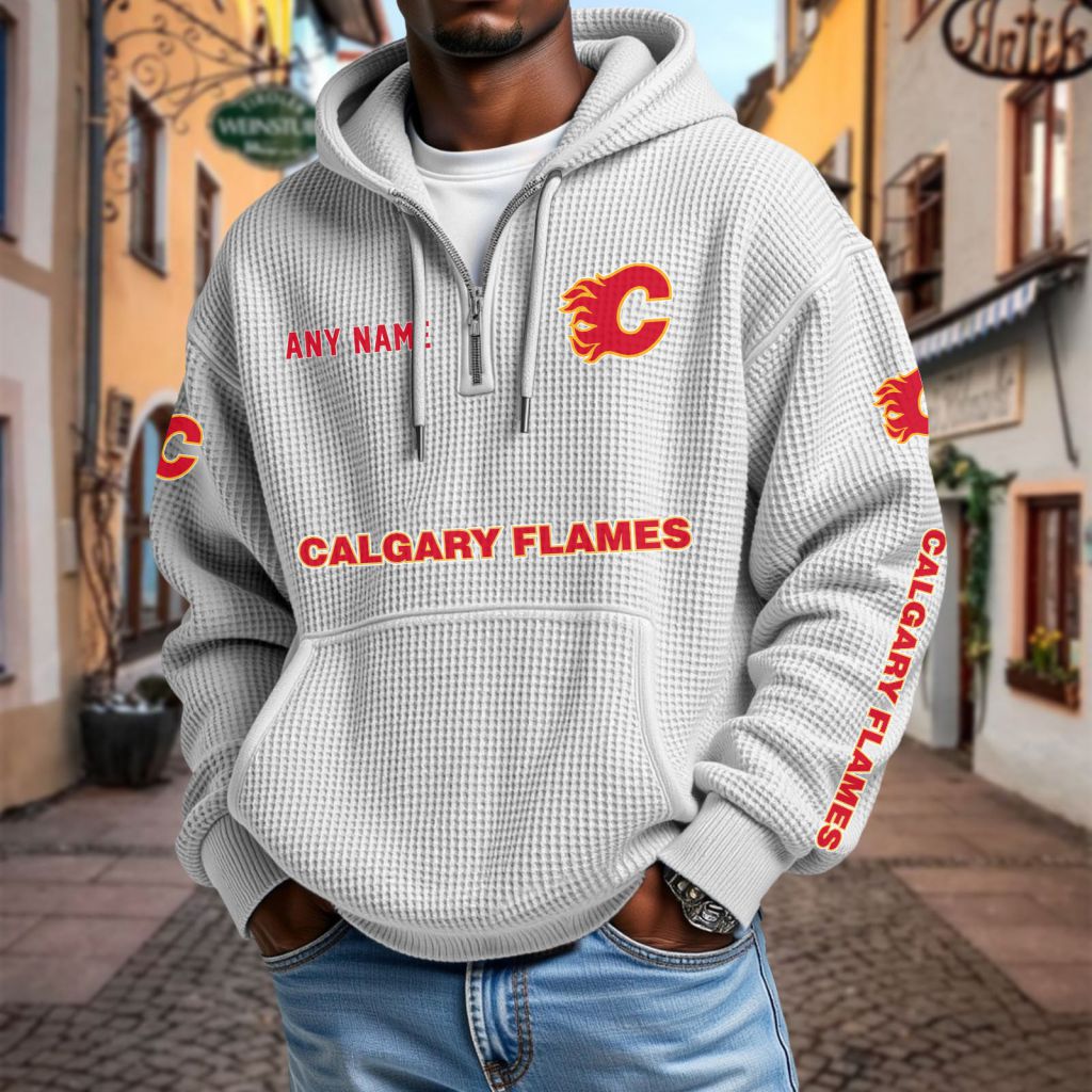 NHL Calgary Flames Personalized Name Waffle Quarter Zip Hoodie Design ST2501