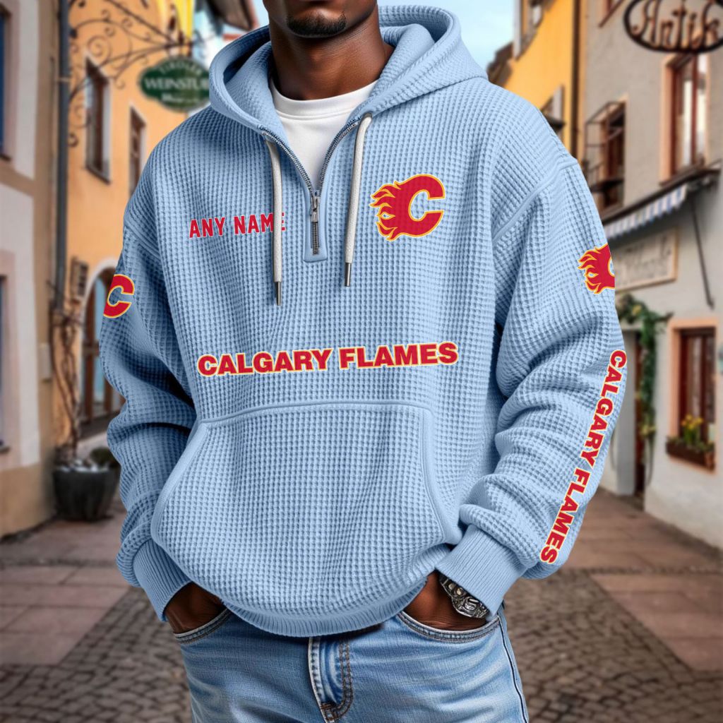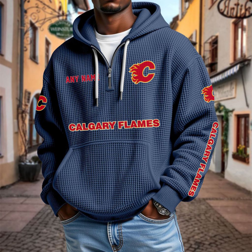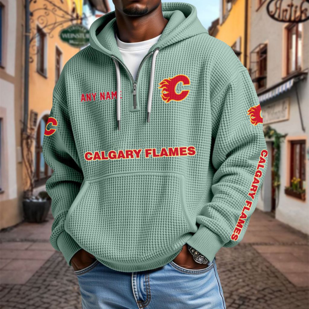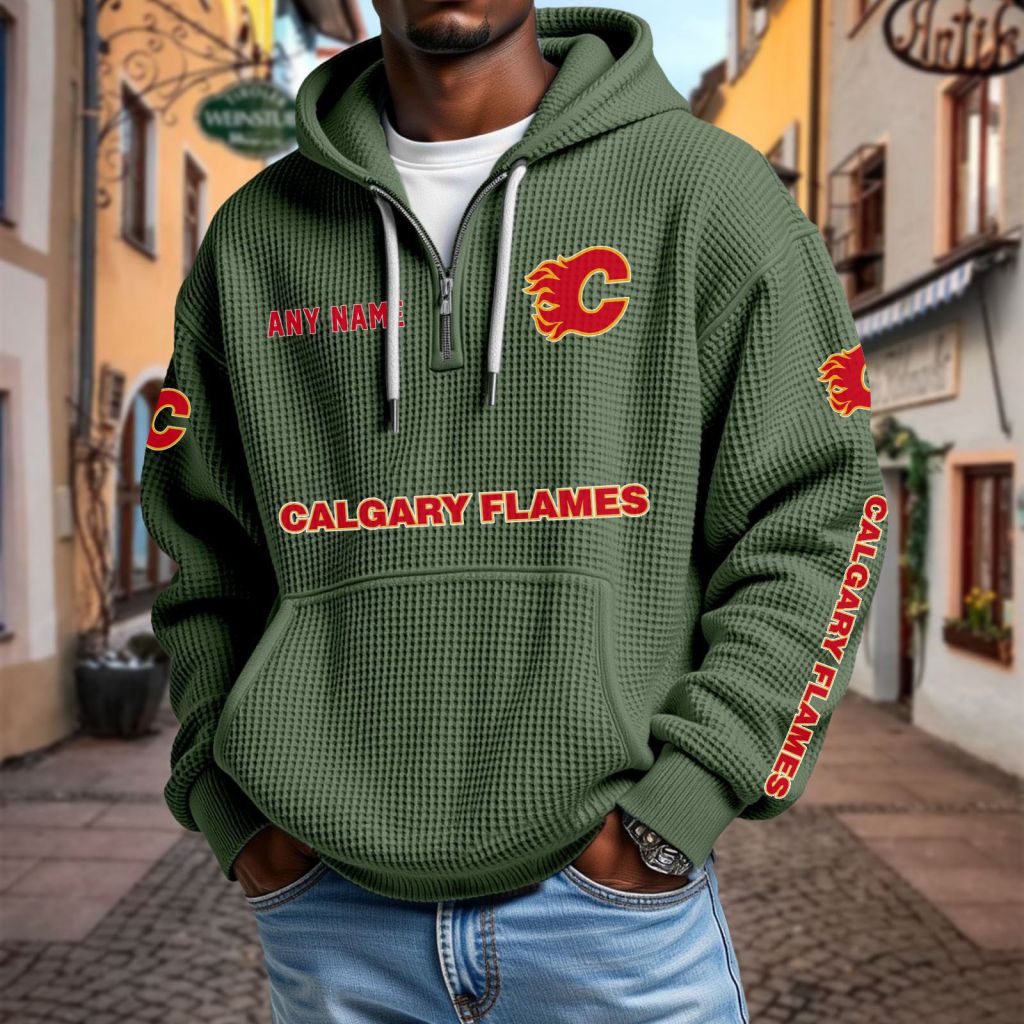 NHL Calgary Flames Personalized Name Waffle Quarter Zip Hoodie Design ST2501