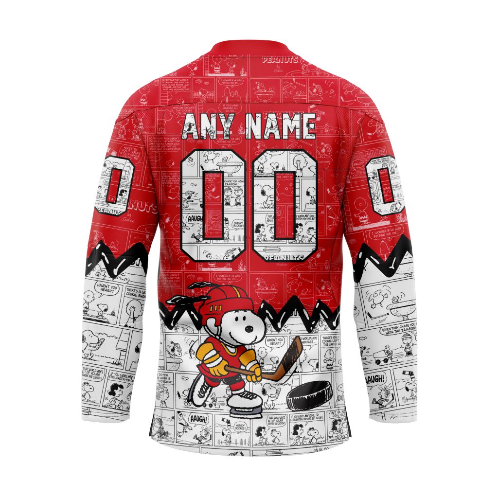 NHL Calgary Flames Special Peanuts Lace Hockey Jersey Design