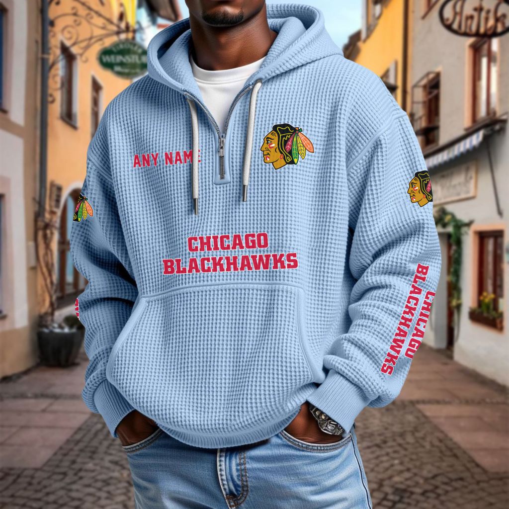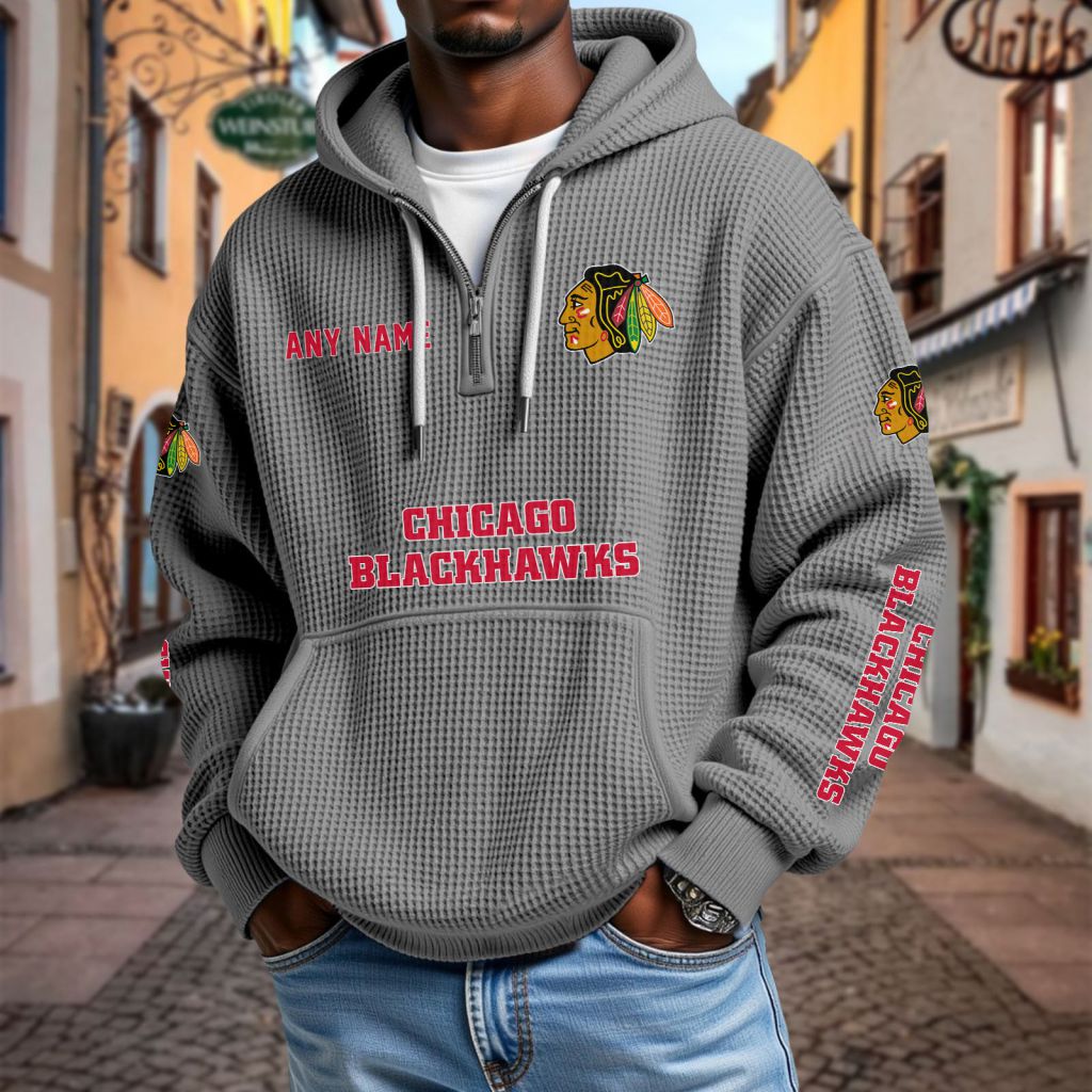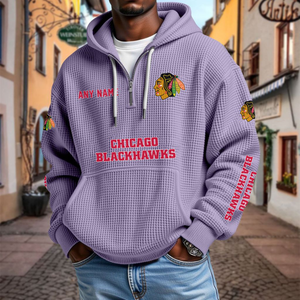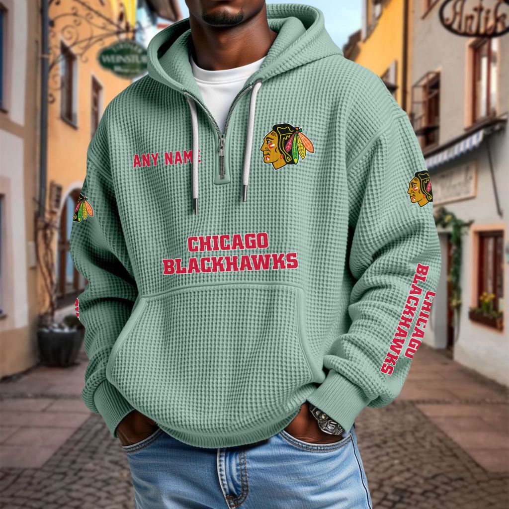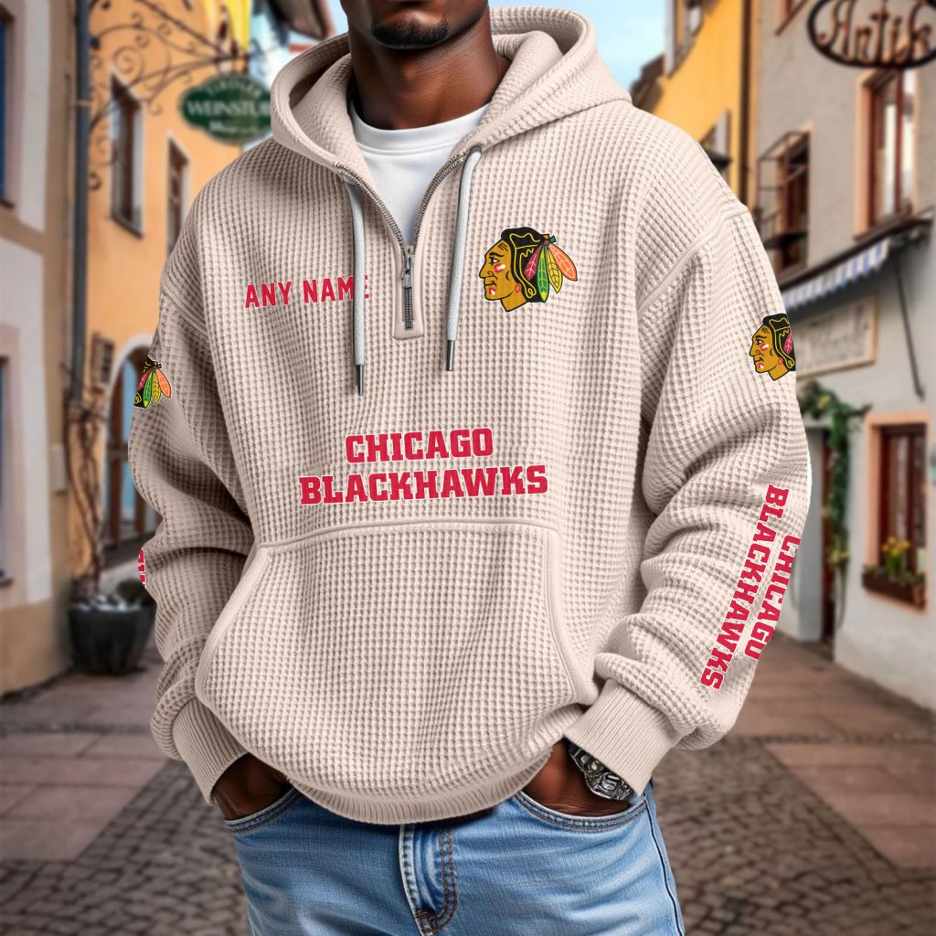 NHL Chicago Blackhawks Personalized Name Waffle Quarter Zip Hoodie Design ST2501