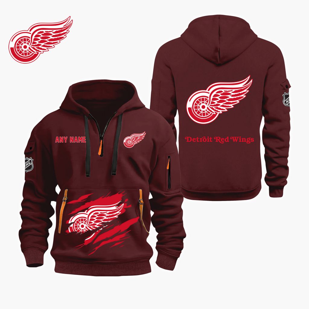 NHL Detroit Red Wings Personalized Name Quarter Zip Hoodie ST2501