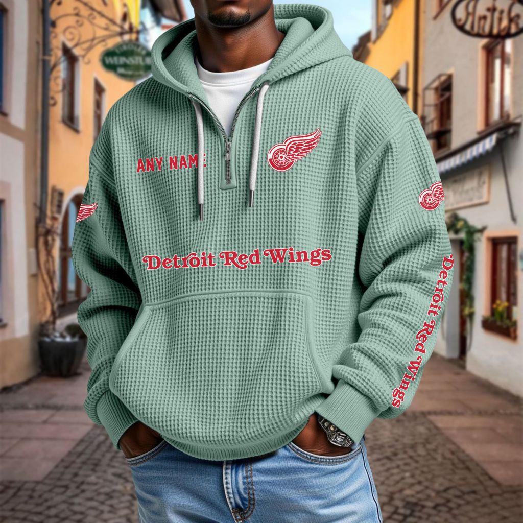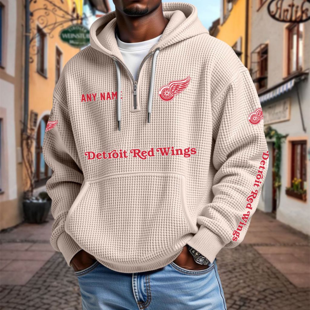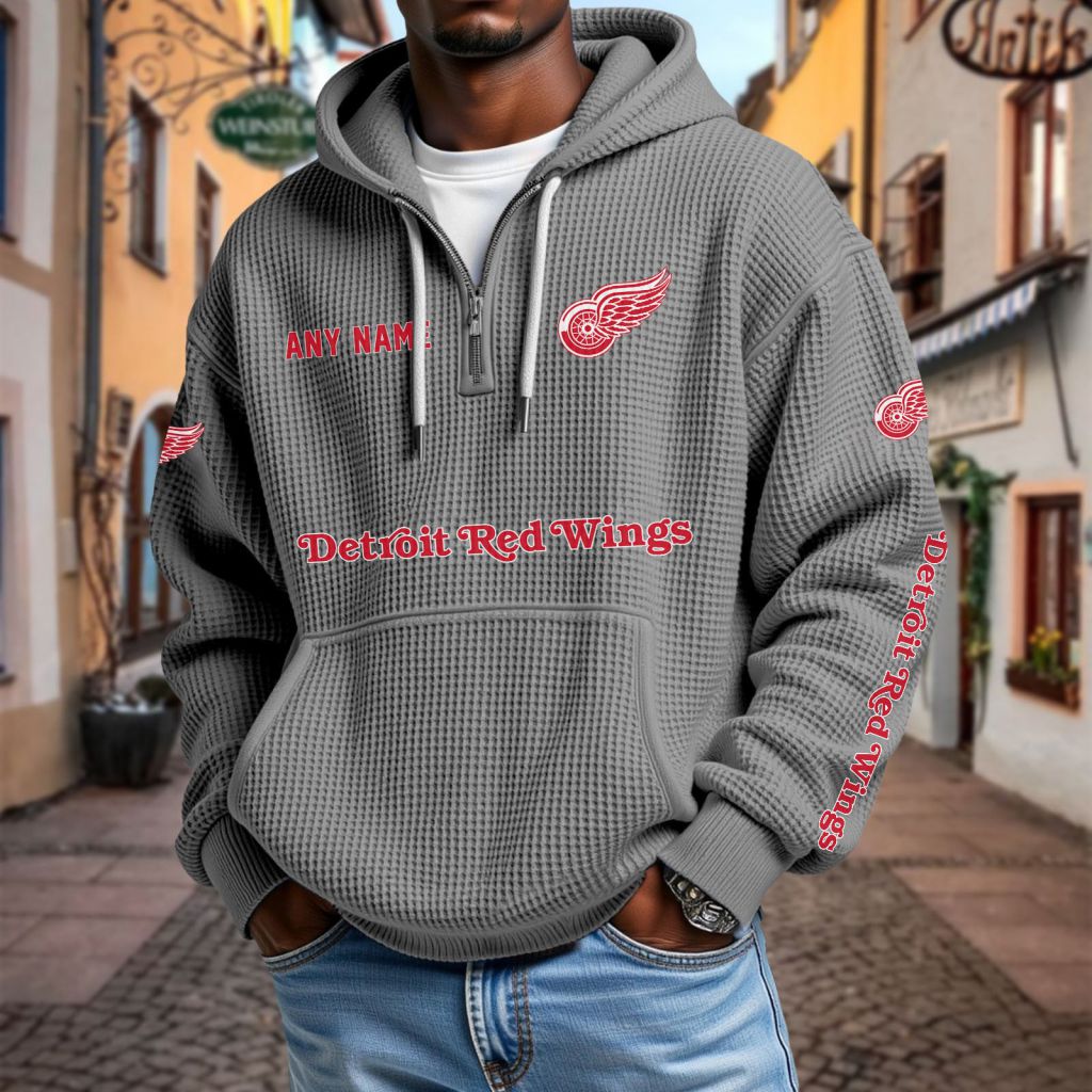 NHL Detroit Red Wings Personalized Name Waffle Quarter Zip Hoodie Design ST2501