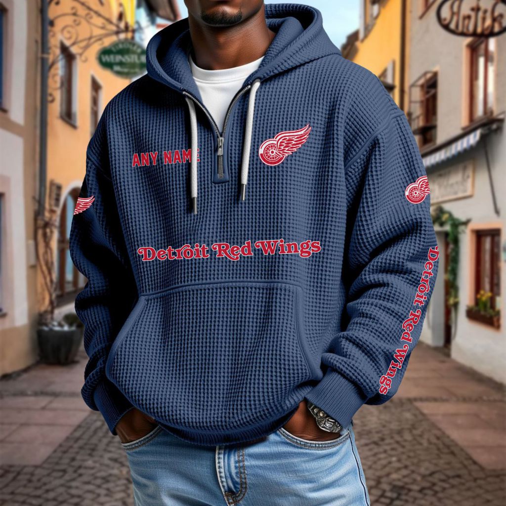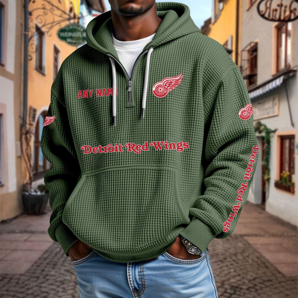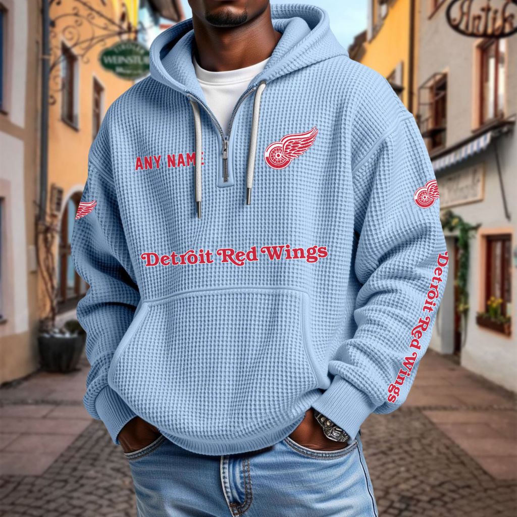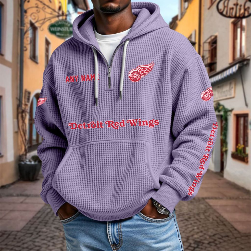 NHL Detroit Red Wings Personalized Name Waffle Quarter Zip Hoodie Design ST2501