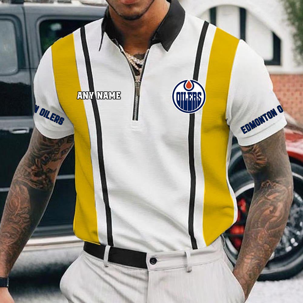 NHL Edmonton Oilers Personalized Name Multi Color Zipper Polo ST2501