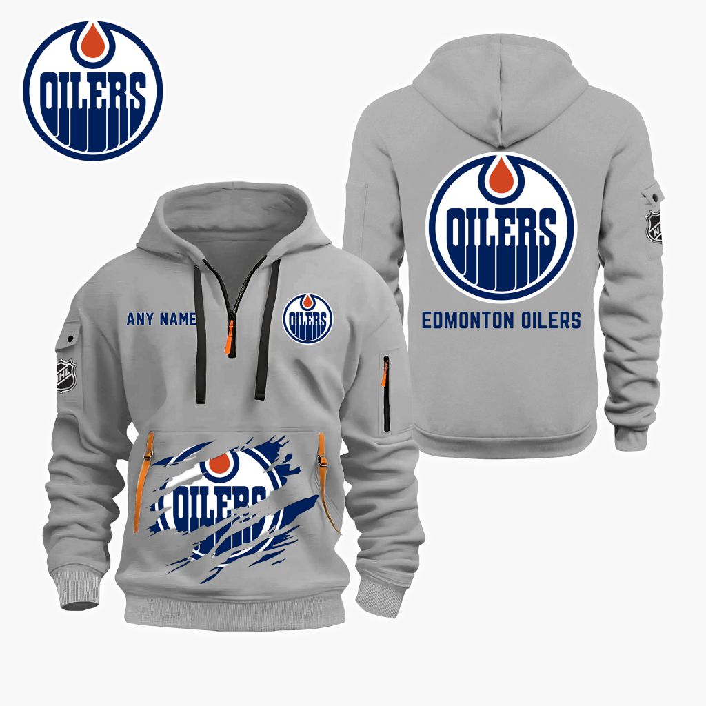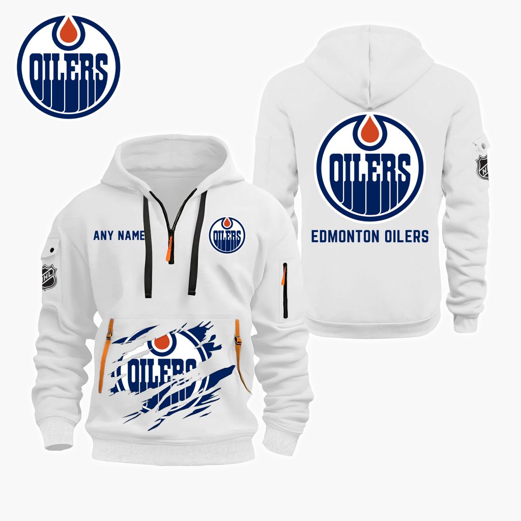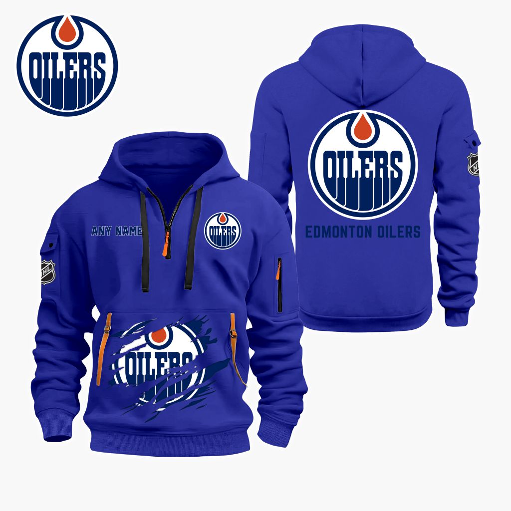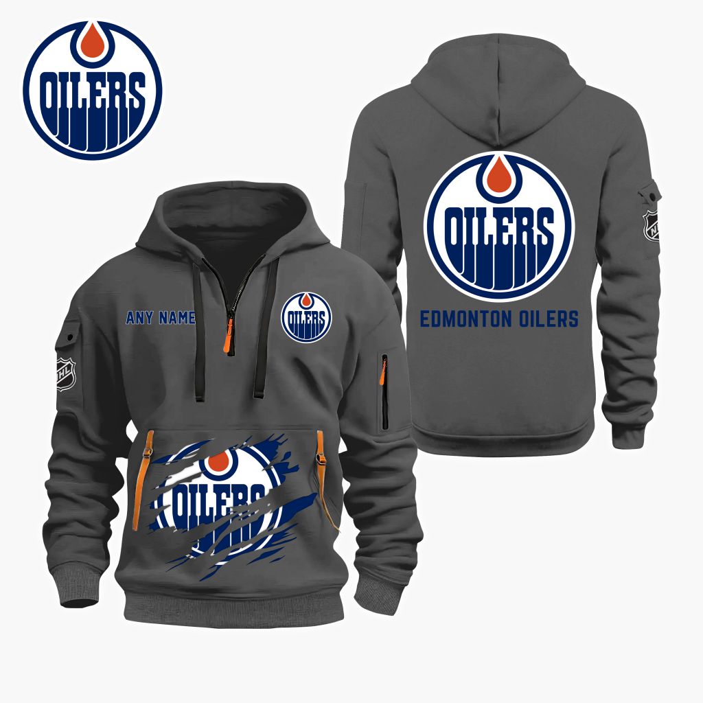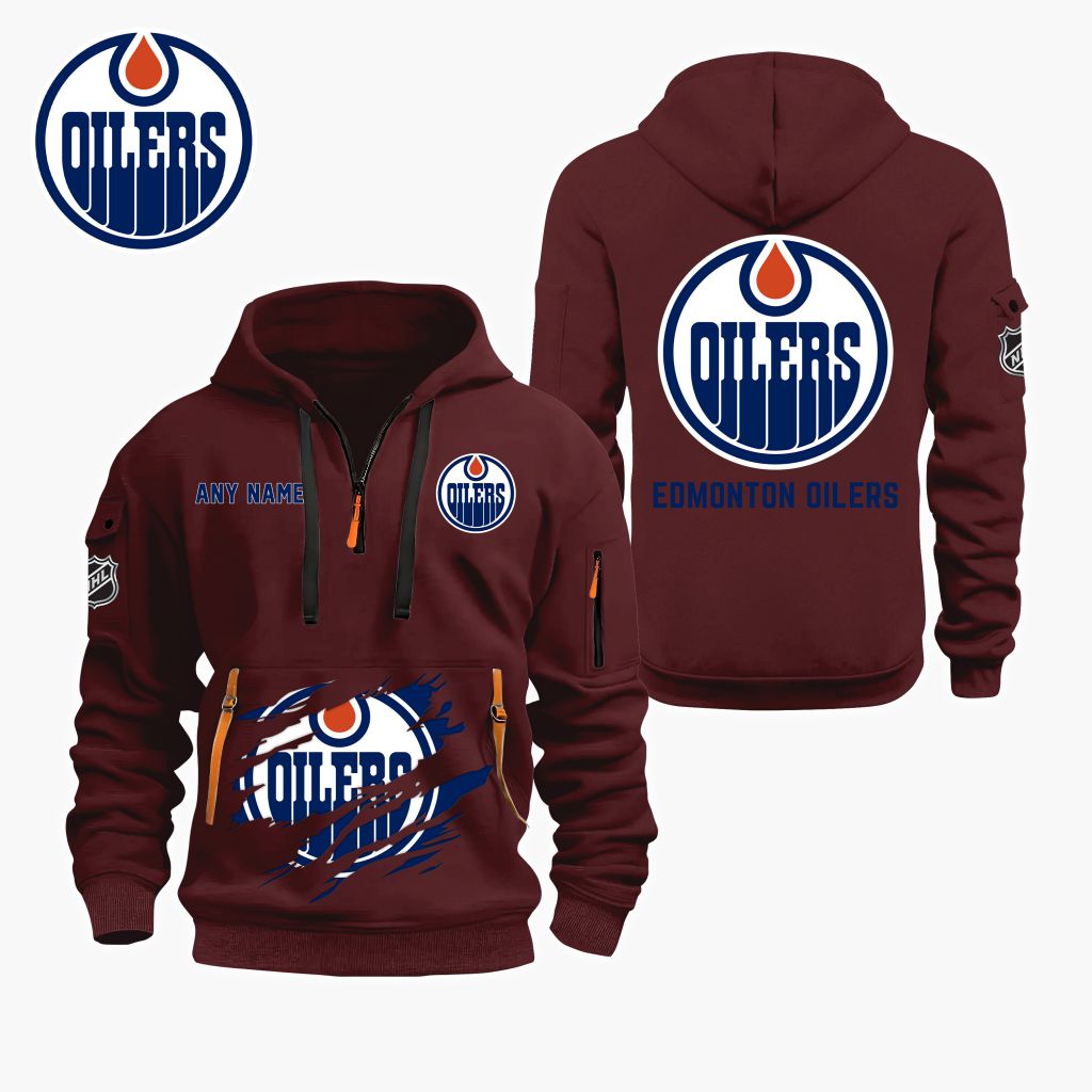 NHL Edmonton Oilers Personalized Name Quarter Zip Hoodie ST2501