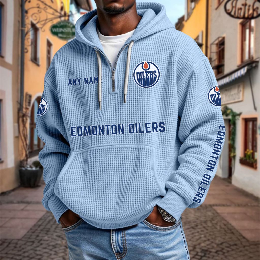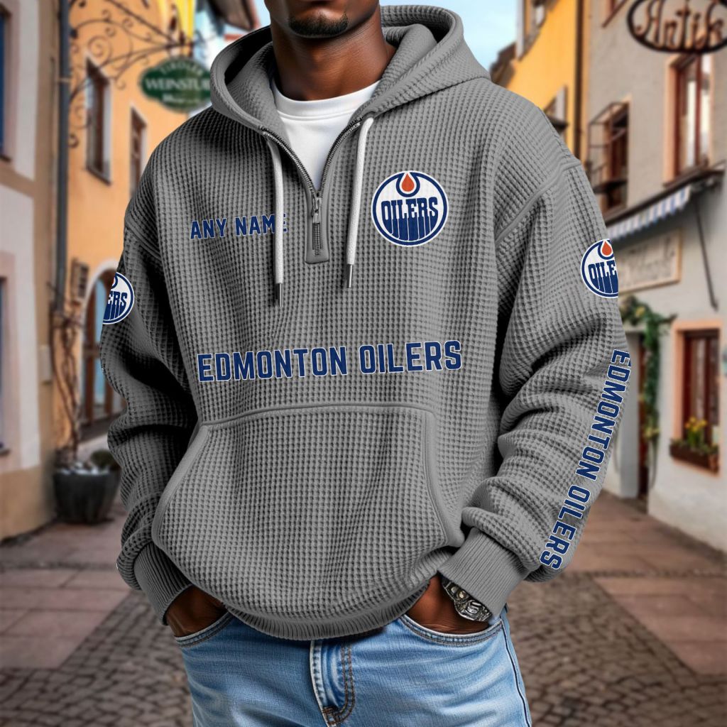 NHL Edmonton Oilers Personalized Name Waffle Quarter Zip Hoodie Design ST2501