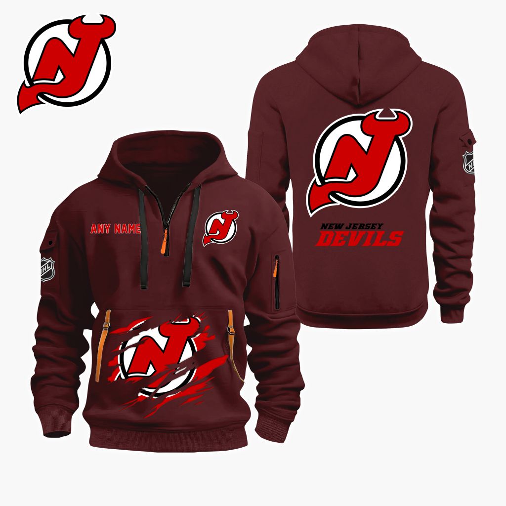 NHL New Jersey Devils Personalized Name Quarter Zip Hoodie ST2501