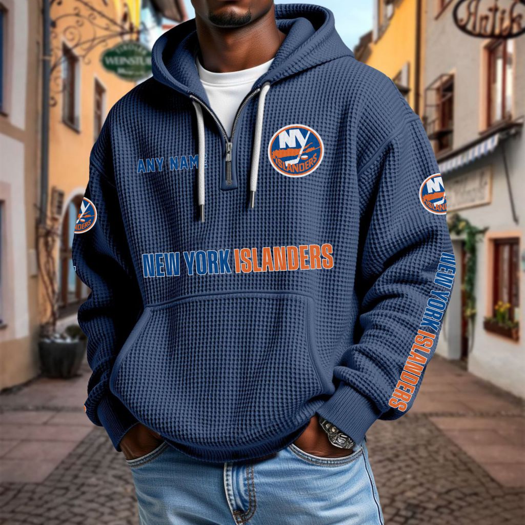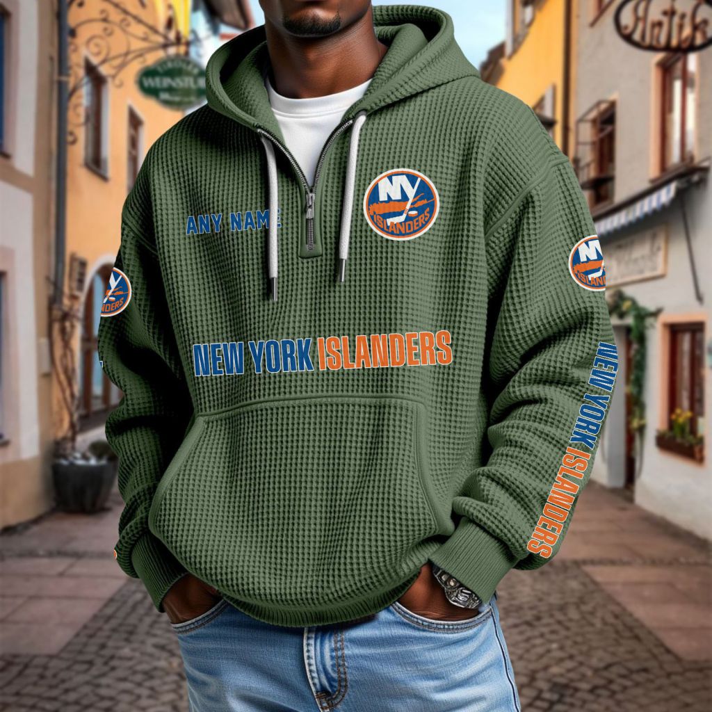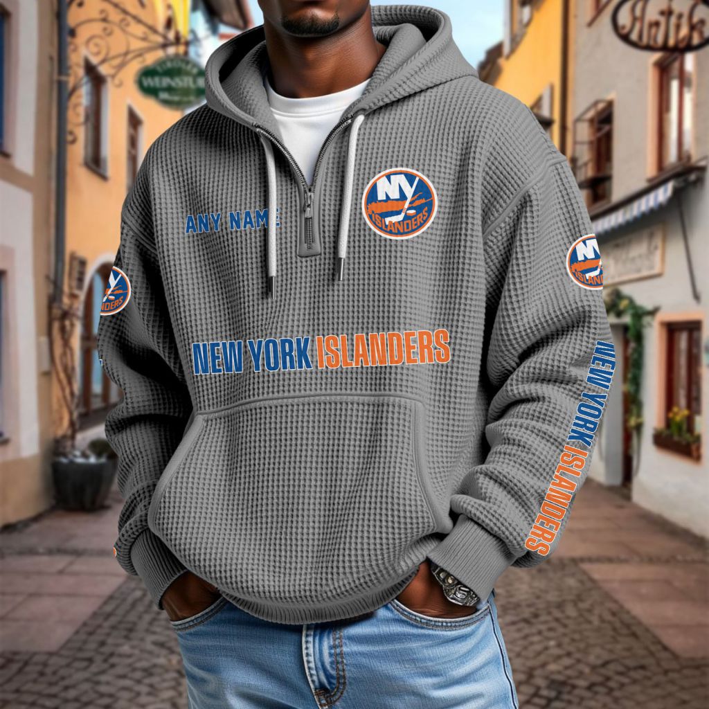 NHL New York Islanders Personalized Name Waffle Quarter Zip Hoodie Design ST2501