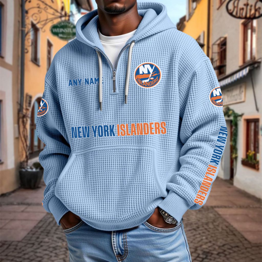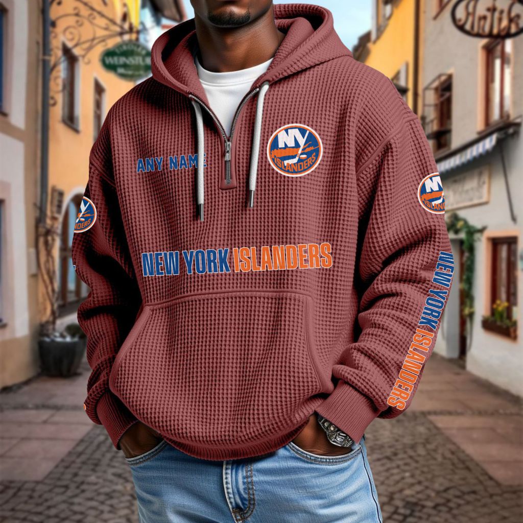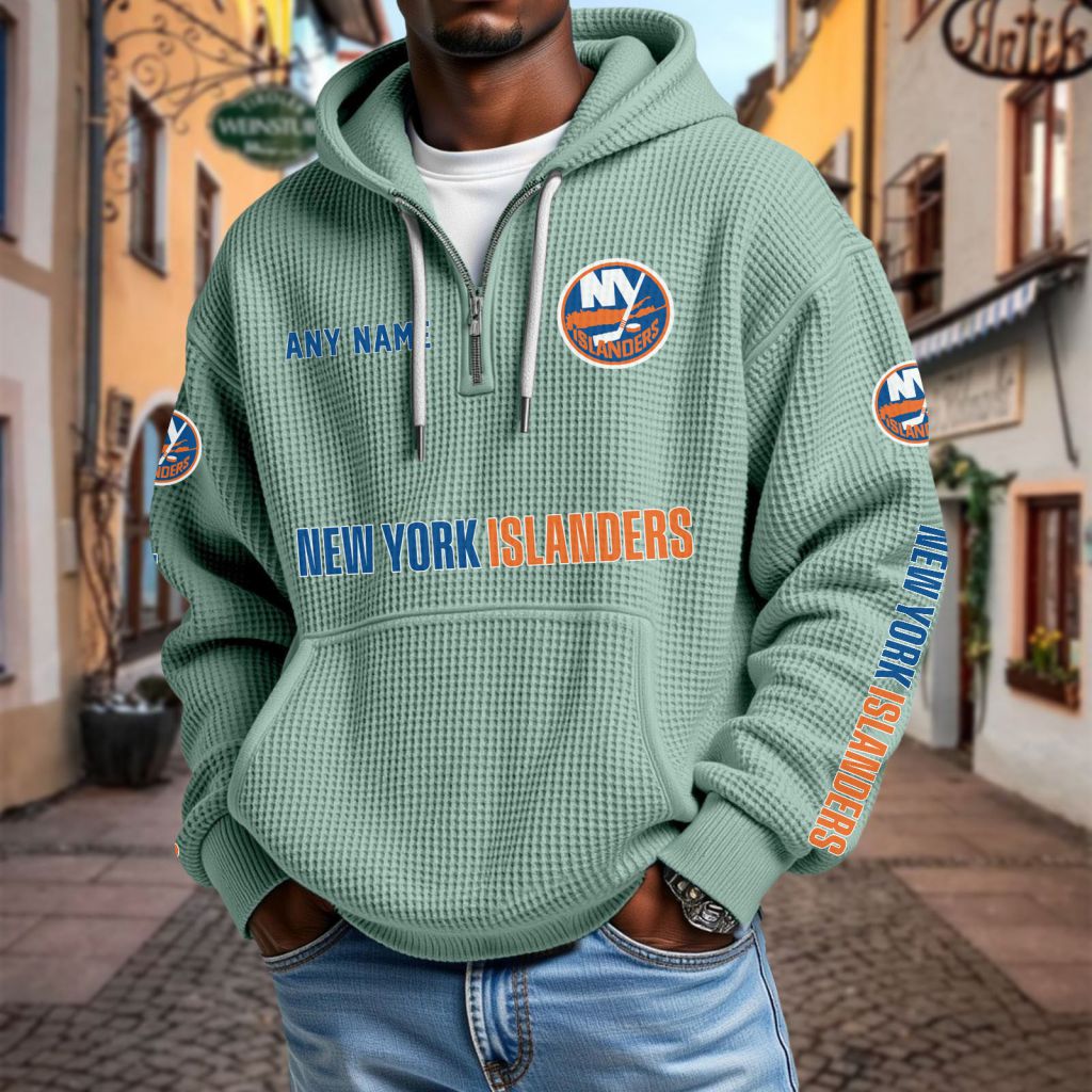 NHL New York Islanders Personalized Name Waffle Quarter Zip Hoodie Design ST2501