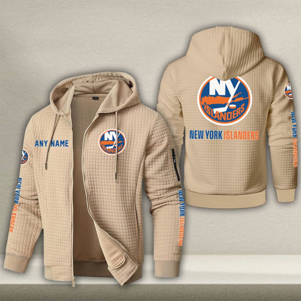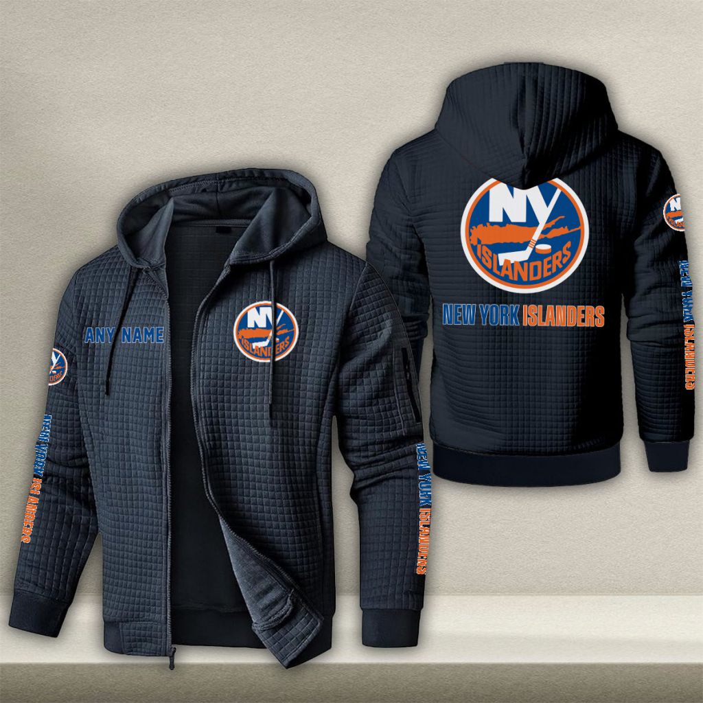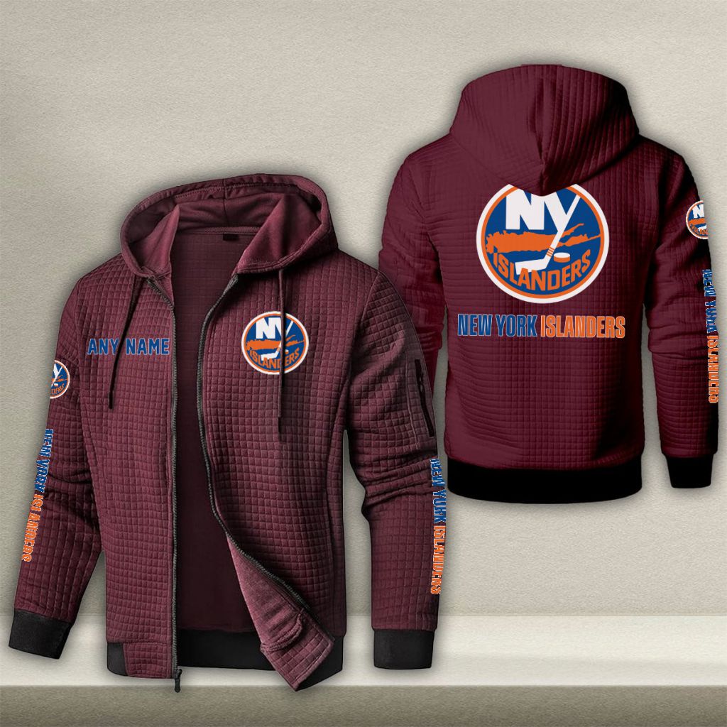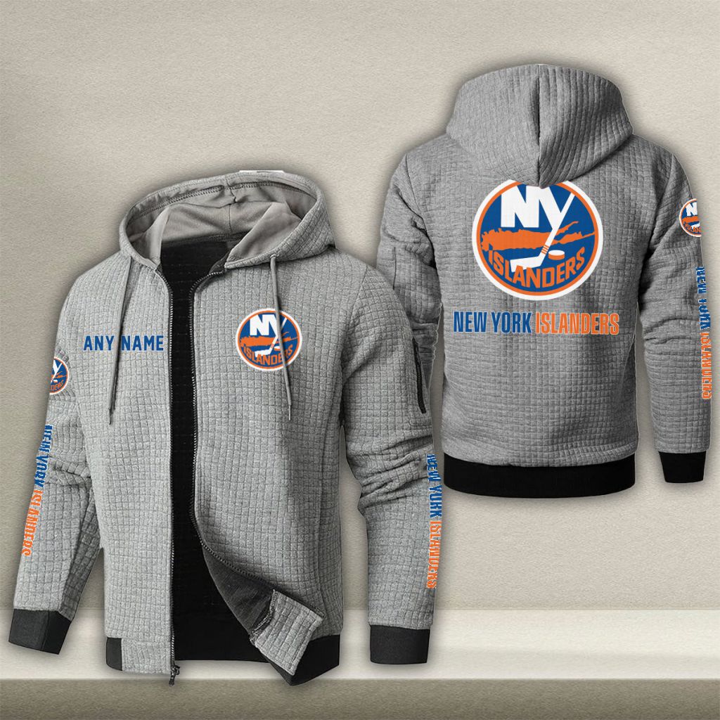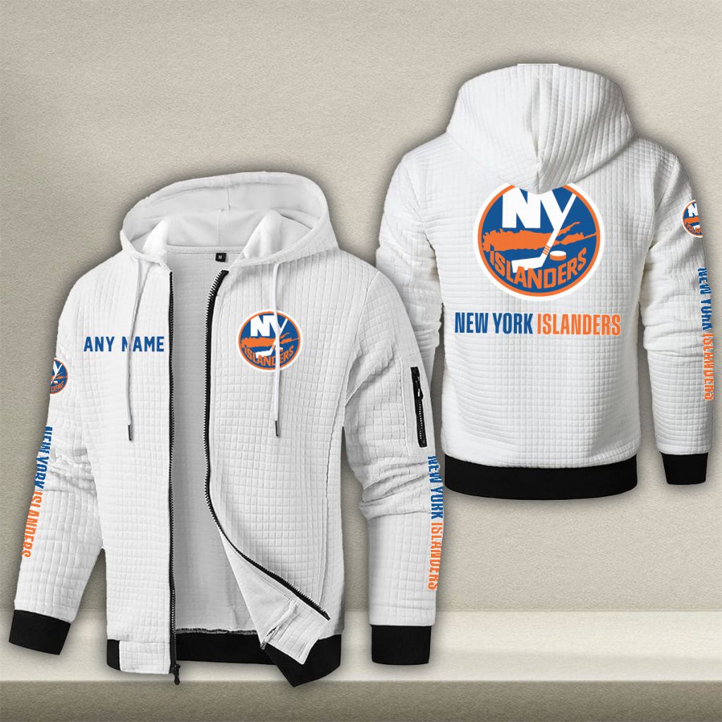NHL New York Islanders Personalized Name Waffle Zip Hoodie Design ST2502