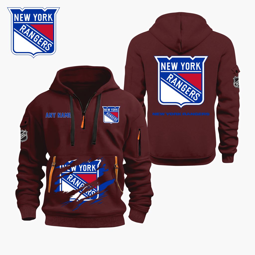 NHL New York Rangers Personalized Name Quarter Zip Hoodie ST2501
