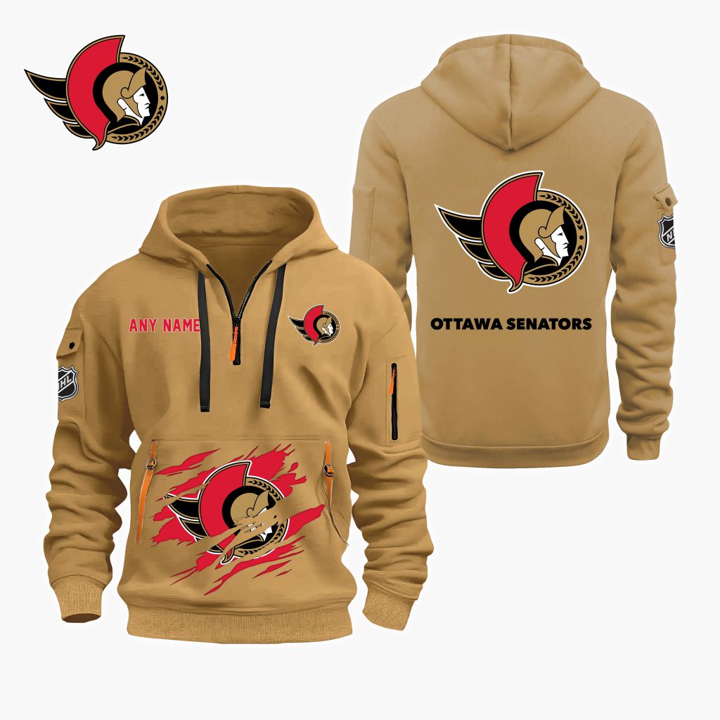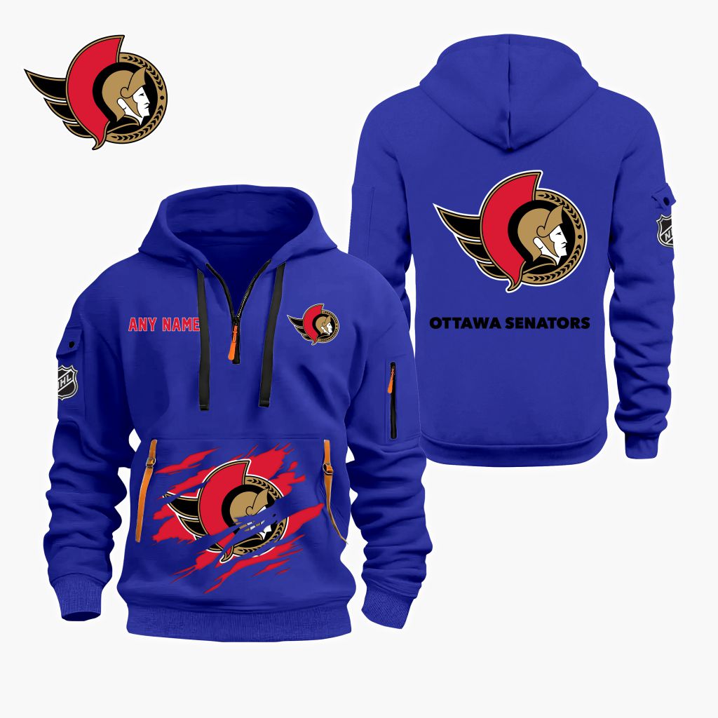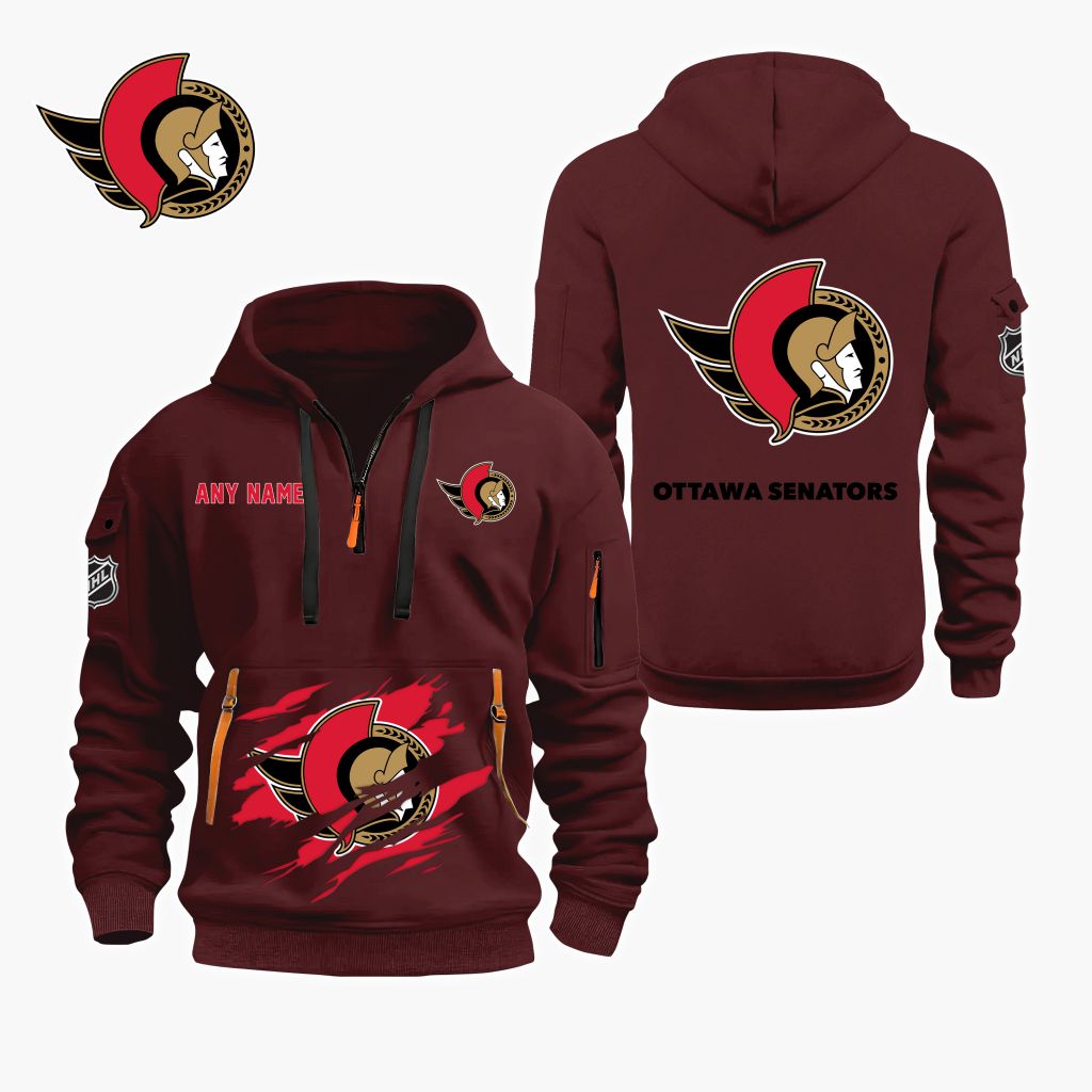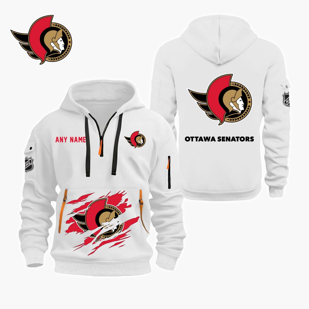 NHL Ottawa Senators Personalized Name Quarter Zip Hoodie ST2501