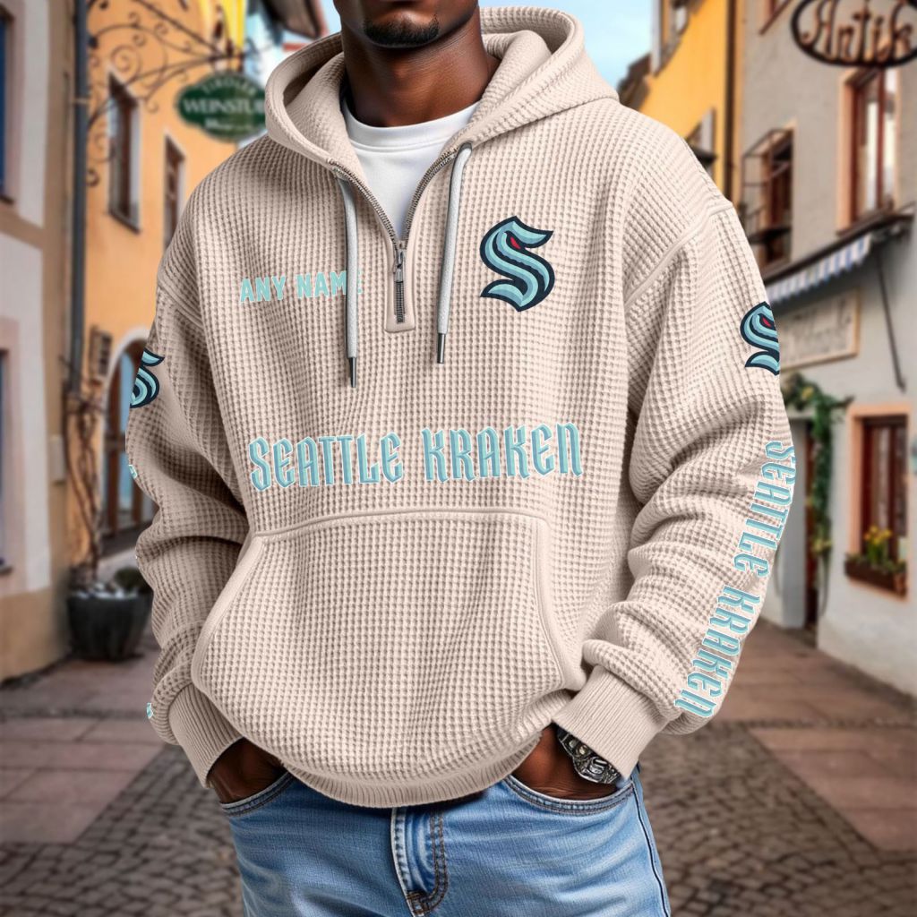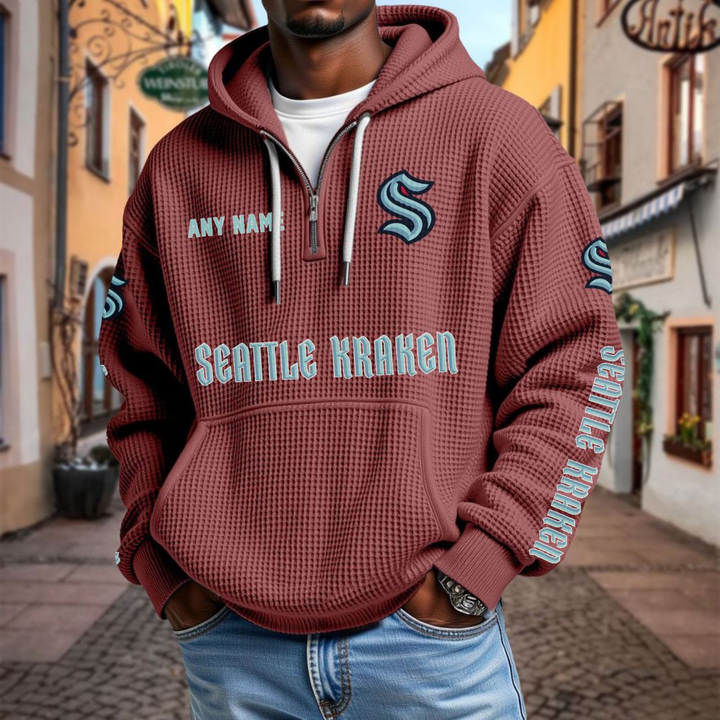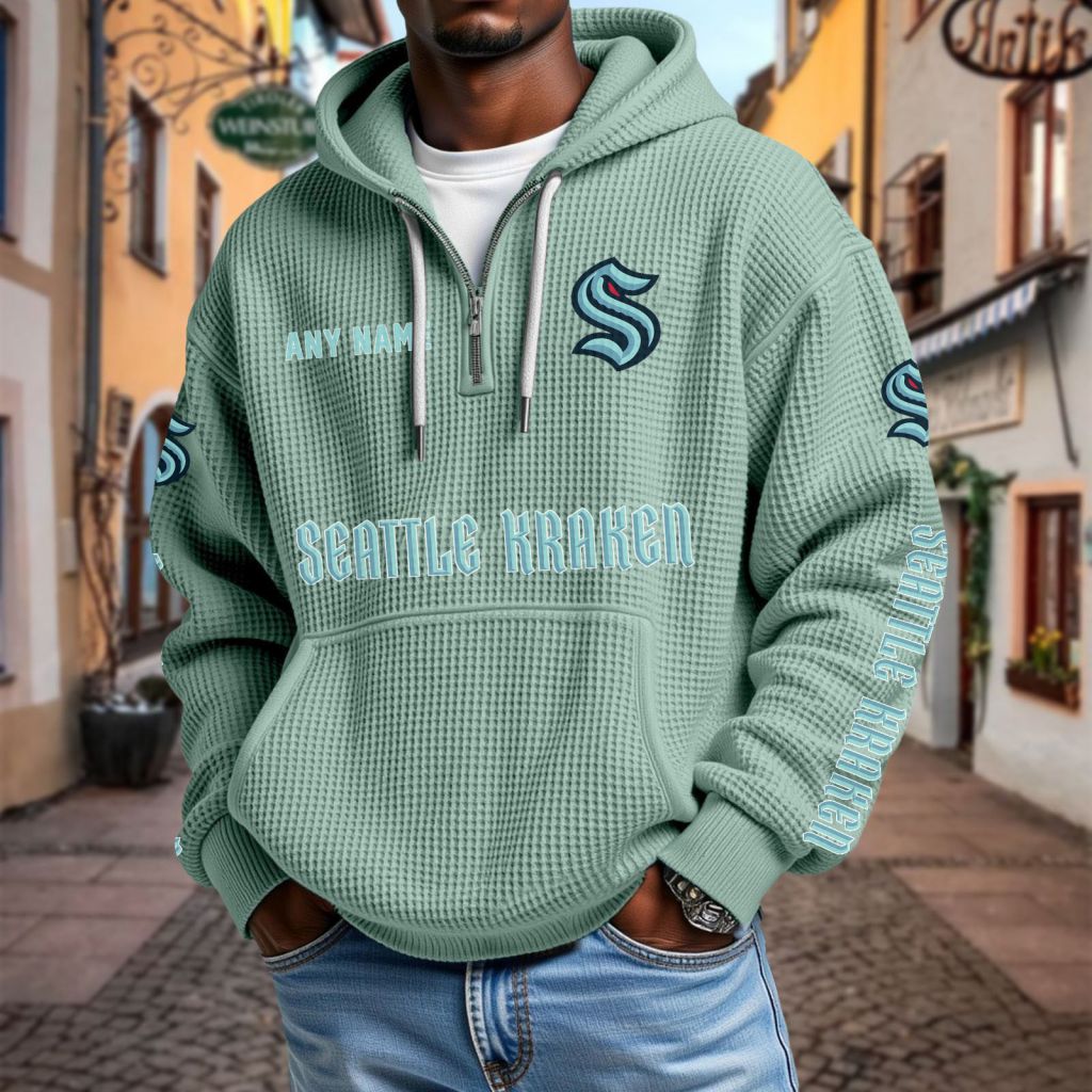 NHL Seattle Kraken Personalized Name Waffle Quarter Zip Hoodie Design ST2501
