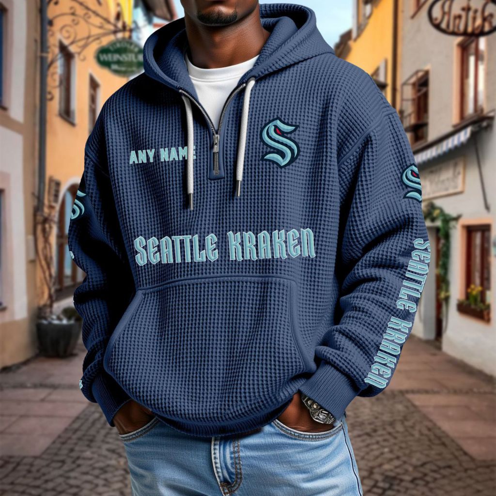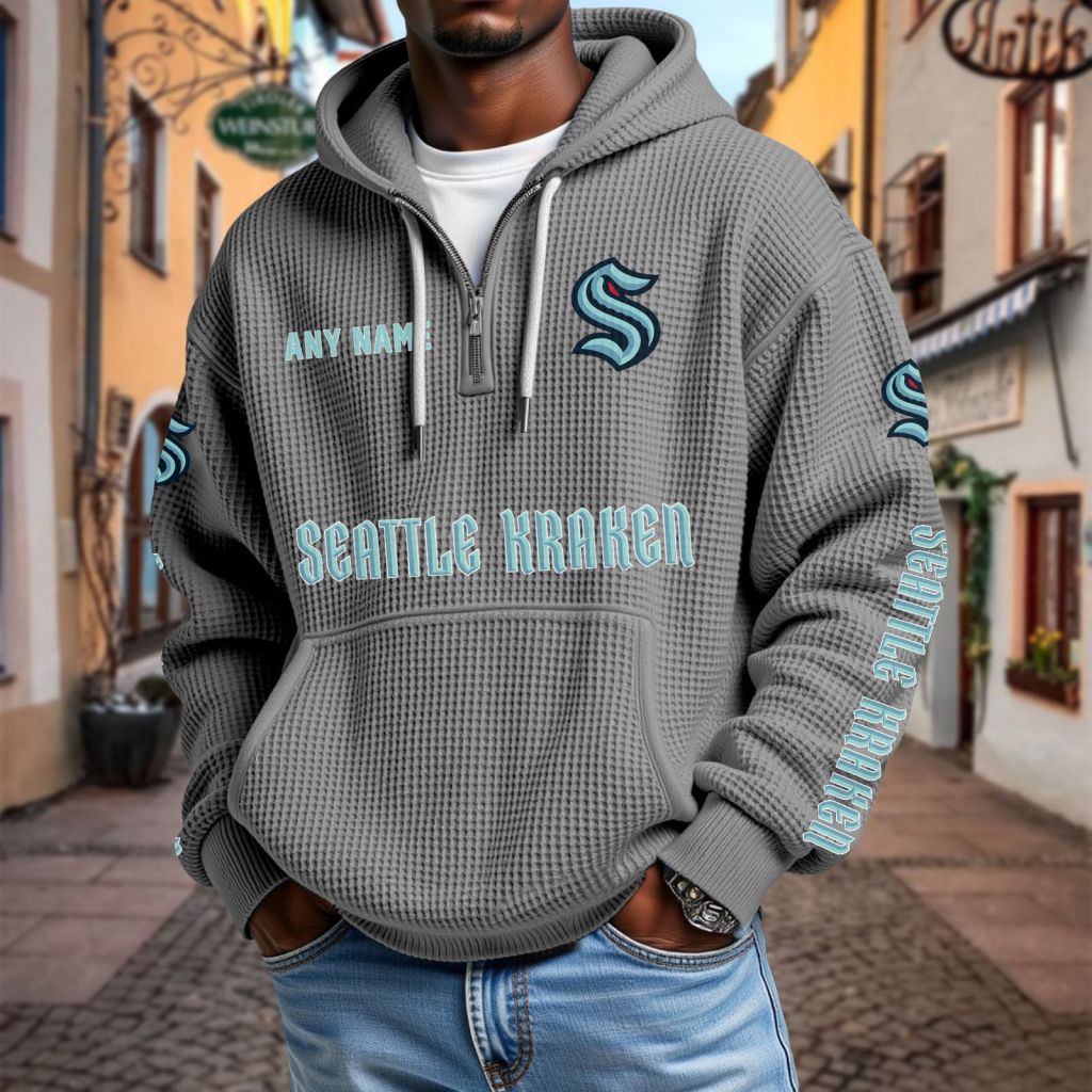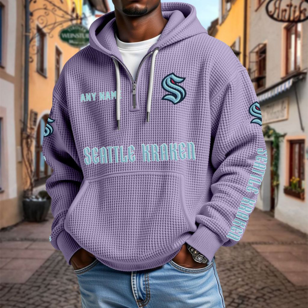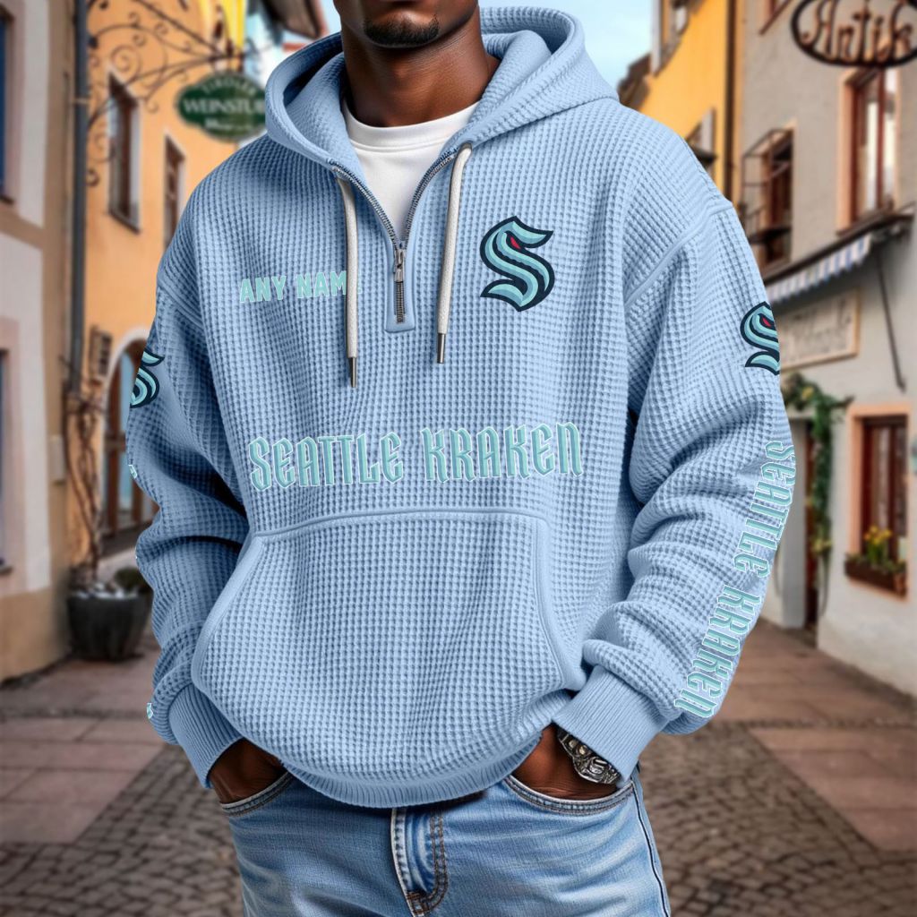 NHL Seattle Kraken Personalized Name Waffle Quarter Zip Hoodie Design ST2501