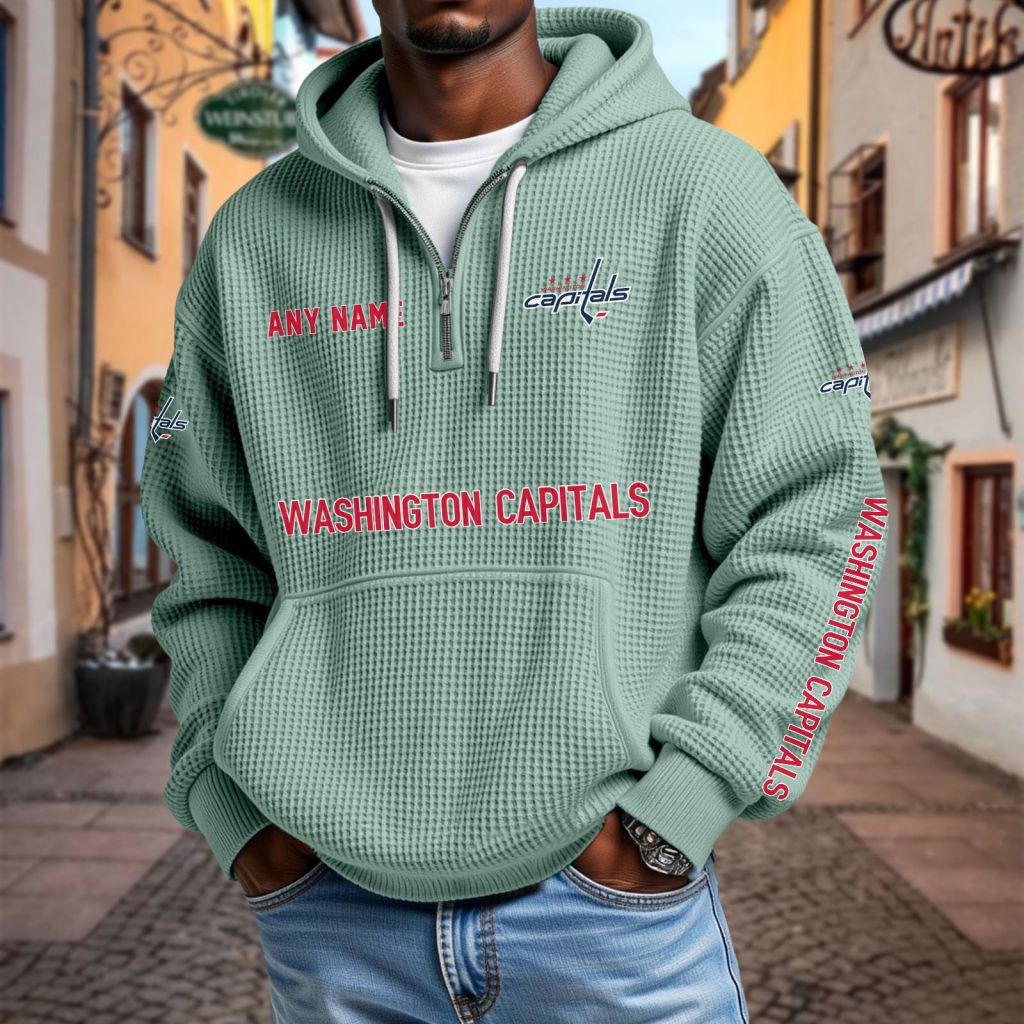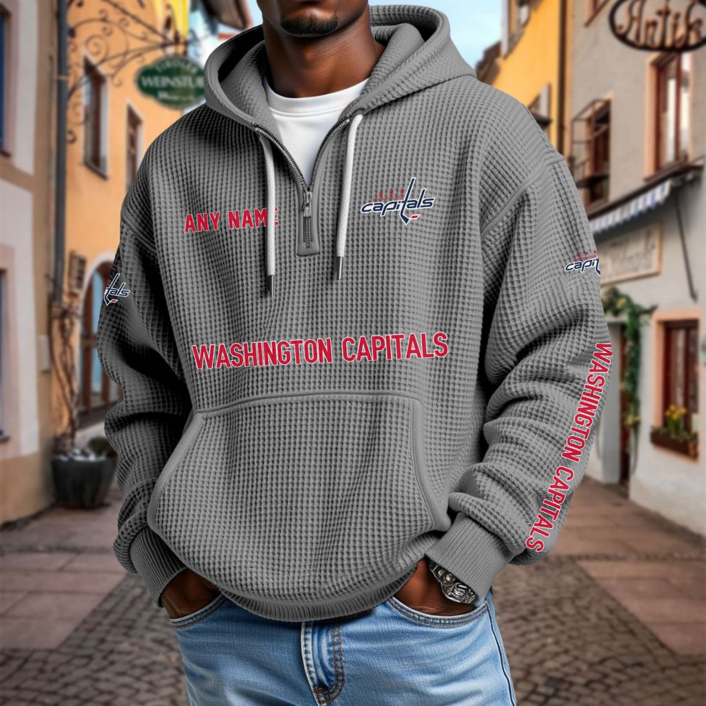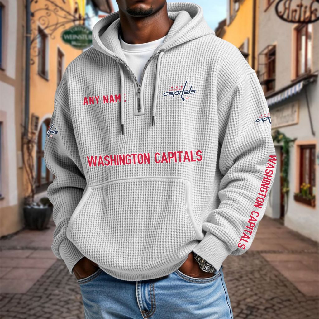 NHL Washington Capitals Personalized Name Waffle Quarter Zip Hoodie Design ST2501