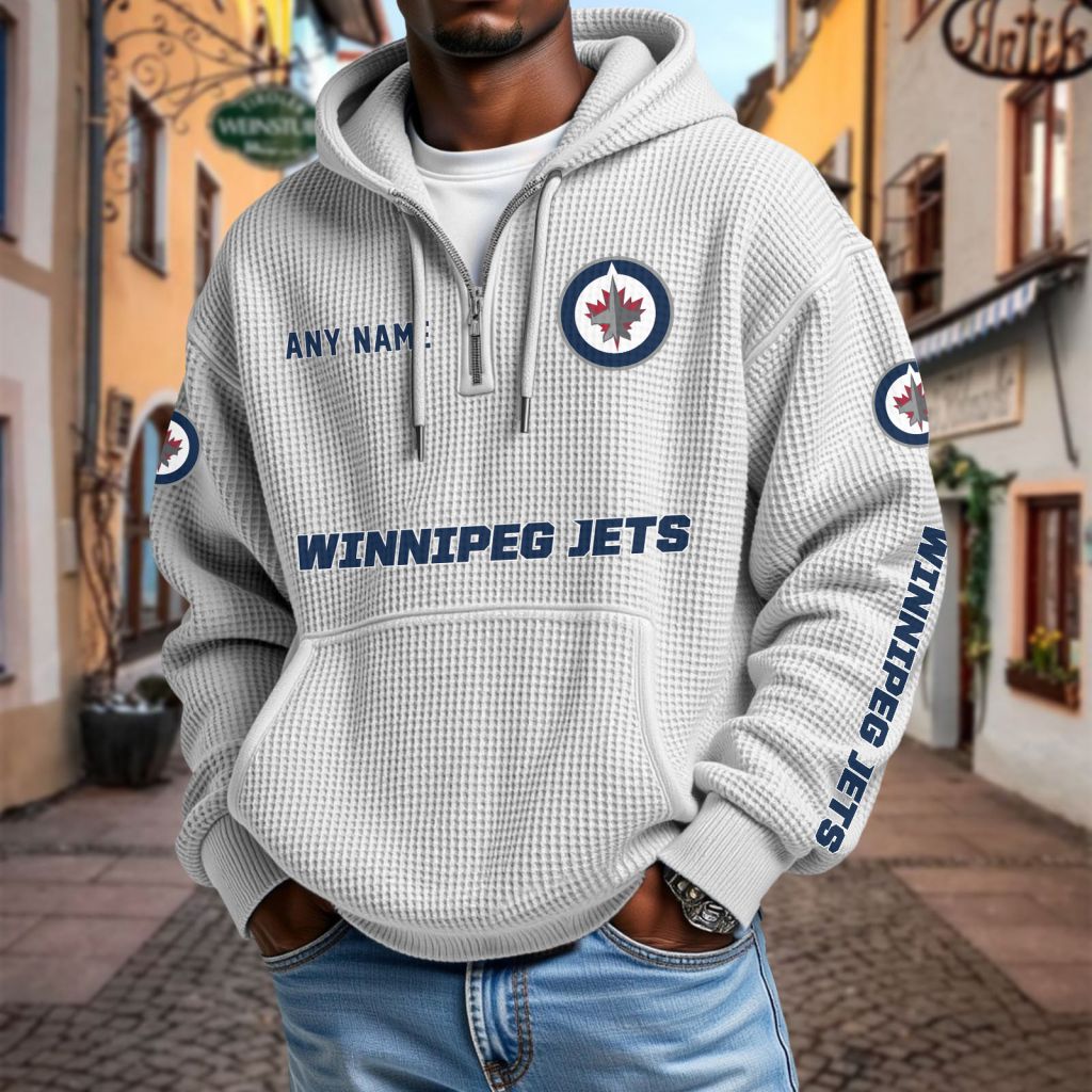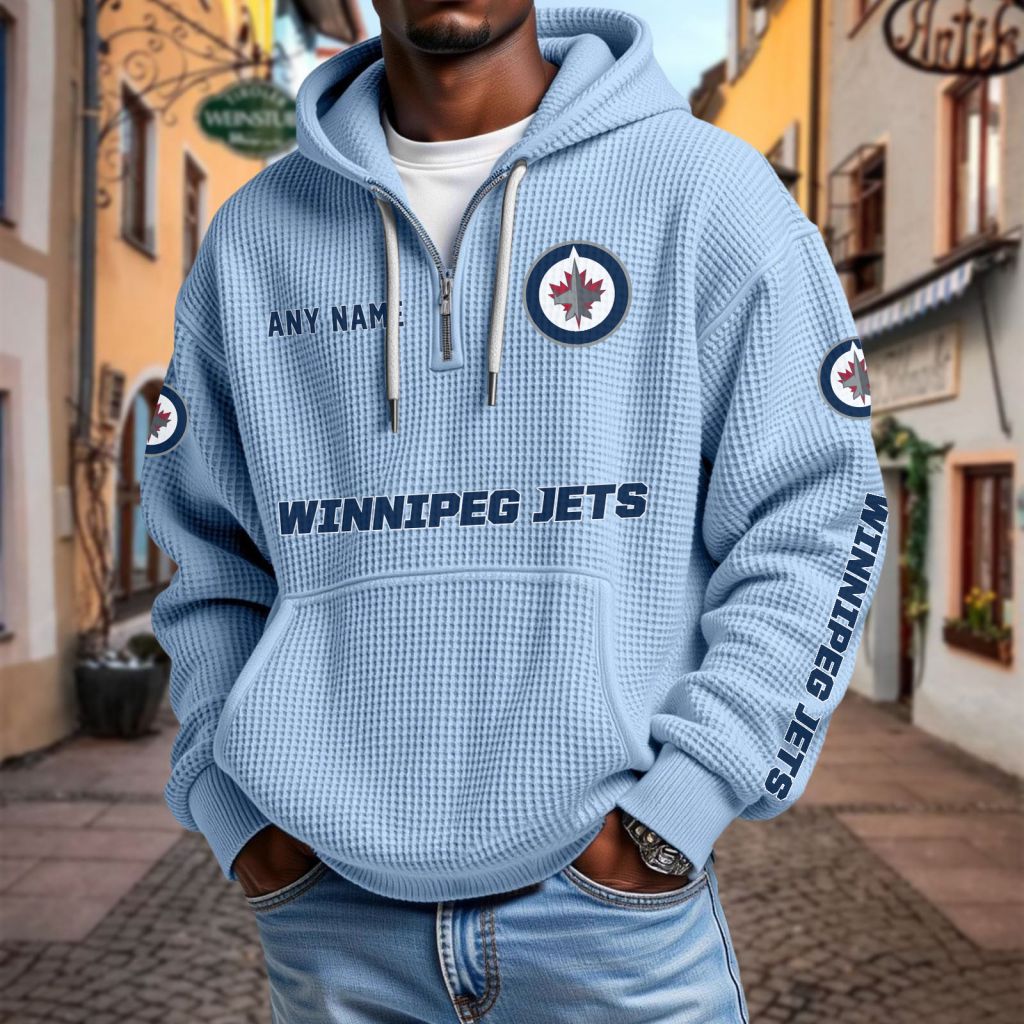 NHL Winnipeg Jets Personalized Name Waffle Quarter Zip Hoodie Design ST2501