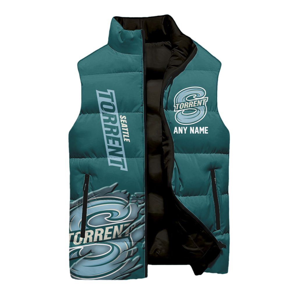 P.W.H.L Seattle Torrent Personalized Name Sleeveless Puffer Jacket Design ST2501